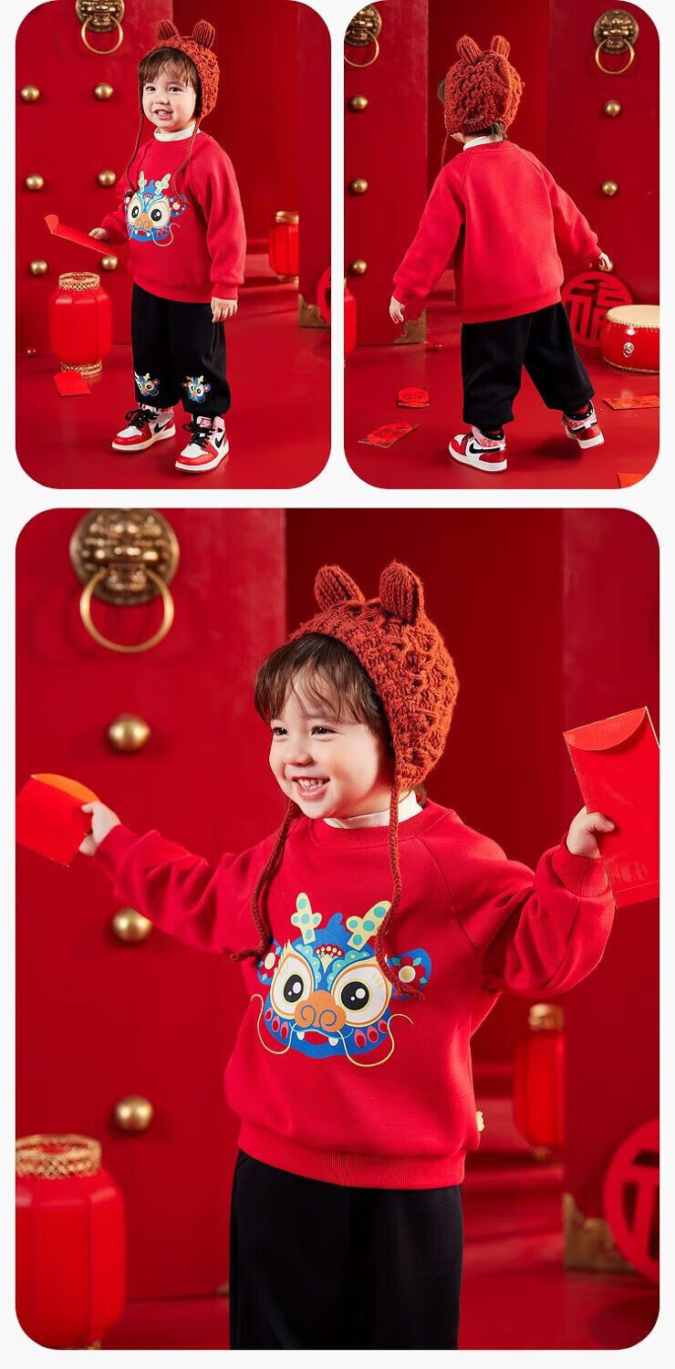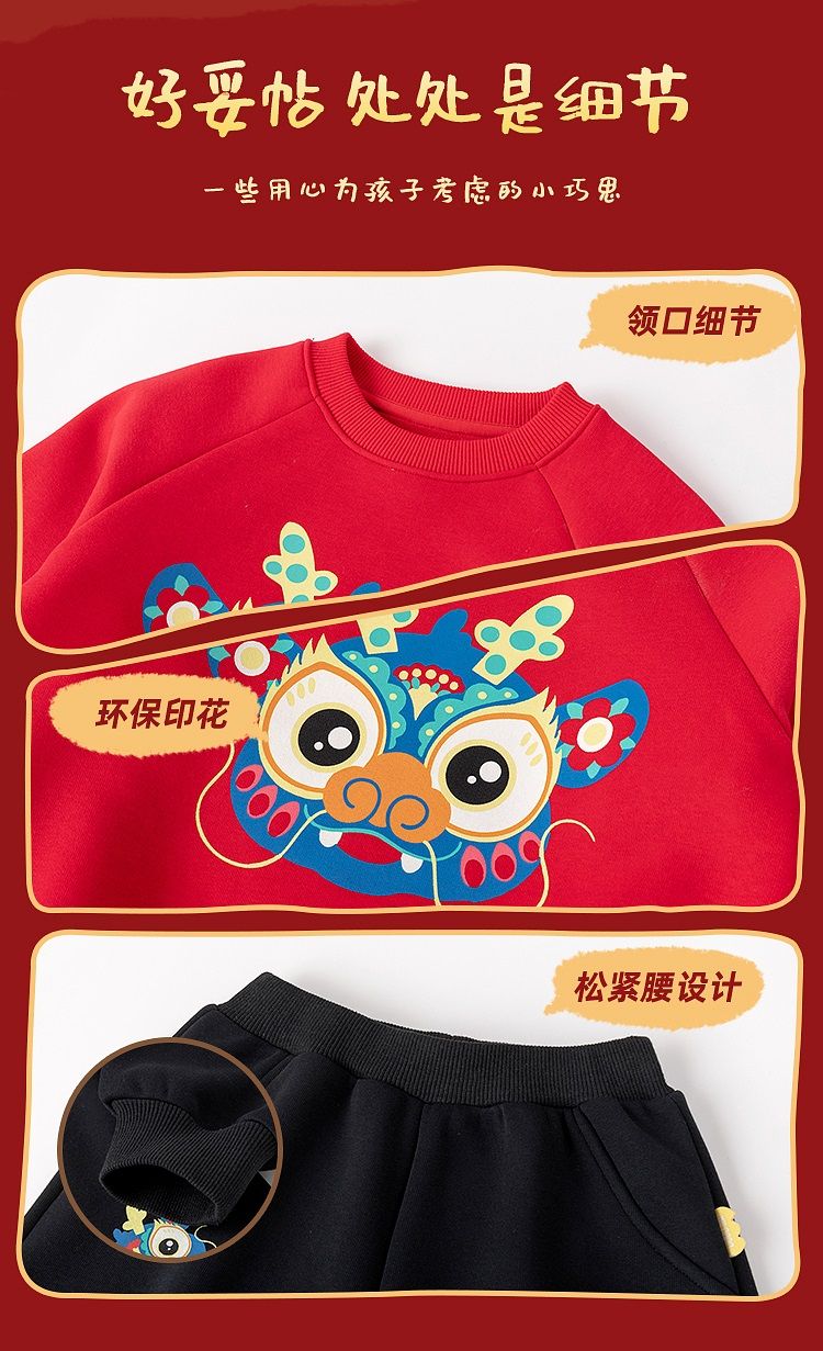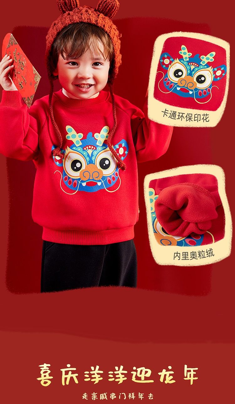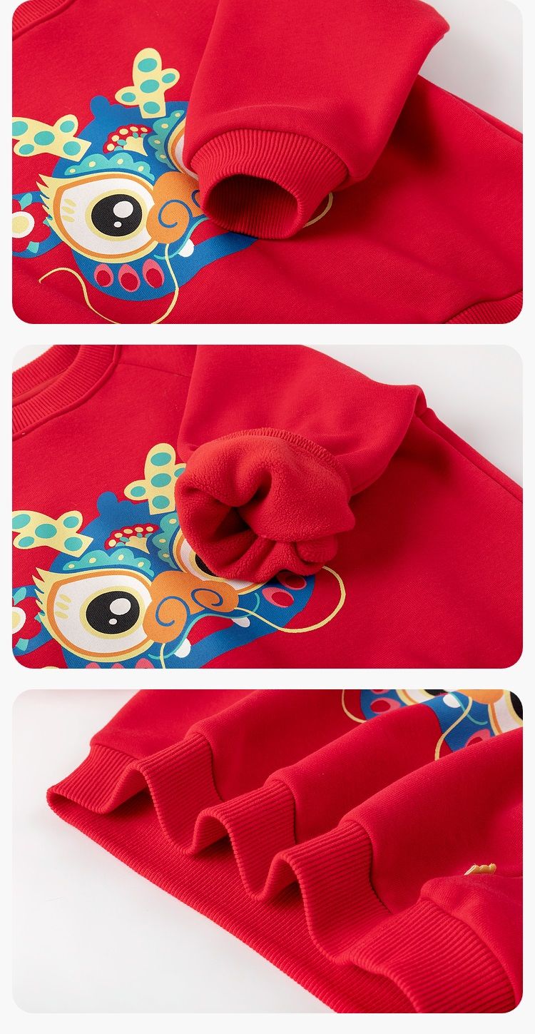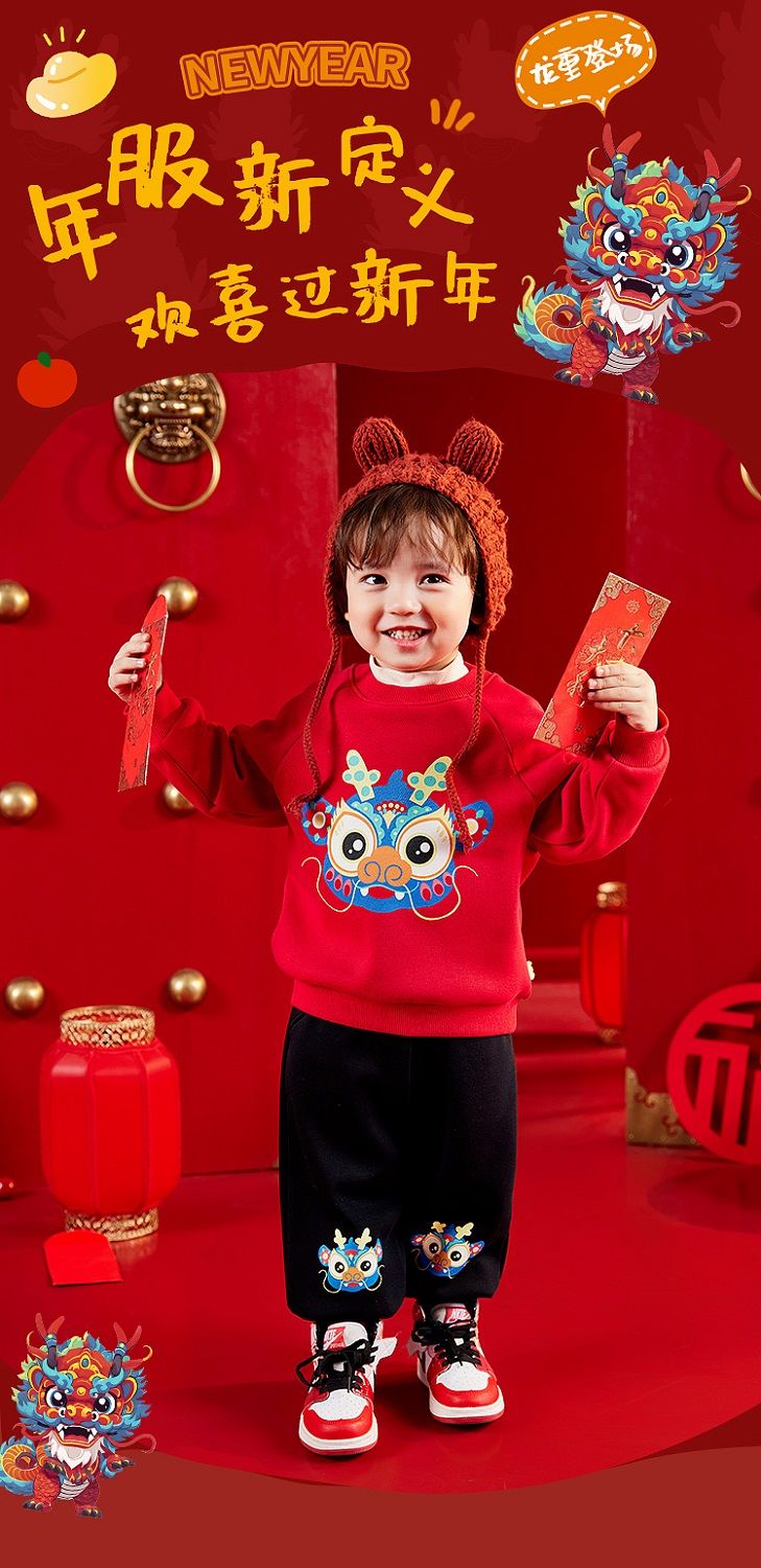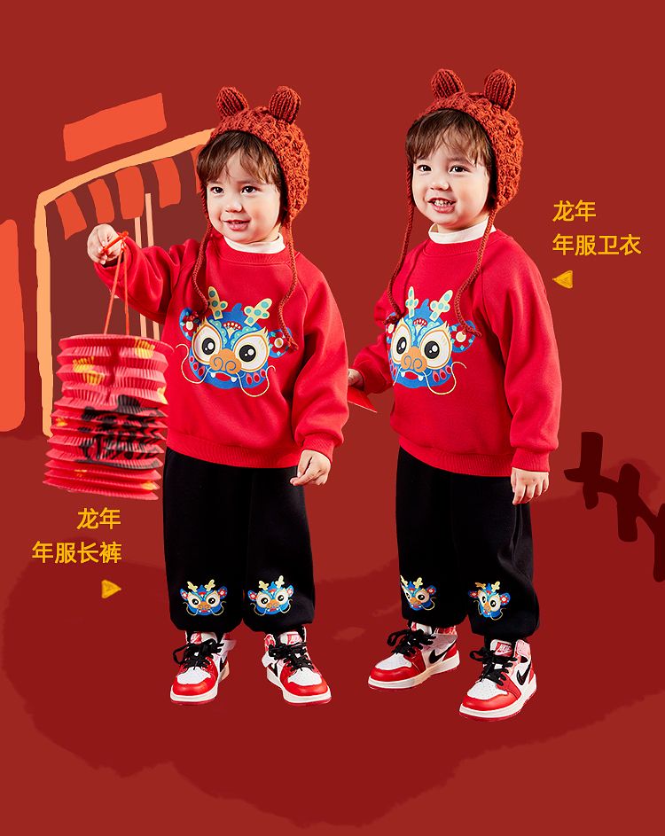 嘟嘟家【国风新年】儿童拜年服套装冬季男童唐装宝宝卫衣 米白+红色 100