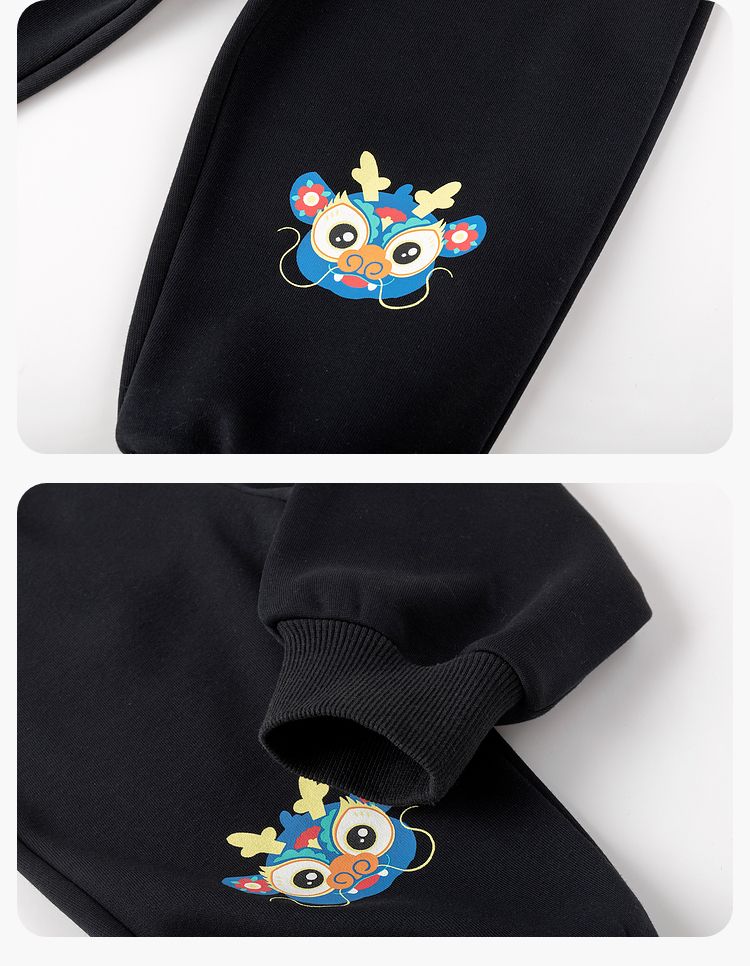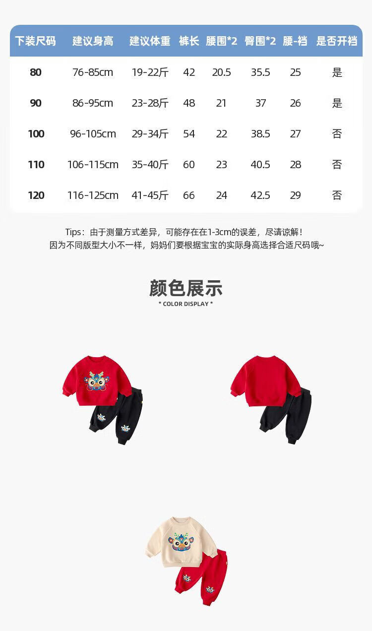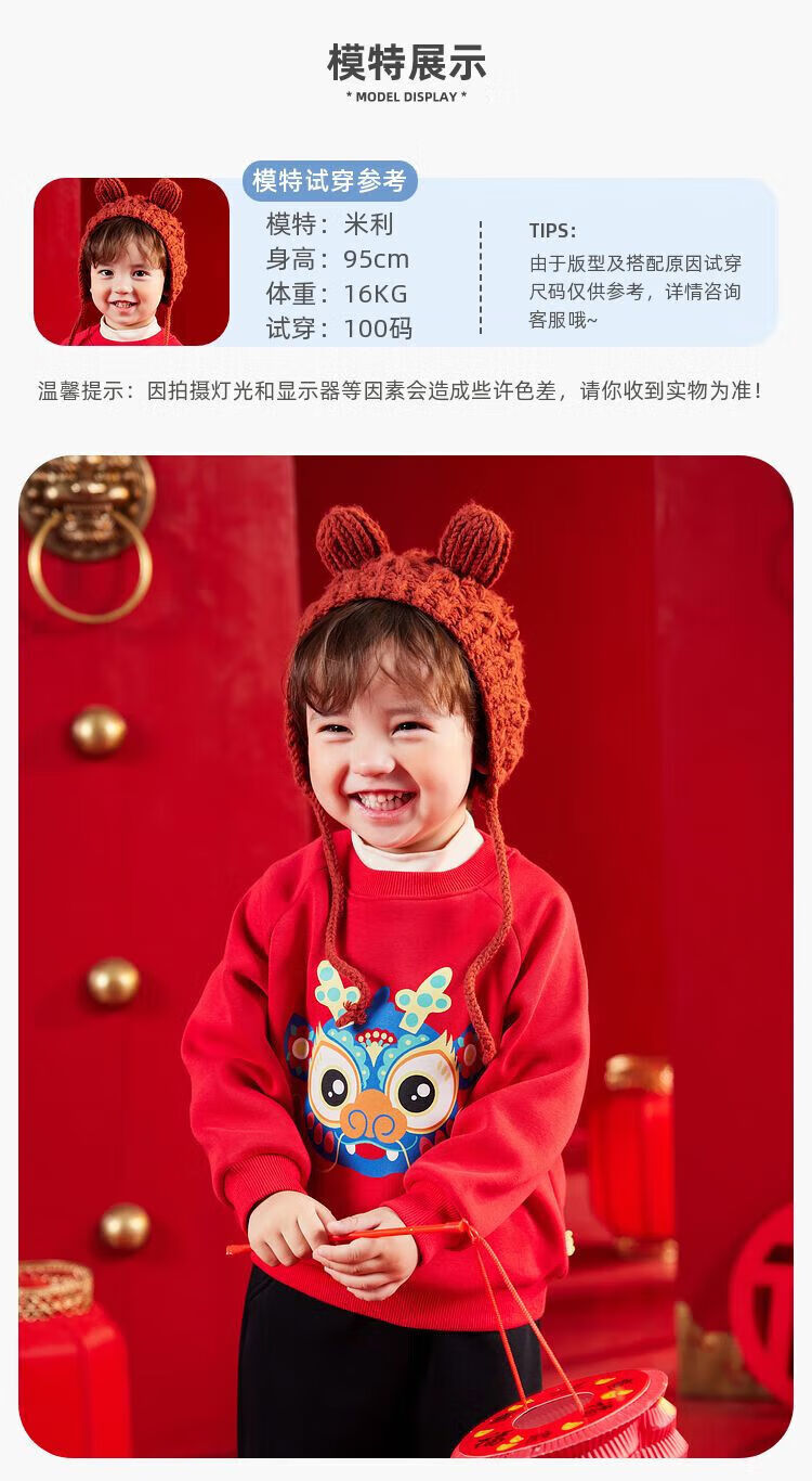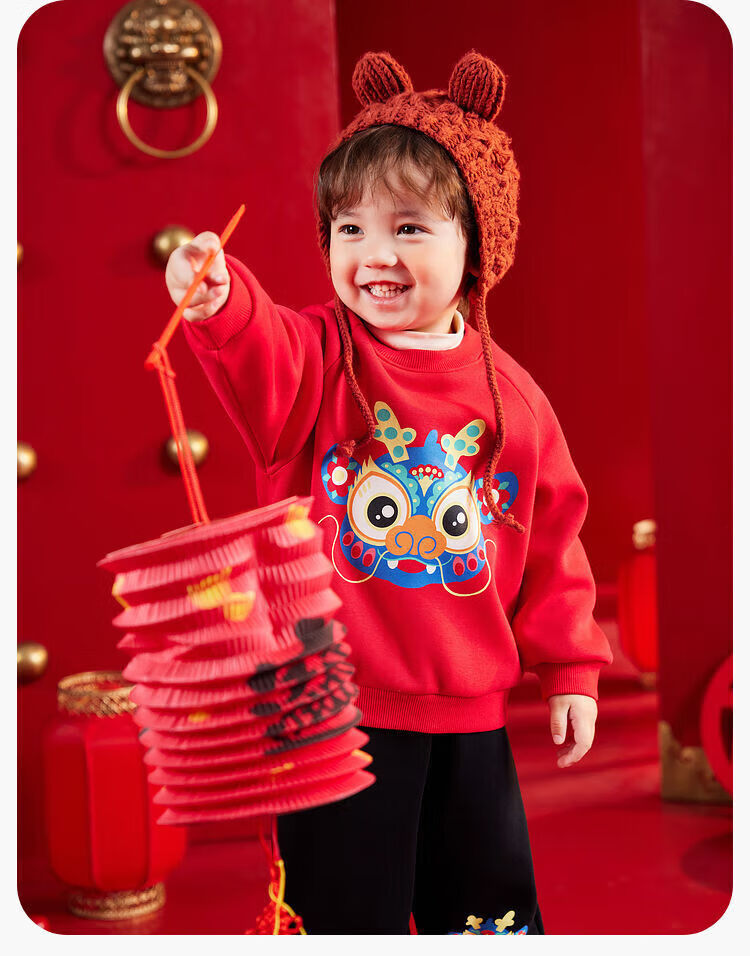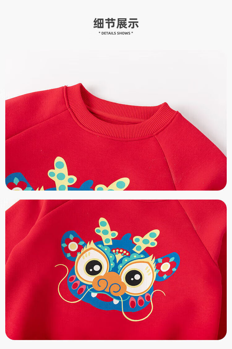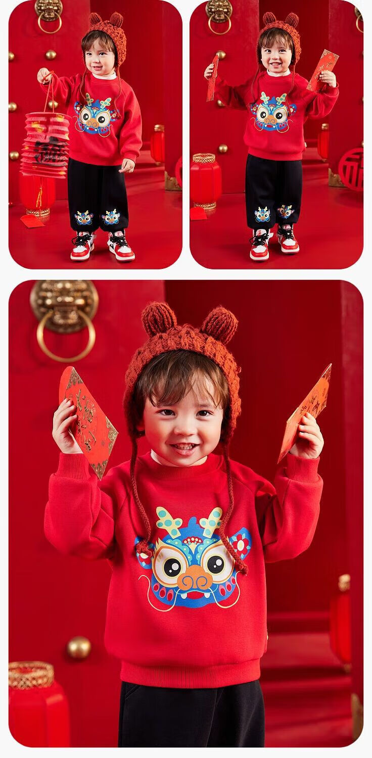 嘟嘟家【国风新年】儿童拜年服套装冬季男童唐装宝宝卫衣 米白+红色 100