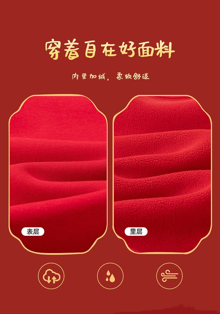 莱梦德(LAIMENGDE)2026新年马年秋冬亲子装加绒过年红卫衣全家福婴儿宝宝爬服拍照 酒红色 冬季加绒 180 成人2XL