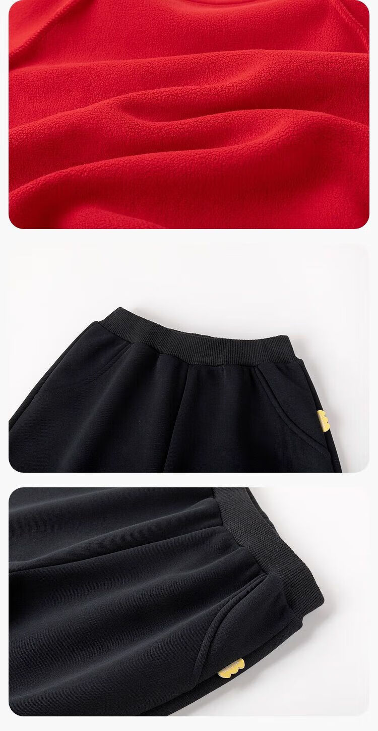迪士尼儿童羽绒服秋冬加绒加厚摇粒绒休闲外套男女童棉服三件套 黑色 (三件套) 170 (100-120斤)