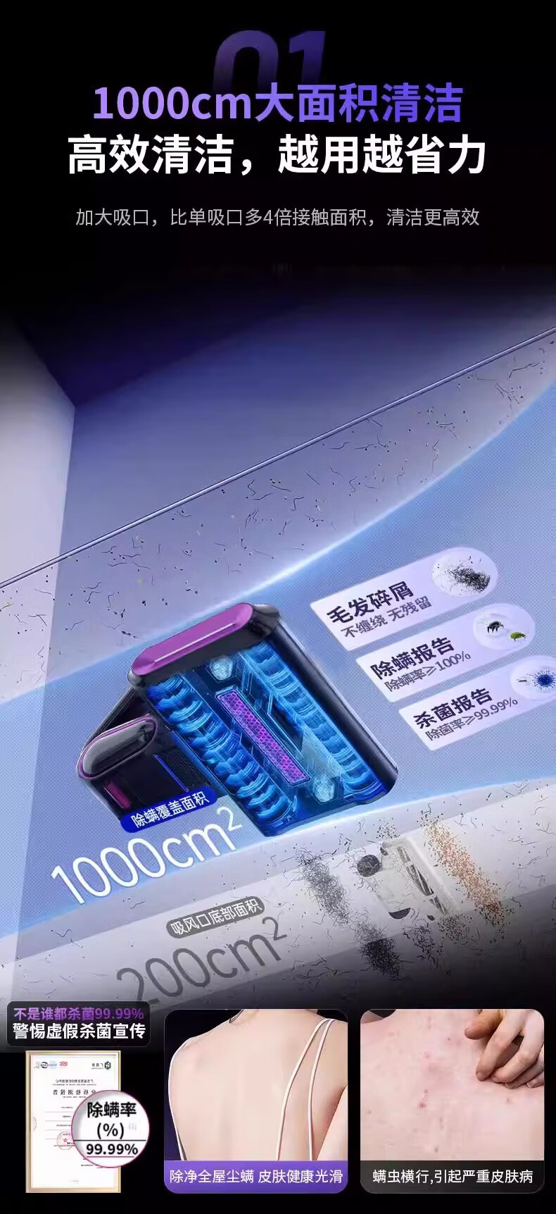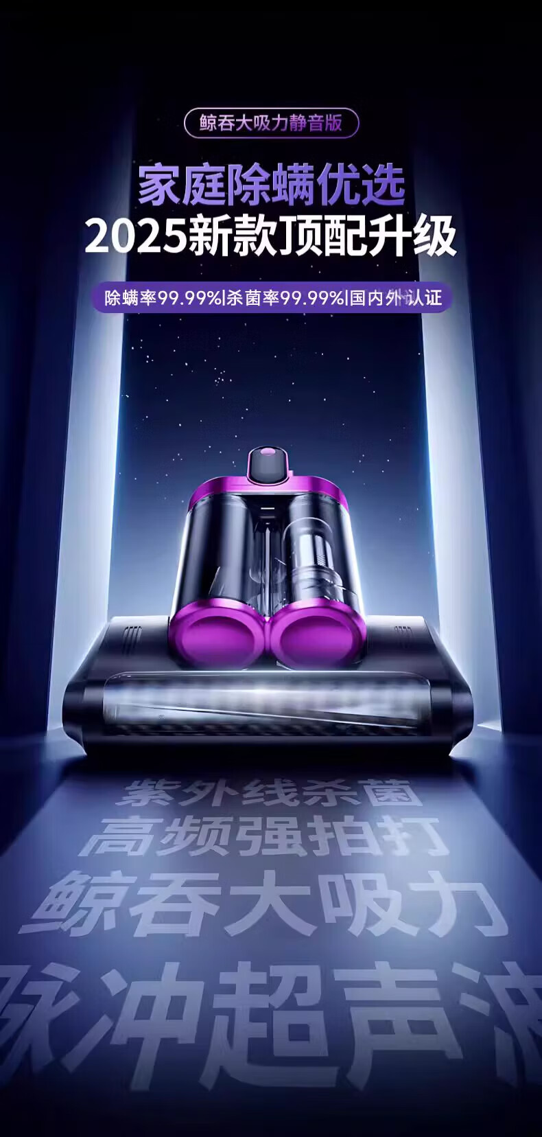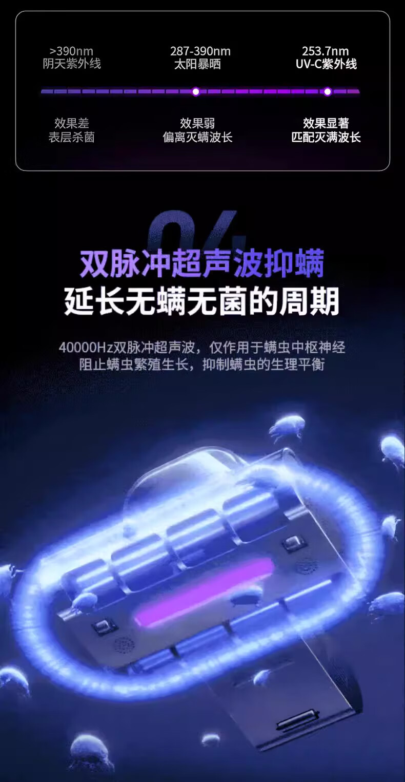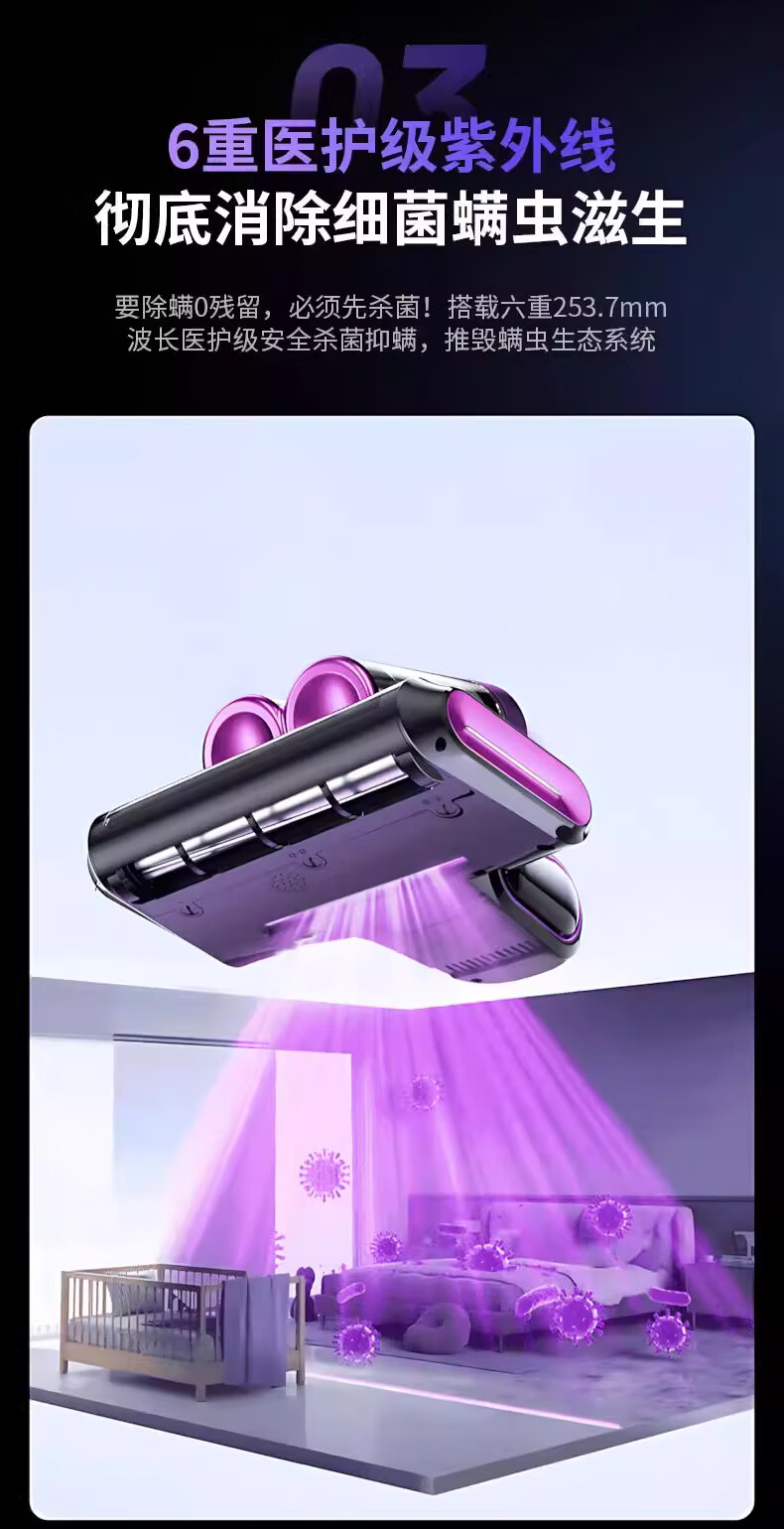 DIKTT德国除螨仪吸尘器三合一无线家用床上高温除螨杀菌紫外线吸尘器猫毛除螨虫神器大吸力紫外线机床用 【高贵紫】紫光杀菌 高效抑螨