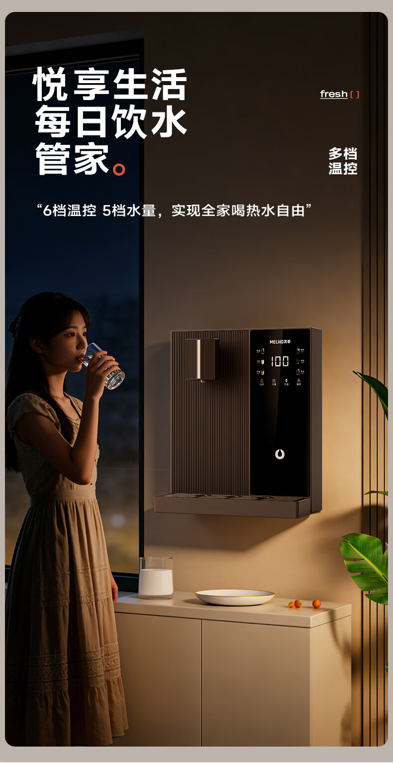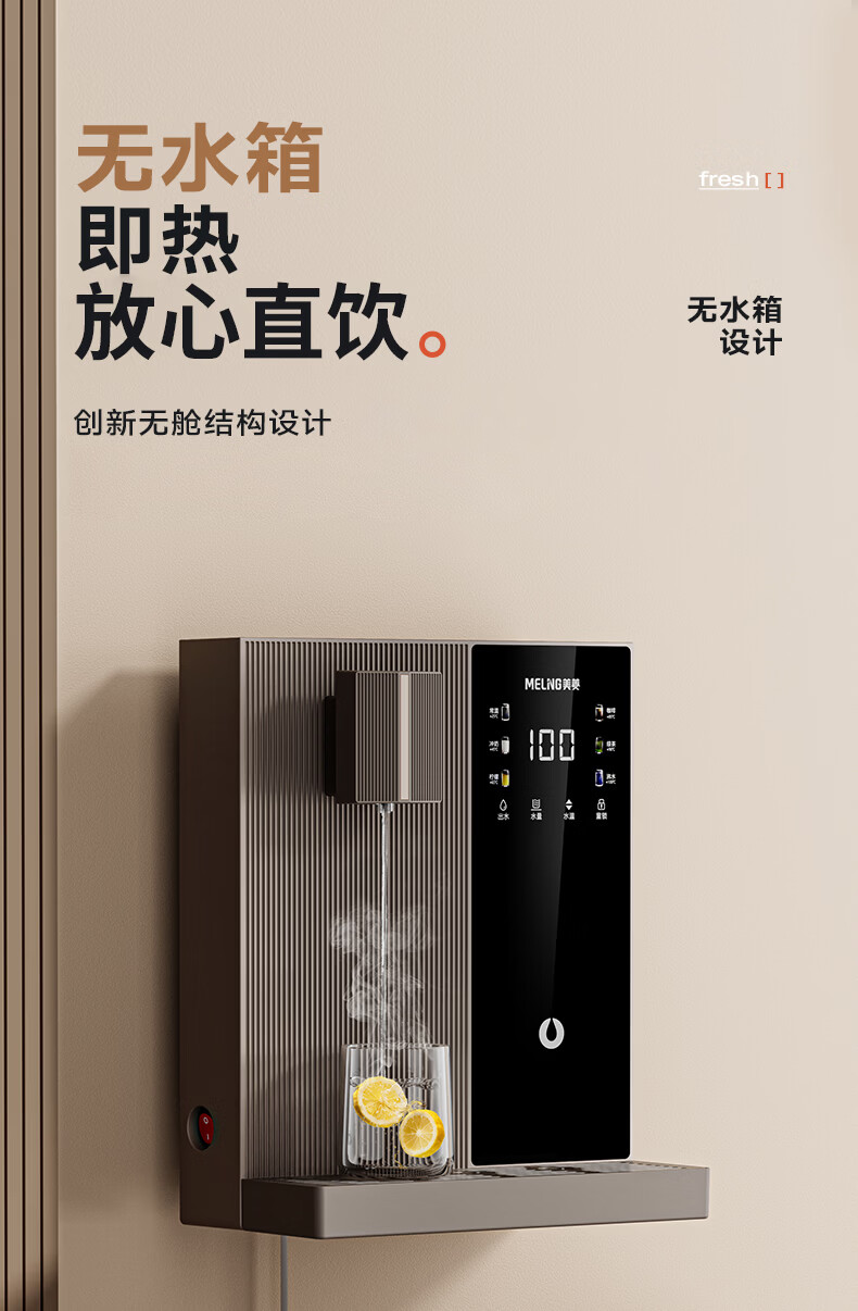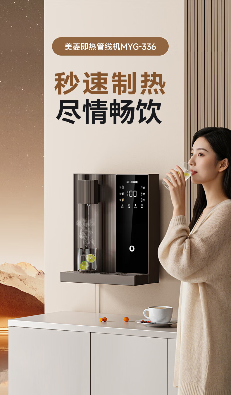 美菱(MeiLing)管线机可接桶装水壁挂式餐边柜加热直饮一体机大动力自吸即热式饮水机 黑咖色【自行安装·桶装水专用】全管路高温杀菌
