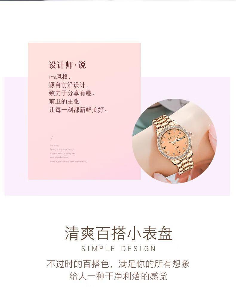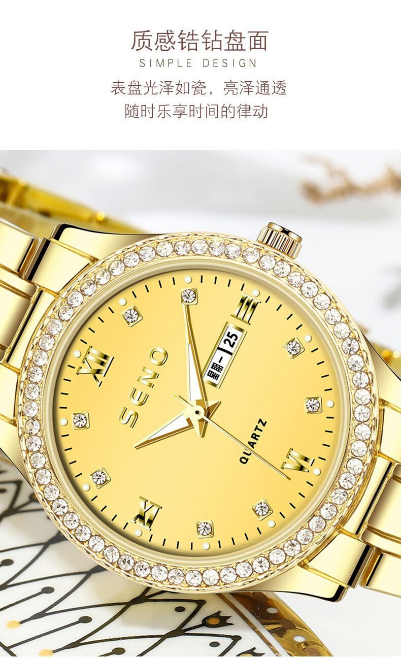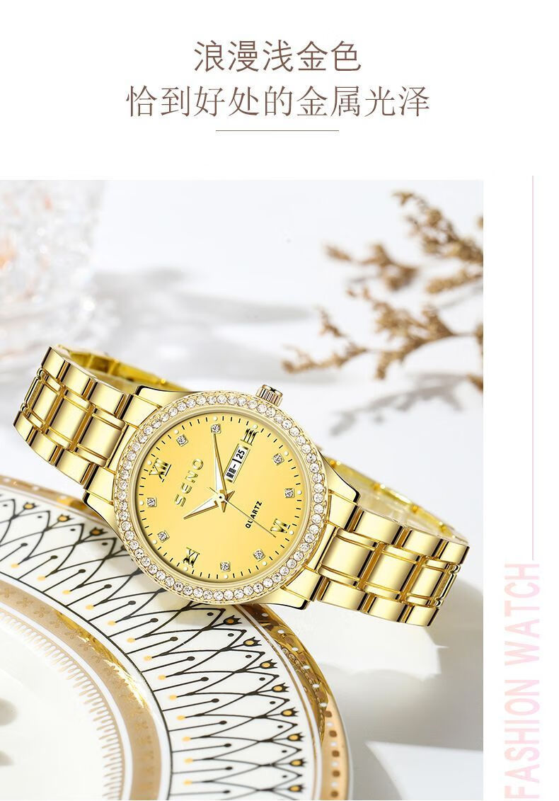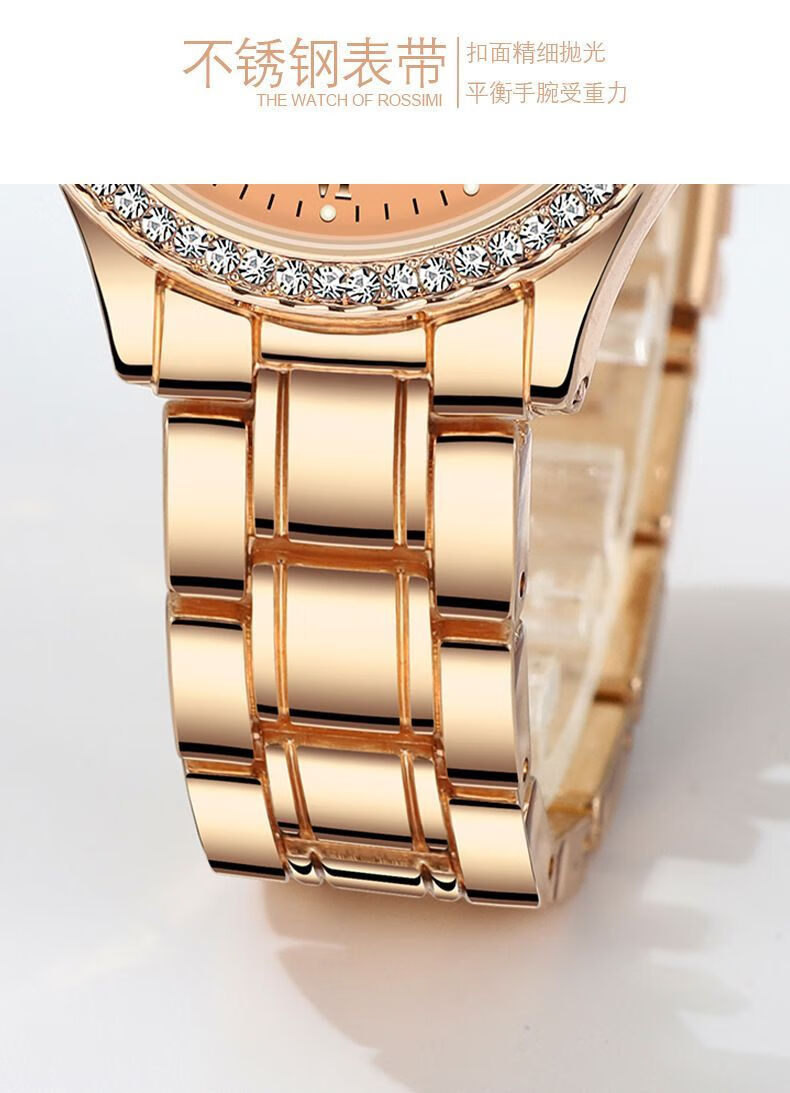 瑞士认证网红女士手表女正品气质防水夜光高档时尚名牌女表新款 专柜高端礼盒-769金壳金面钢带