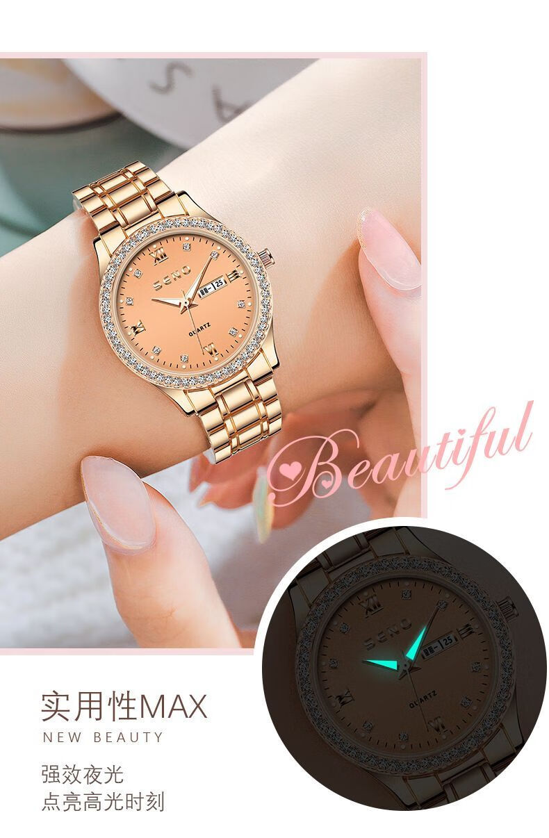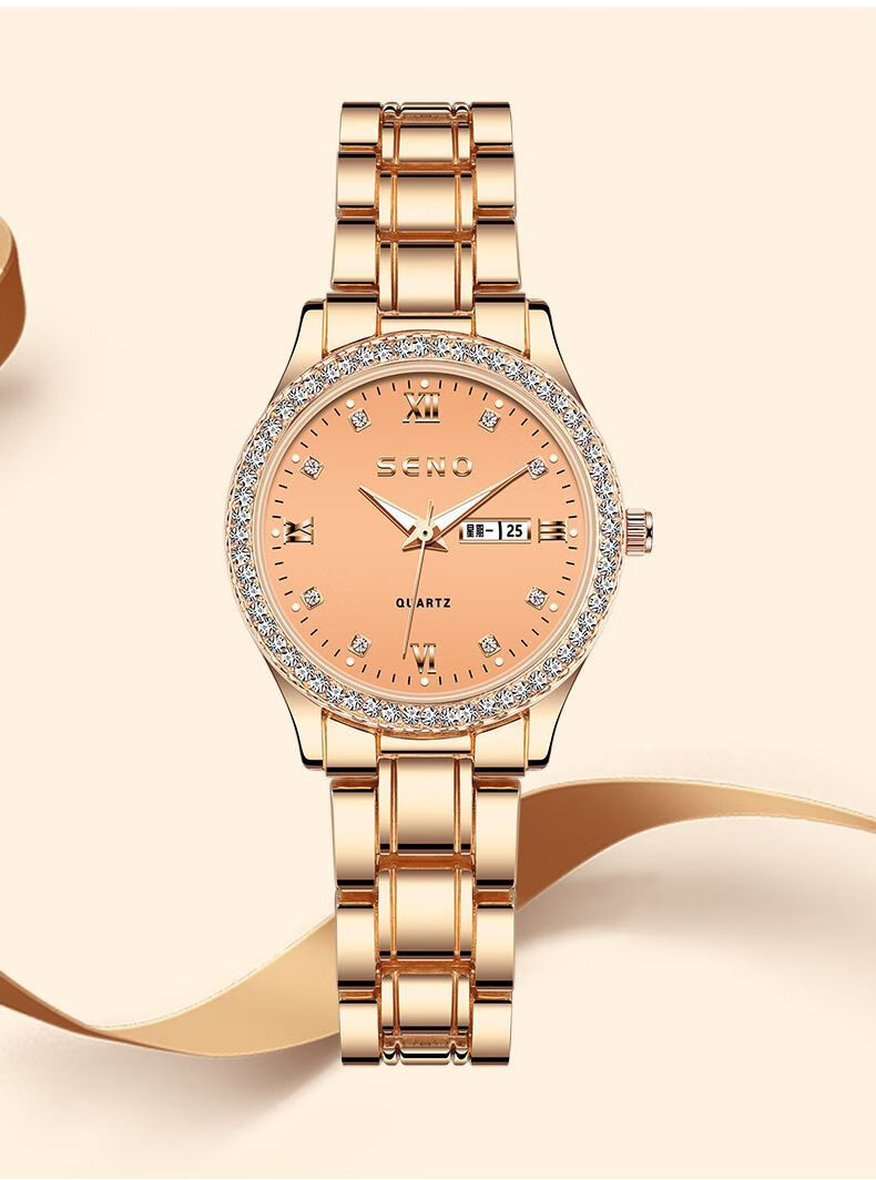 巨靓瑞士旗舰新款正品名牌女士手表女款满钻表全自动镶钻时尚防水女表 旗舰升级新版-玫瑰金满天星