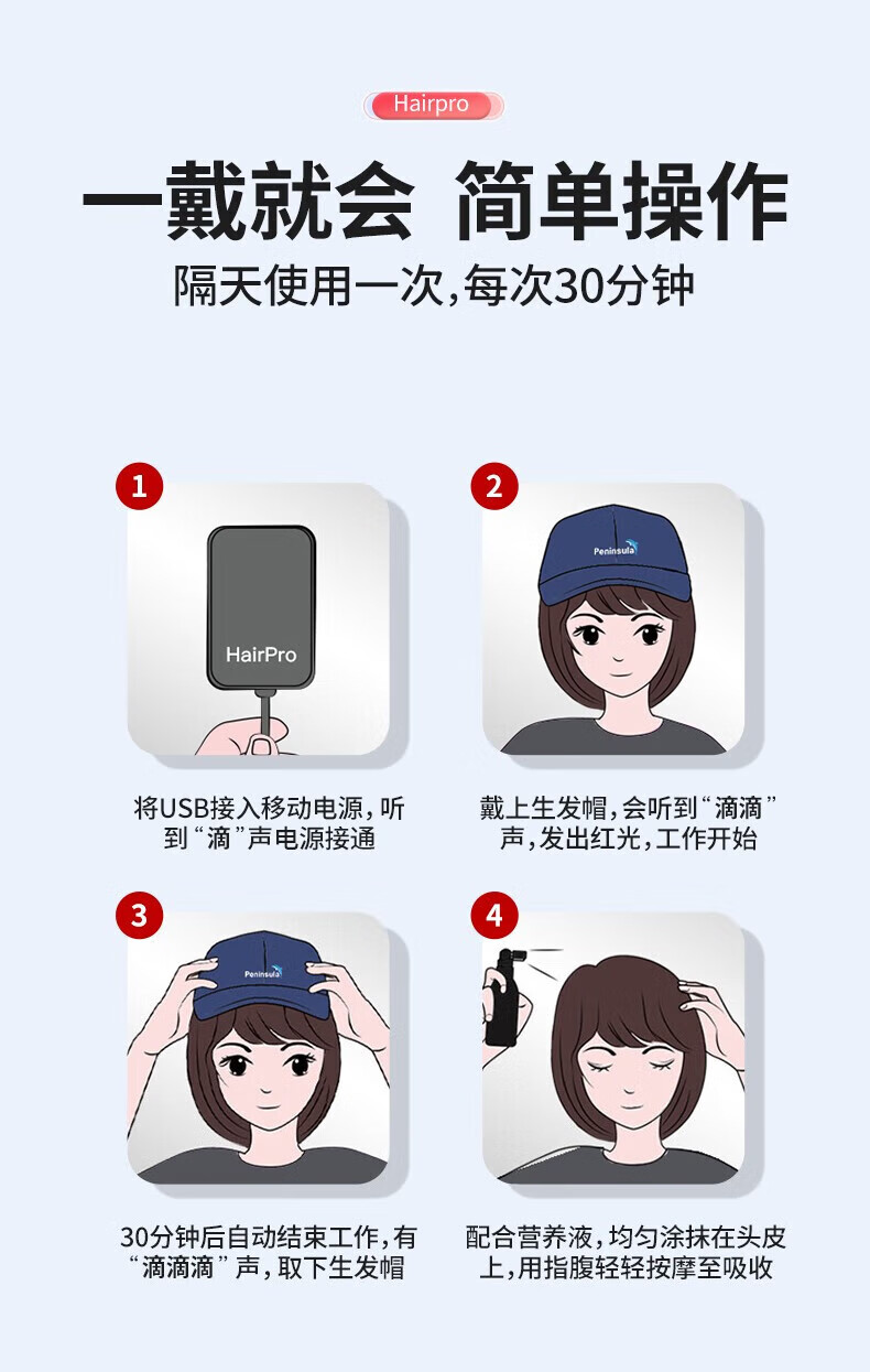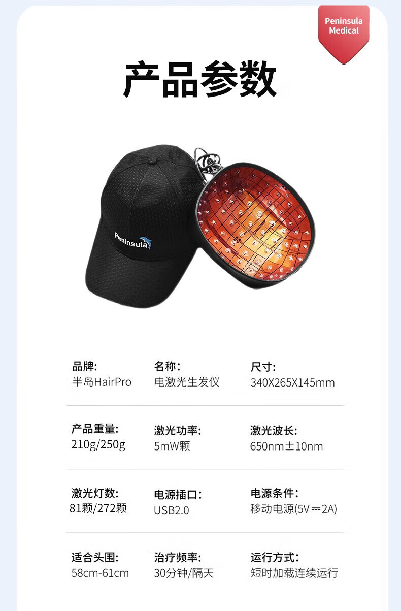 半岛生发帽电激光生发仪脱发头发生长红光护理增发密发理疗仪健发防秃 半岛激光生发帽(272颗激光头)棒球帽+生发大礼包