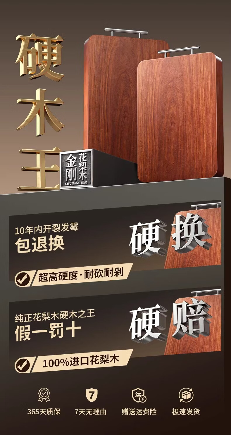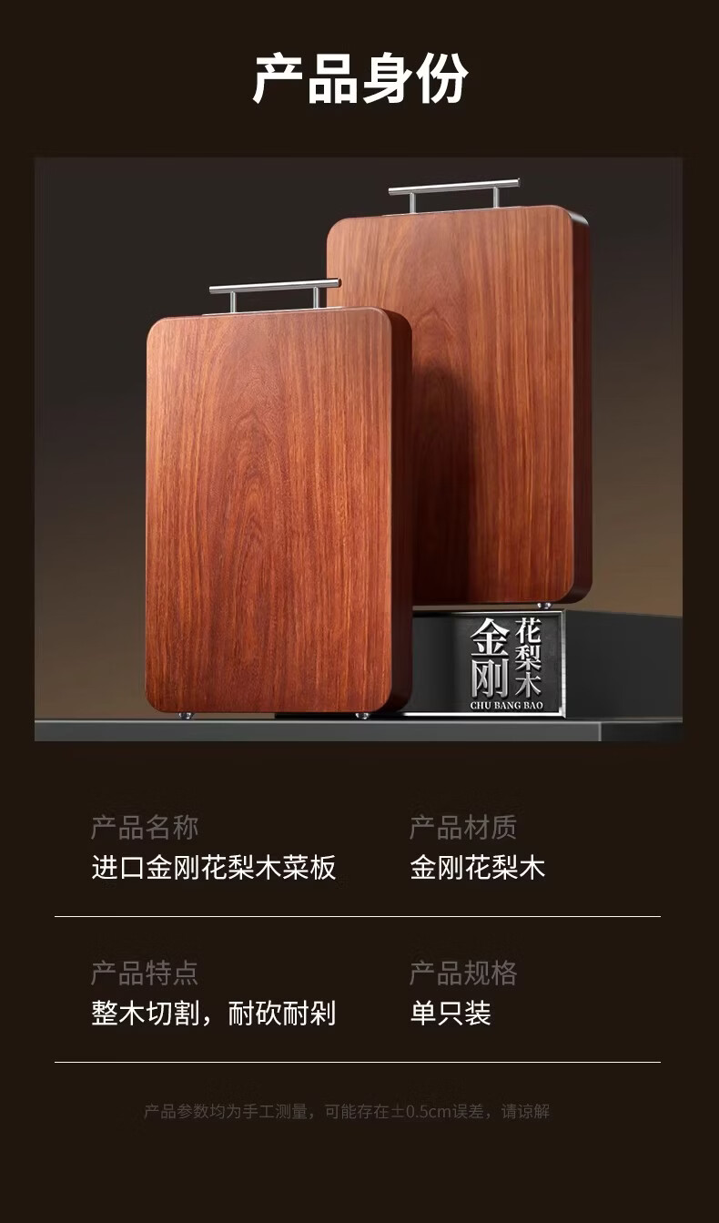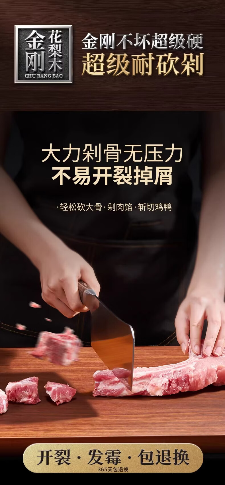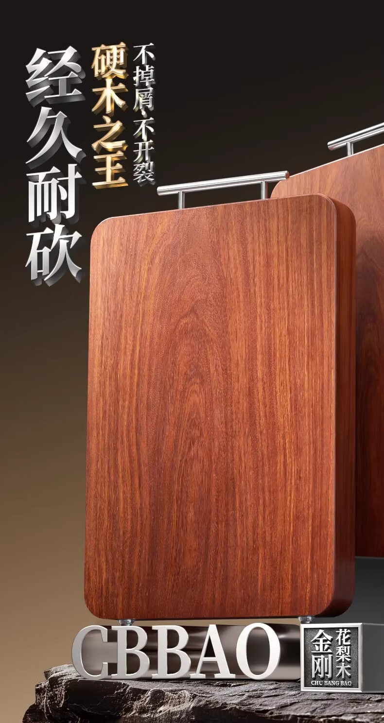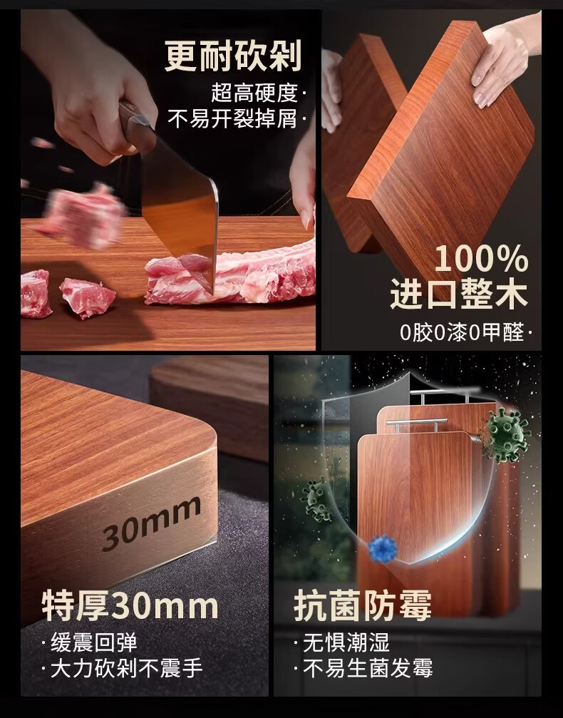 金刚花梨木切菜板抗菌防霉家用砧板实木方形占板整木粘板厨房案板 【金刚花梨木】硬木之王60*40*3.0