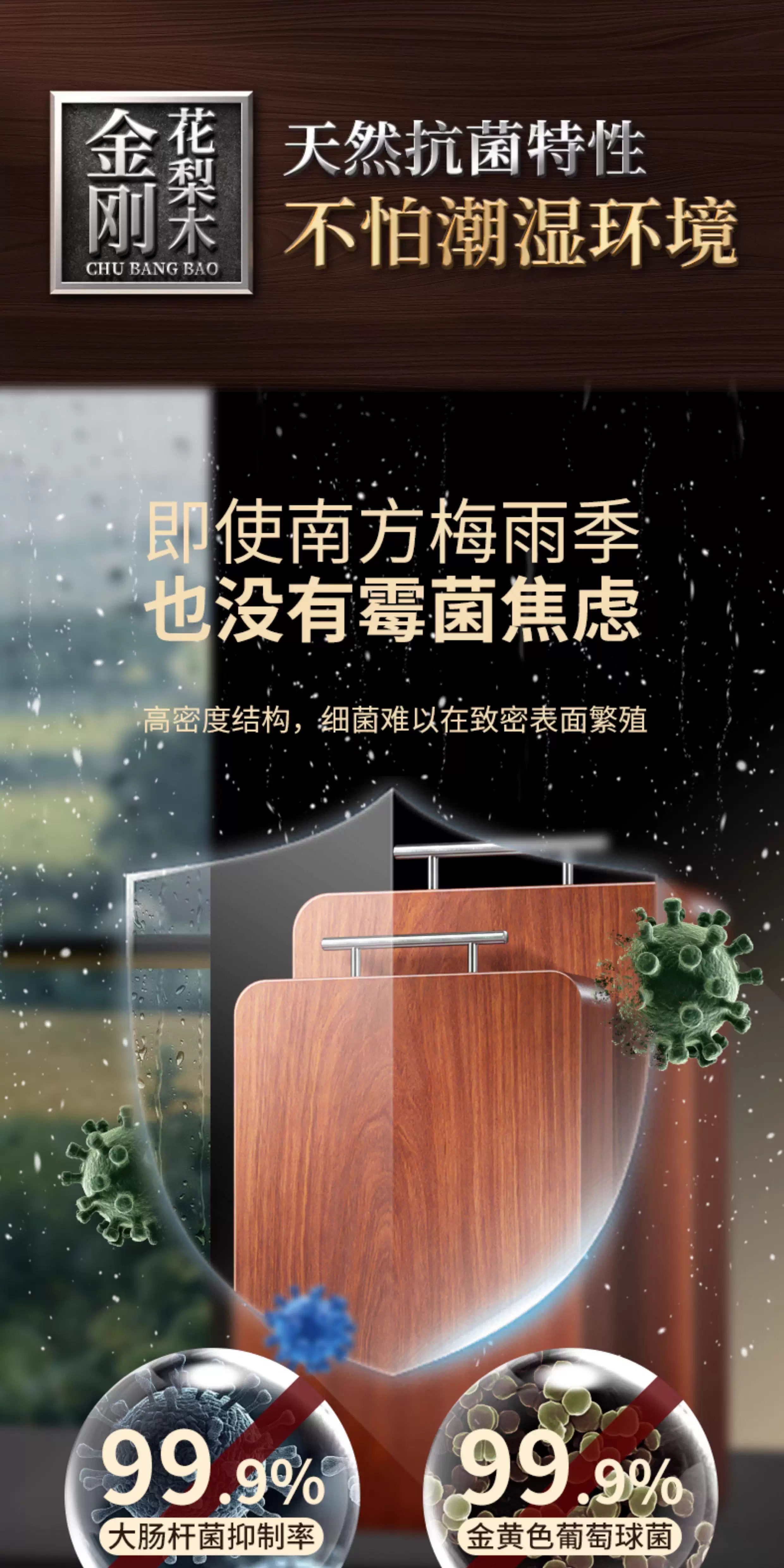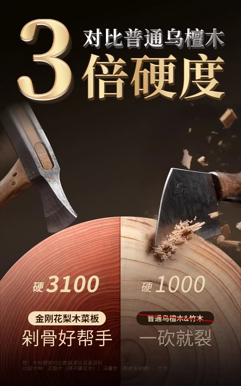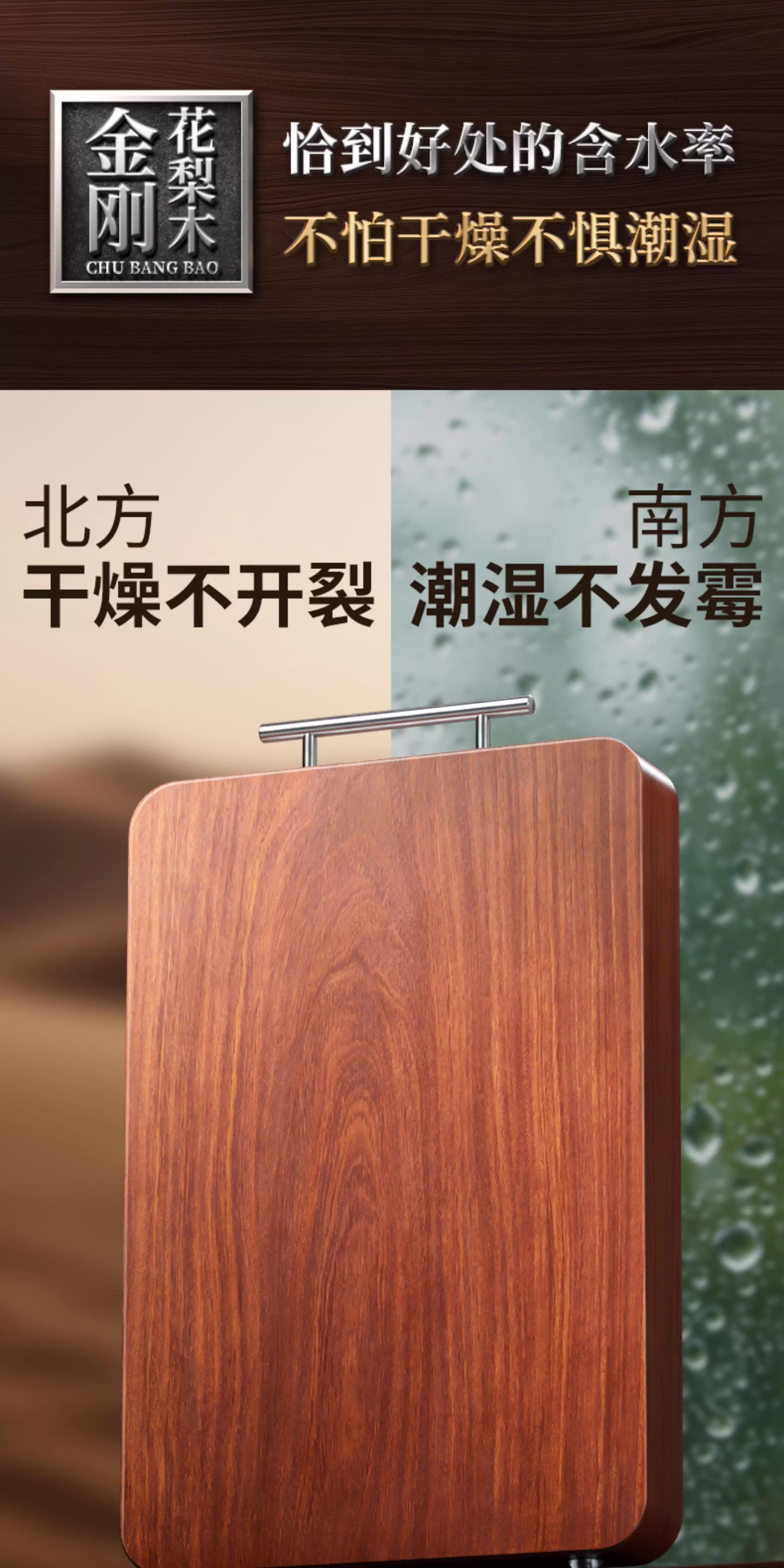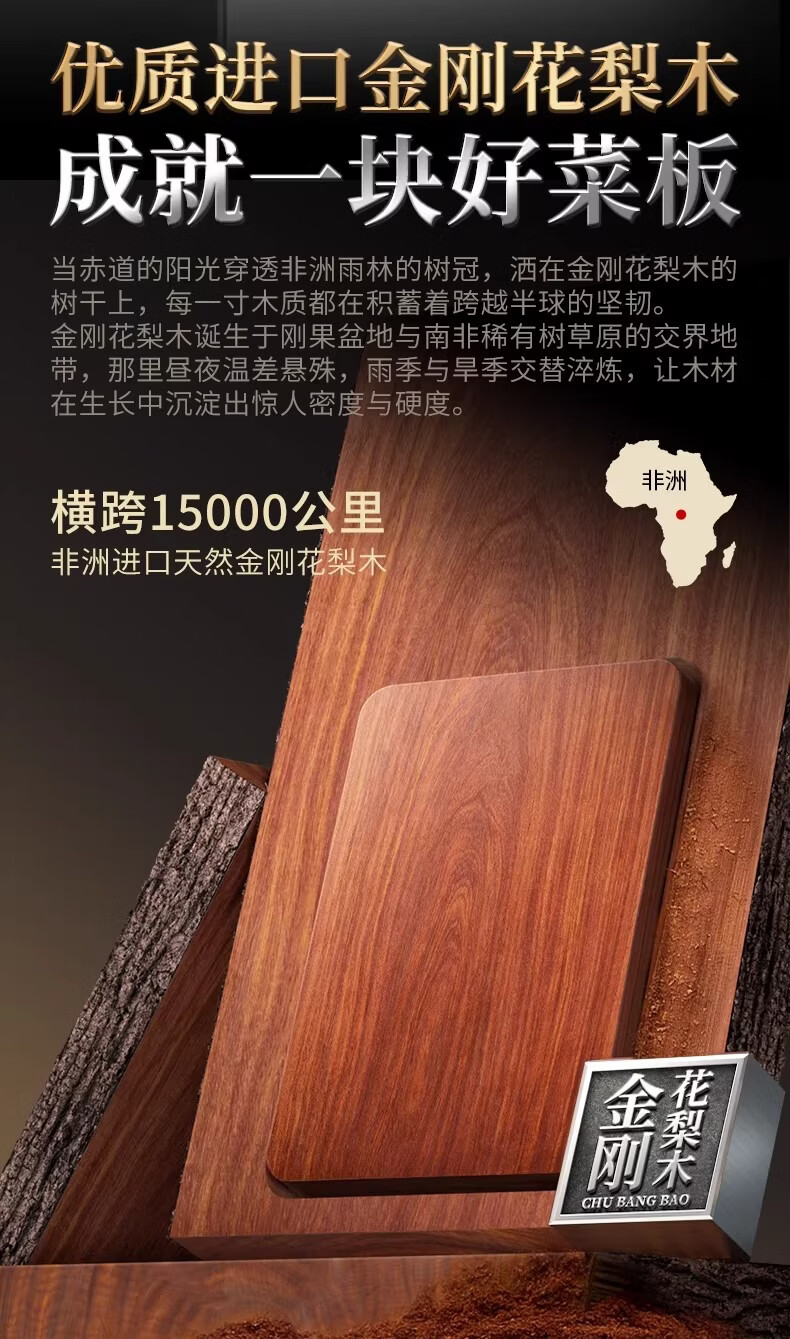 金刚花梨木切菜板抗菌防霉家用砧板实木方形占板整木粘板厨房案板 【金刚花梨木】硬木之王60*40*3.0