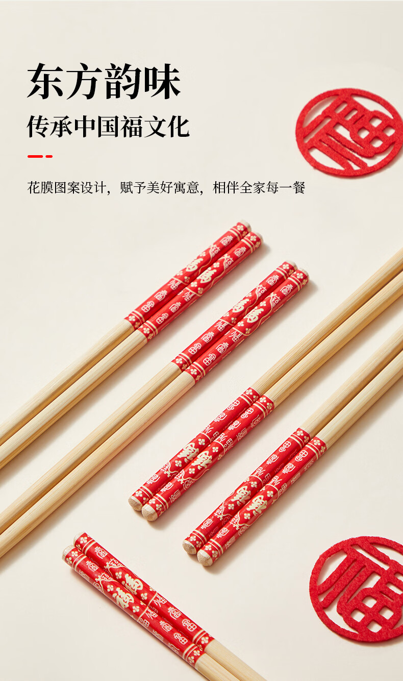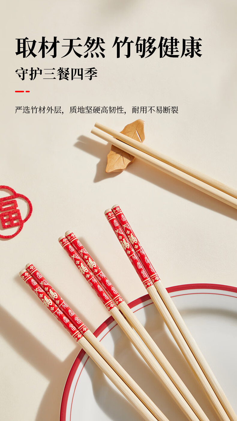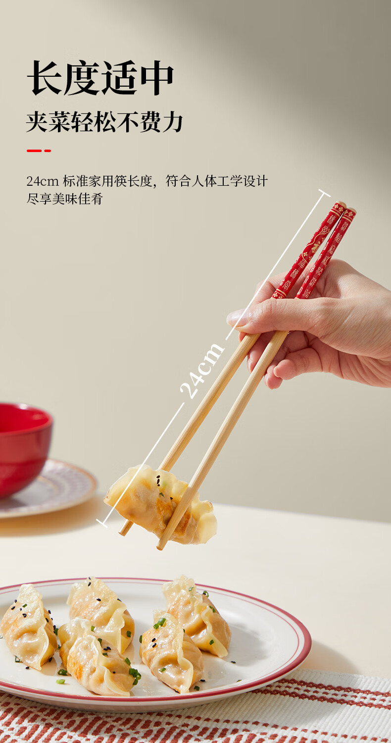 炊大皇(COOKER KING) 炊大皇筷子10双装不锈酒店家用创意筷子礼品筷子不含钢筷子套装 福字楠竹筷30双装