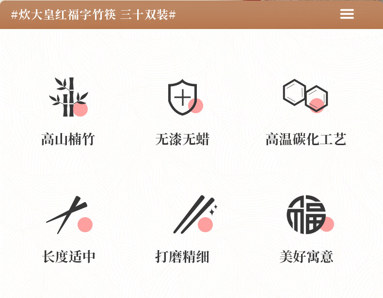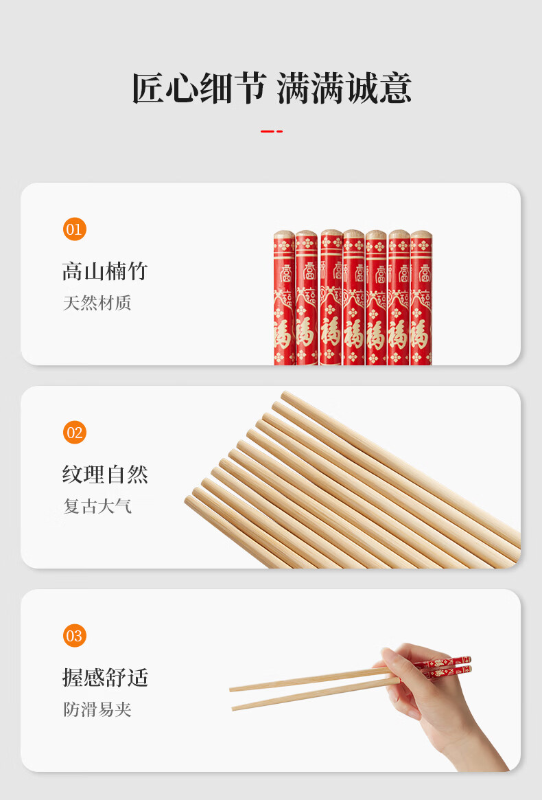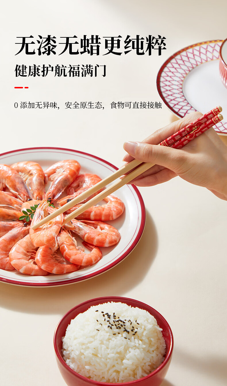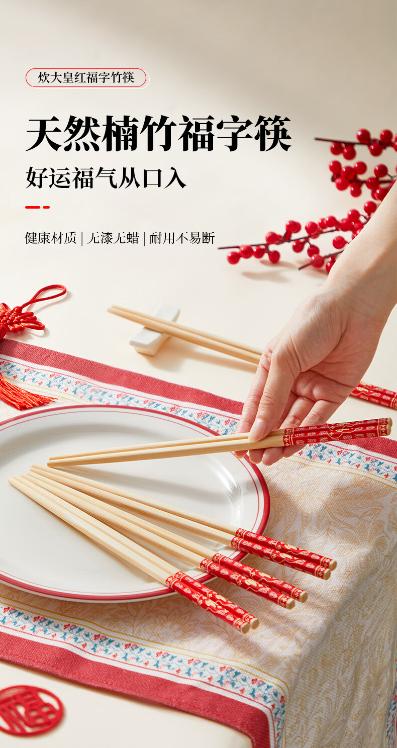 炊大皇(COOKER KING) 炊大皇筷子10双装不锈酒店家用创意筷子礼品筷子不含钢筷子套装 福字楠竹筷30双装