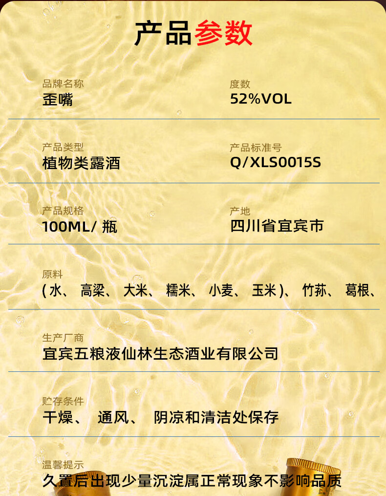 五粮液仙林生态酒公司五粮歪嘴小酒52度100ml*24瓶整箱装