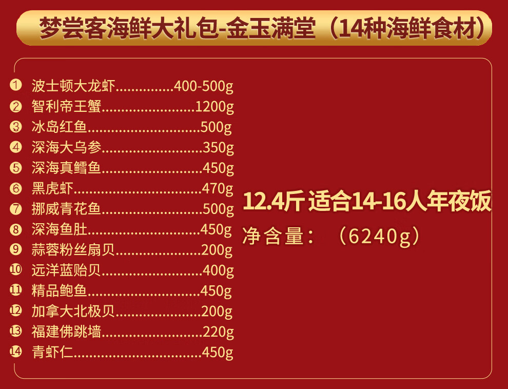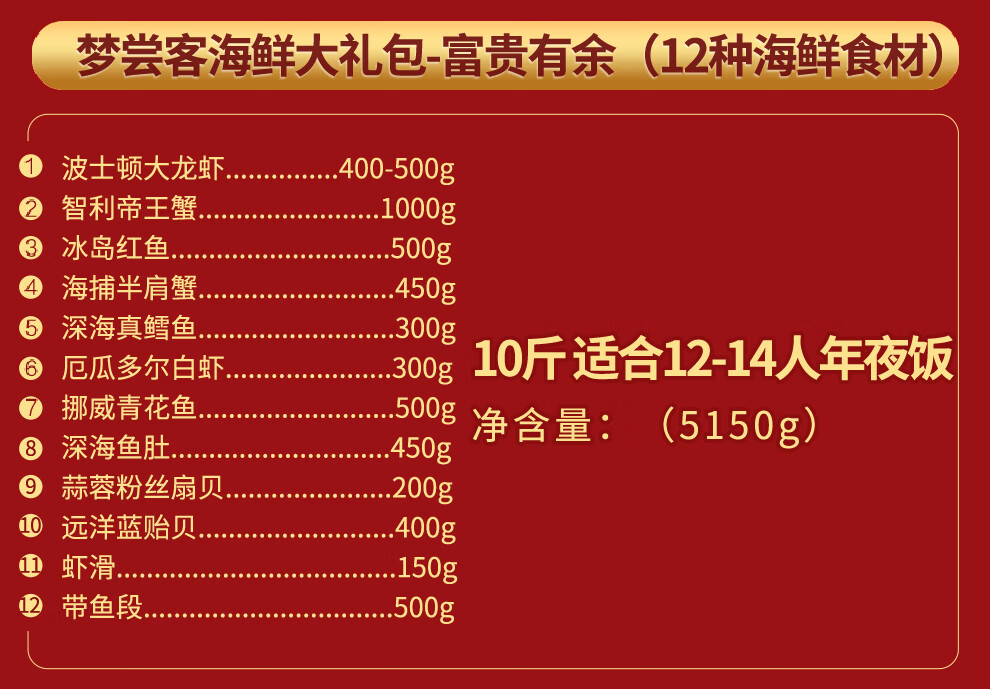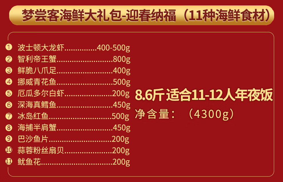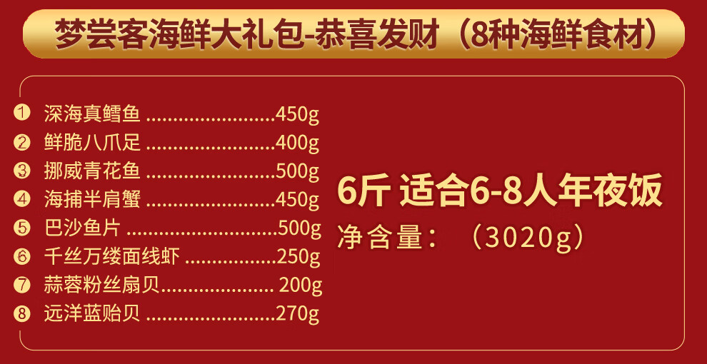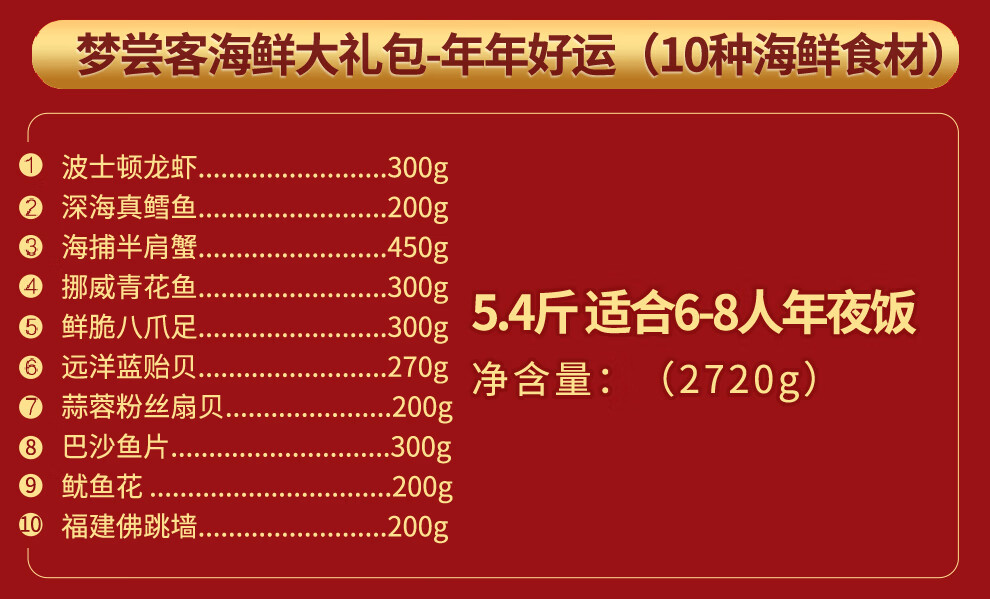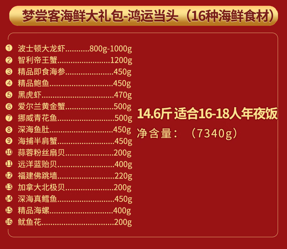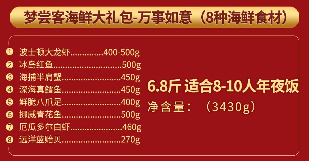 【现货】梦尝客海鲜礼盒年货大礼包春节礼品帝王蟹波士顿龙虾送礼 万事如意2688型/8种/净6.8斤