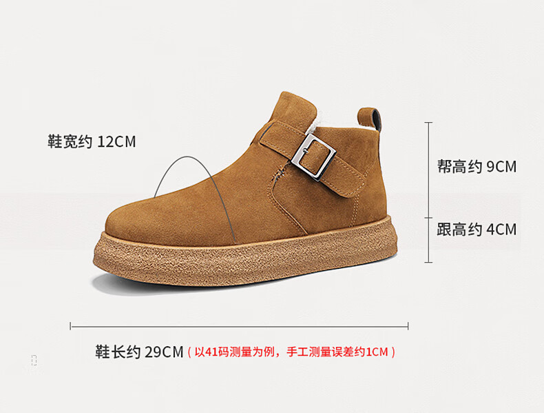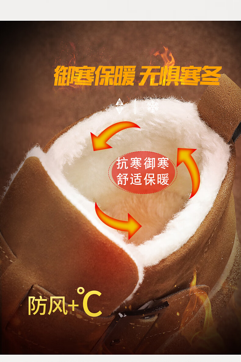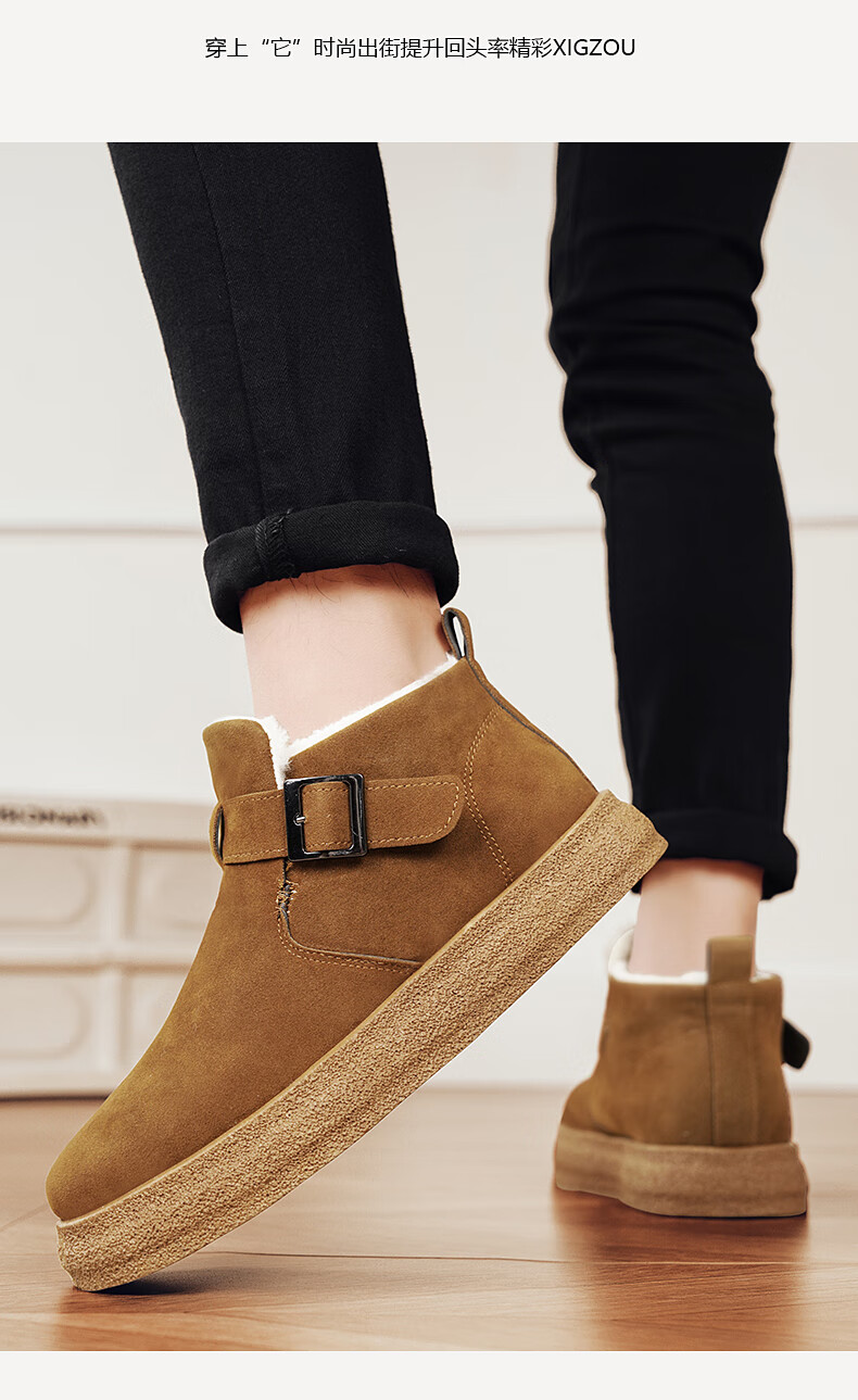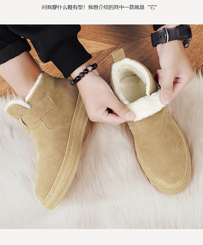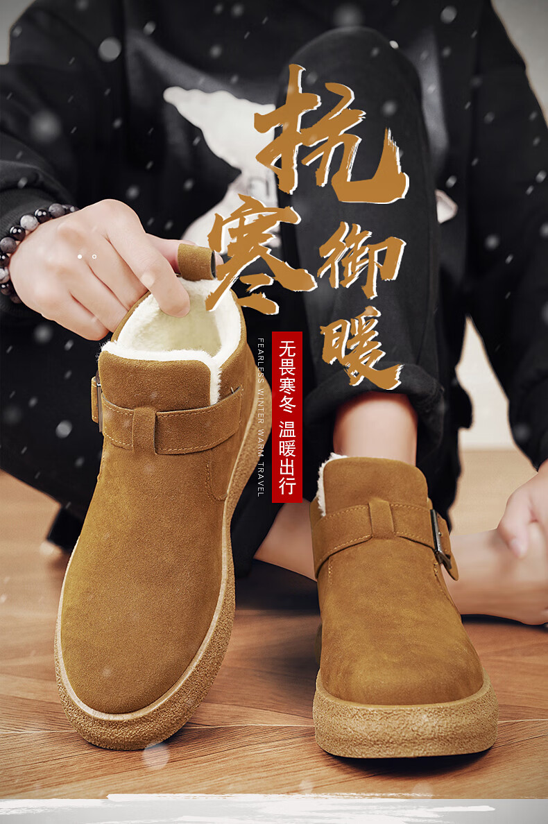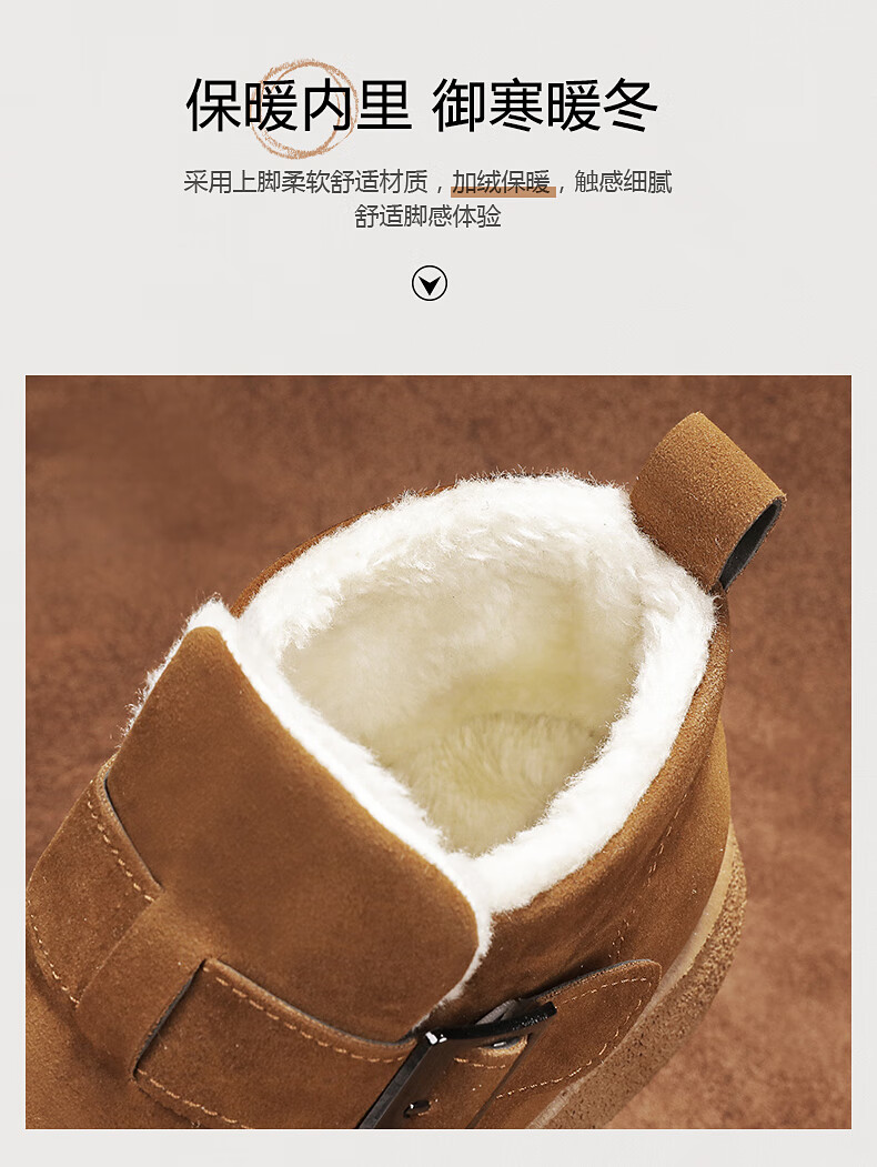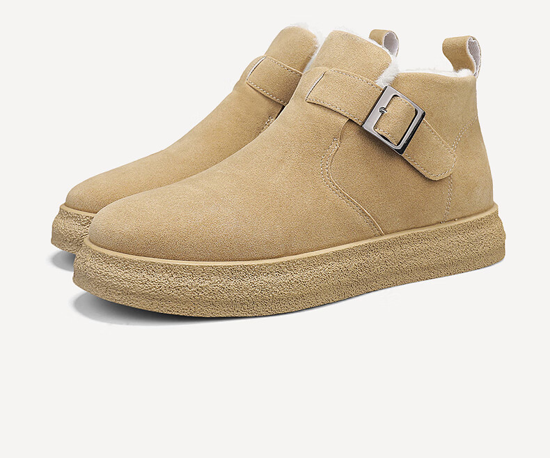 沙驰(SATCHI)男鞋【羊毛皮】防寒保暖雪地靴秋冬棉鞋舒适轻底休闲鞋男靴 卡其(H12A9G0320) 加绒 38 欧码(选小一码)