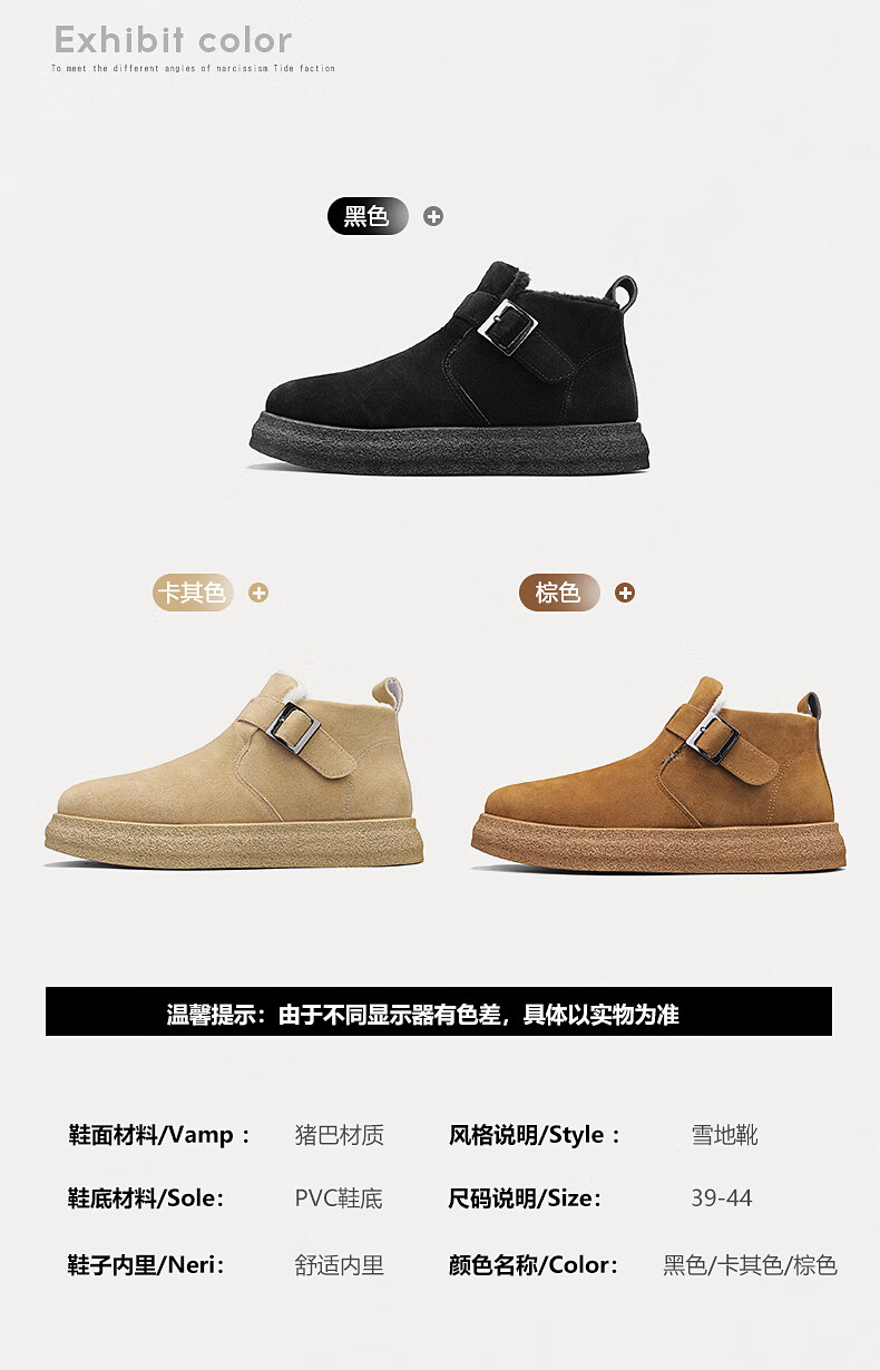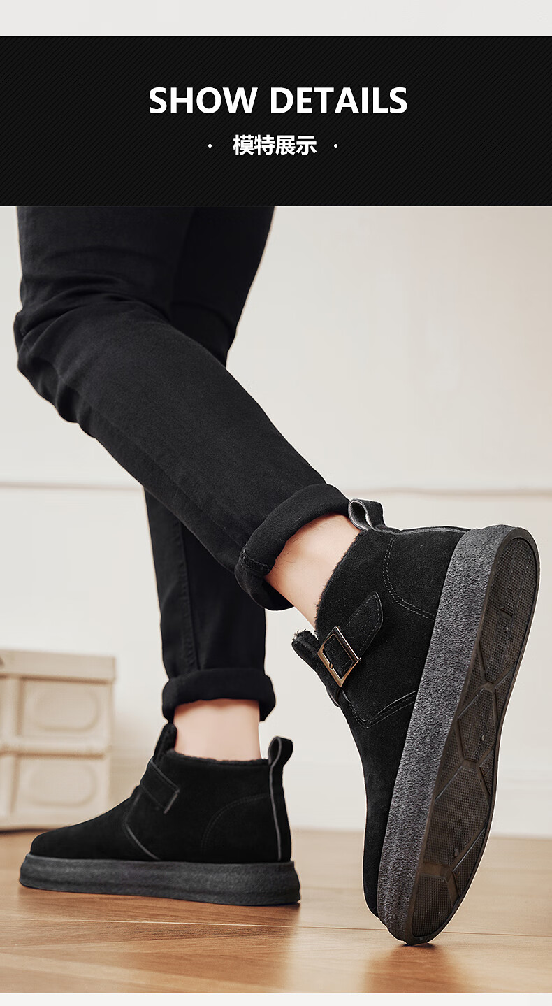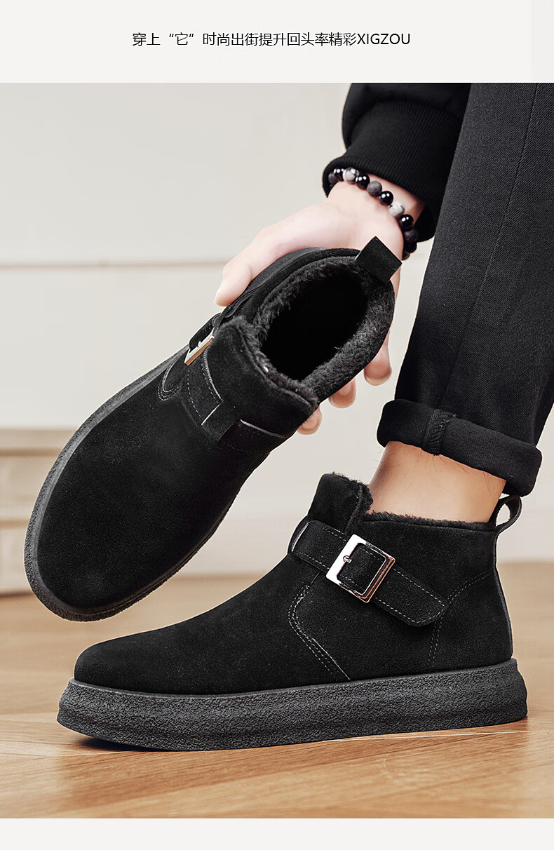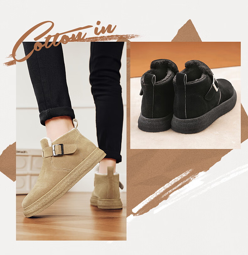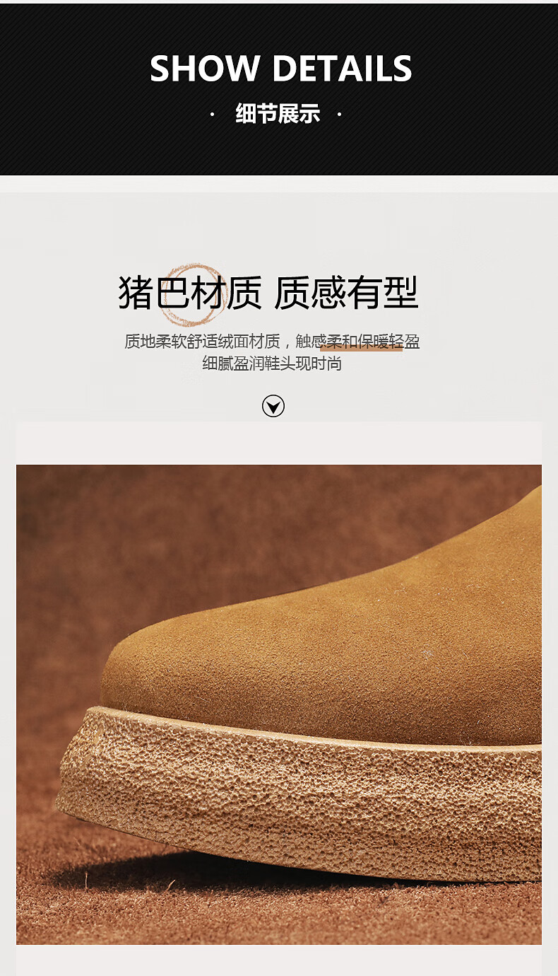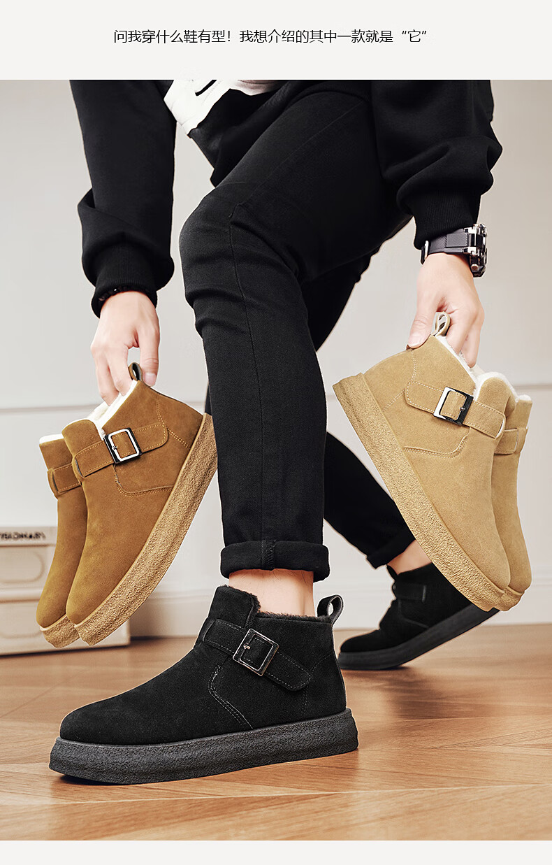 沙驰(SATCHI)男鞋【羊毛皮】防寒保暖雪地靴秋冬棉鞋舒适轻底休闲鞋男靴 卡其(H12A9G0320) 加绒 38 欧码(选小一码)