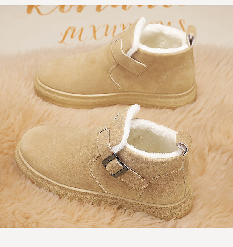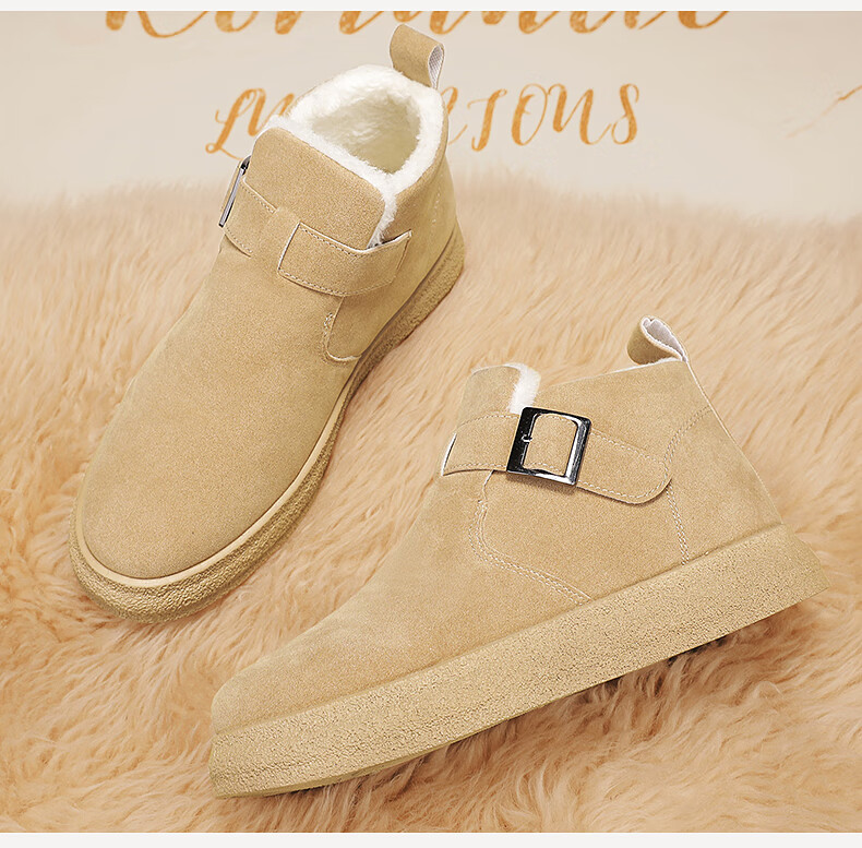 星期六毛绒雪地靴女款冬季加绒2025新款女鞋东北短筒棉鞋厚底保暖面包鞋 卡其色 【冬季保暖】跟高3cm 38