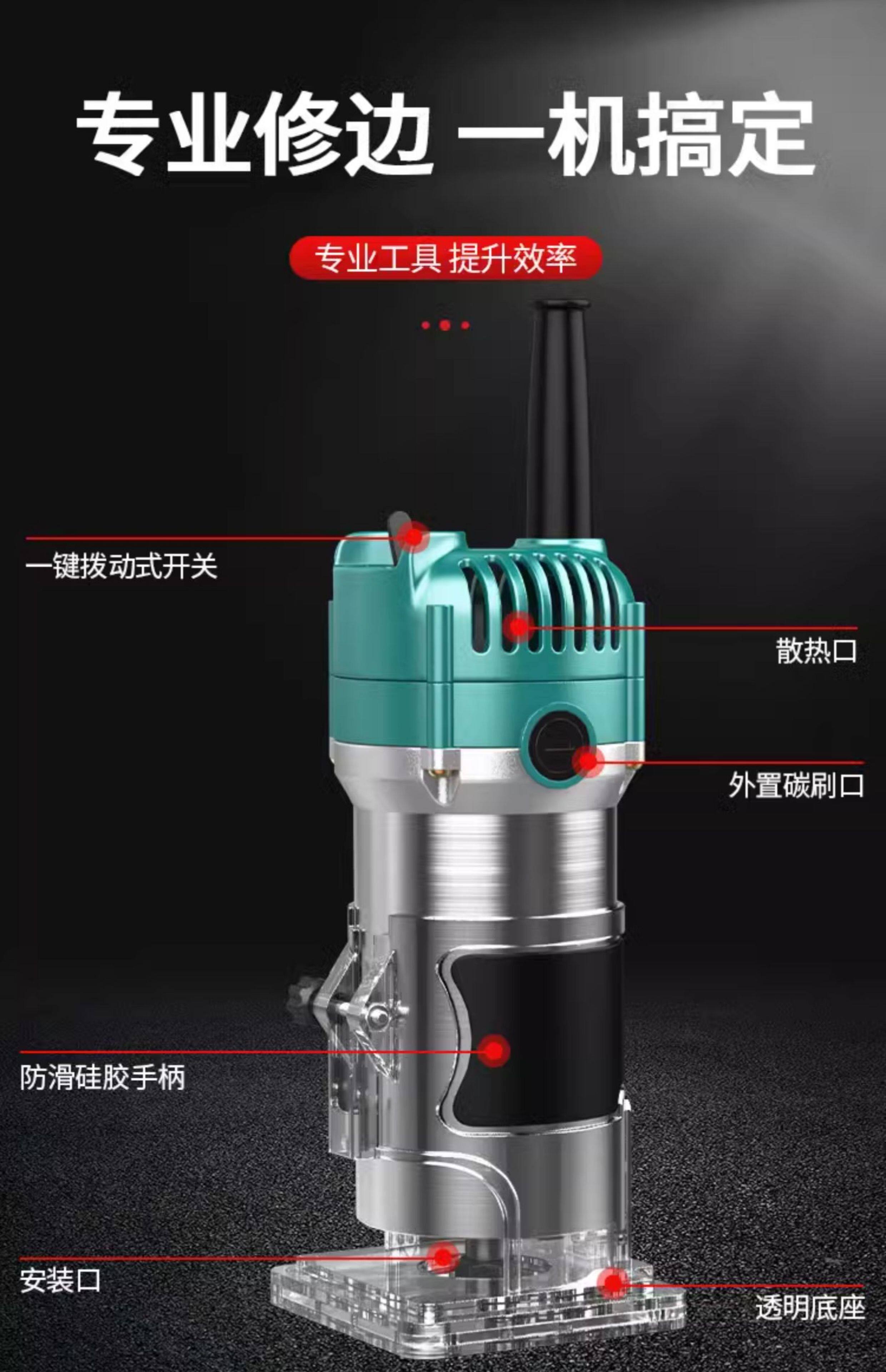 壹玖捌捌电动木工专用修边机开孔开槽神器多功能家用锂电木铣机雕刻大功率 【工业塑体款】标准套餐