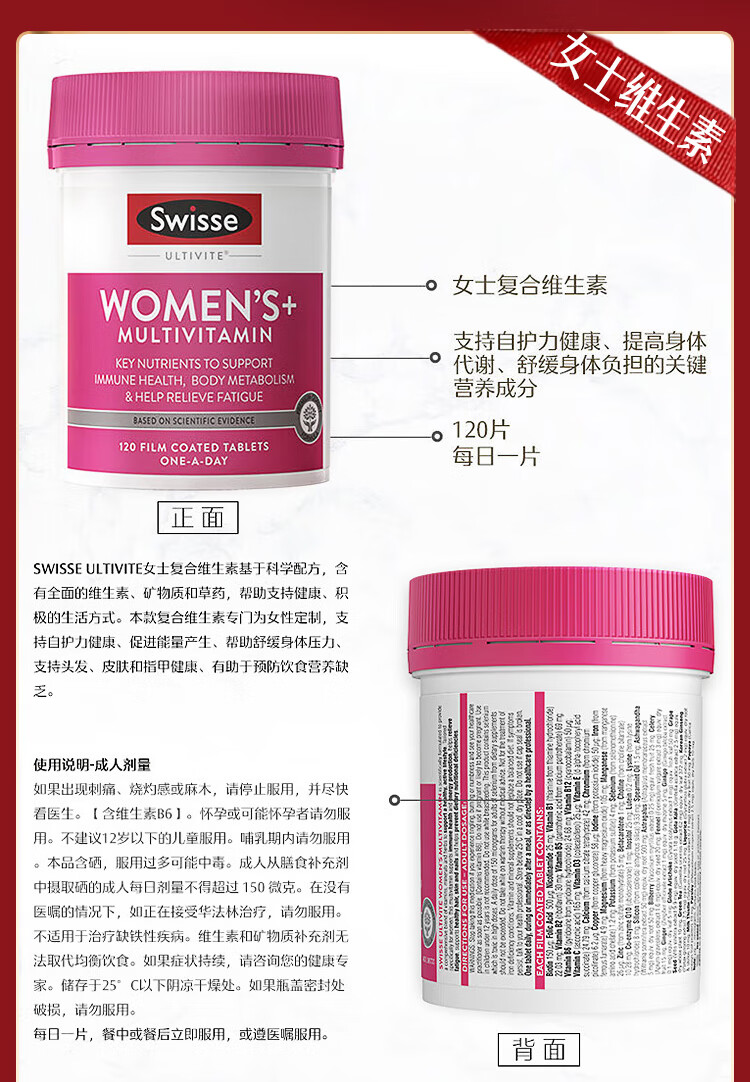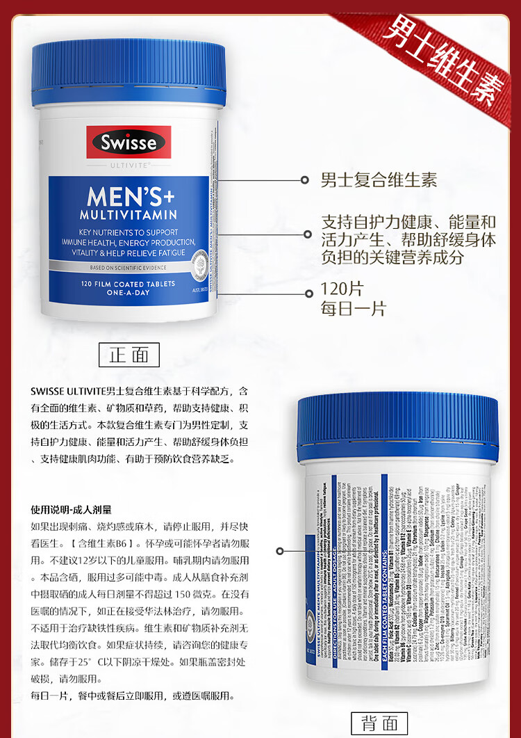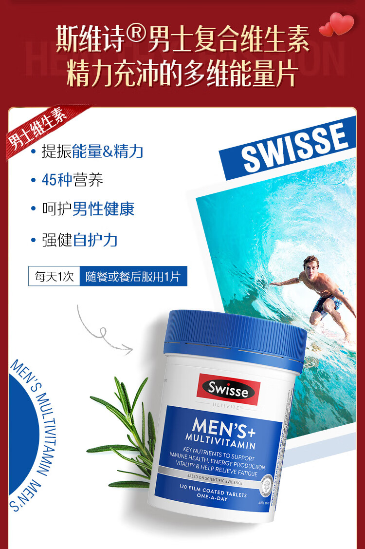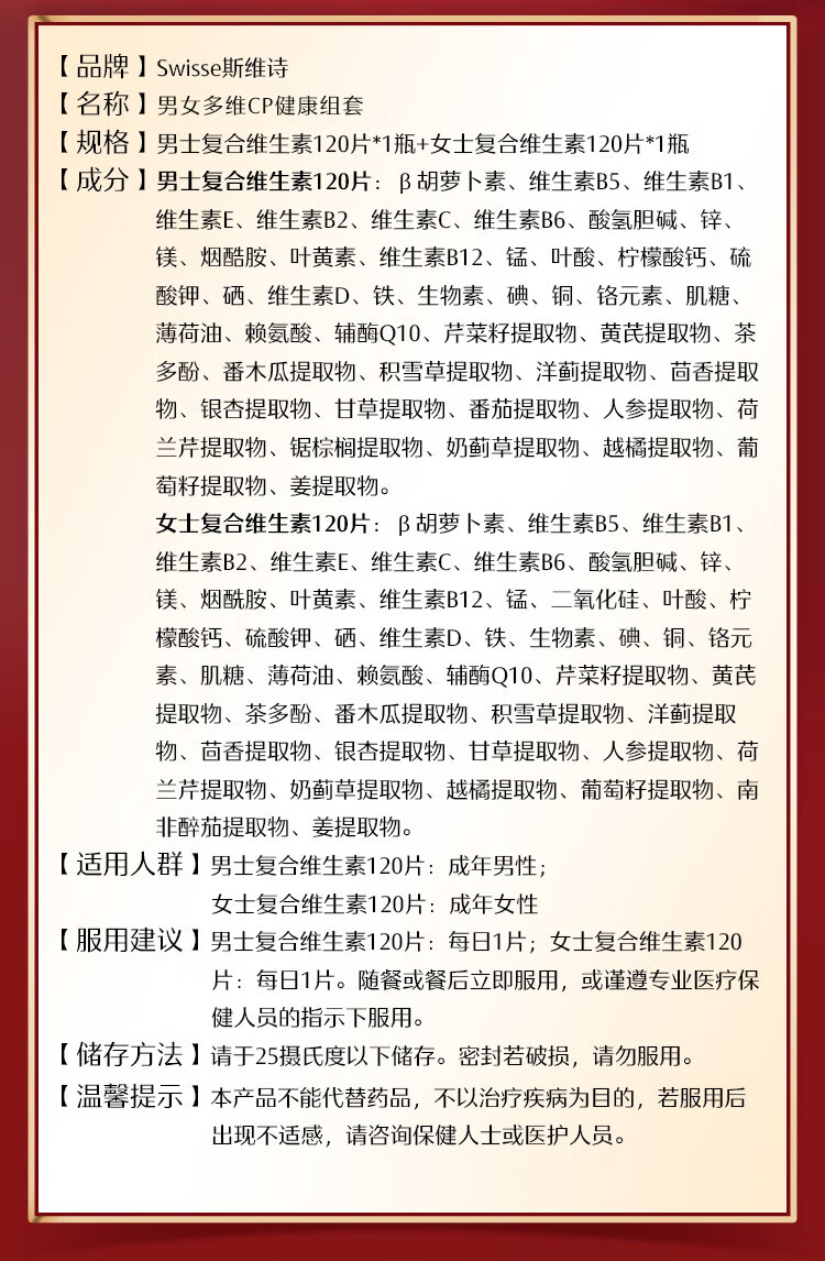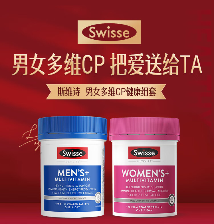 Swisse斯维诗男女多维CP健康组套VCVD男复维120片+女复维120片 45种营养