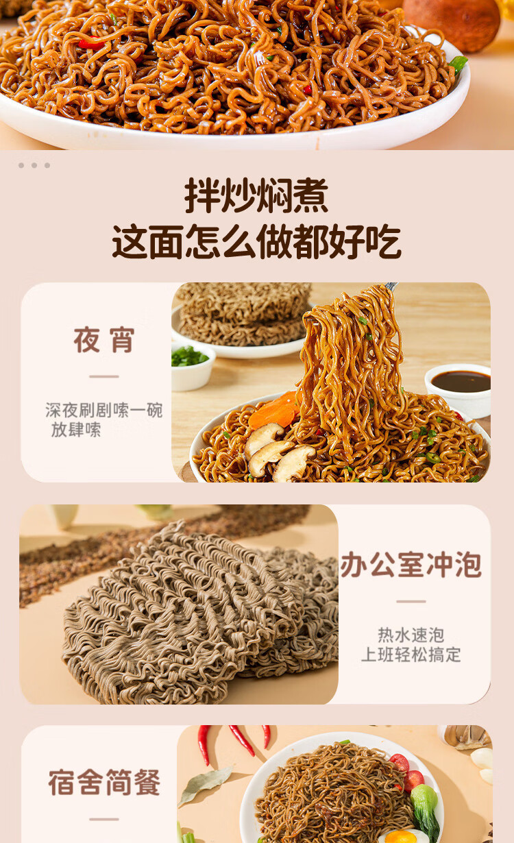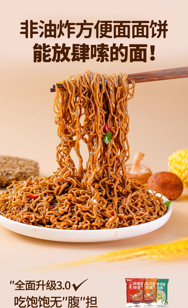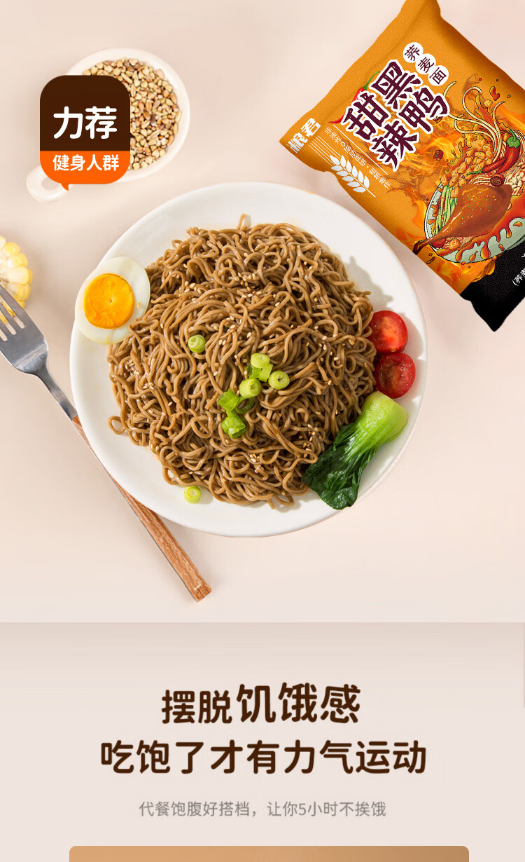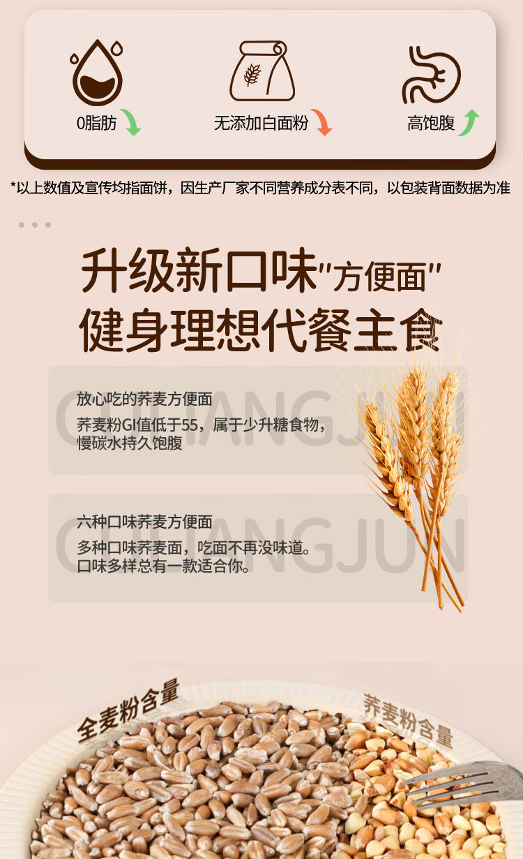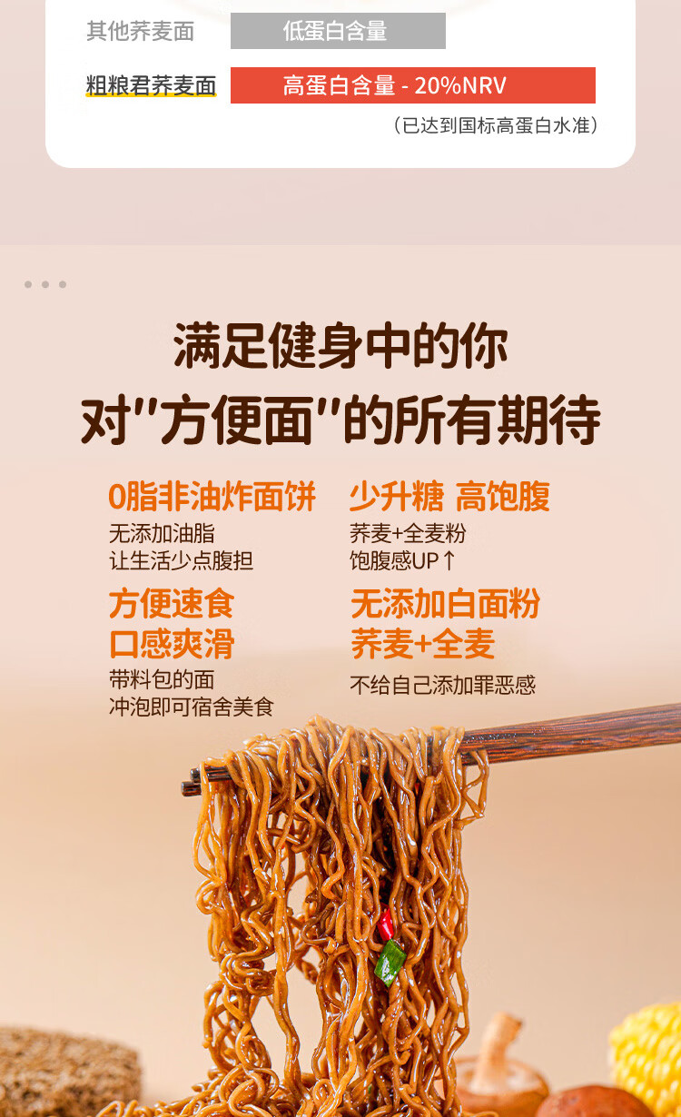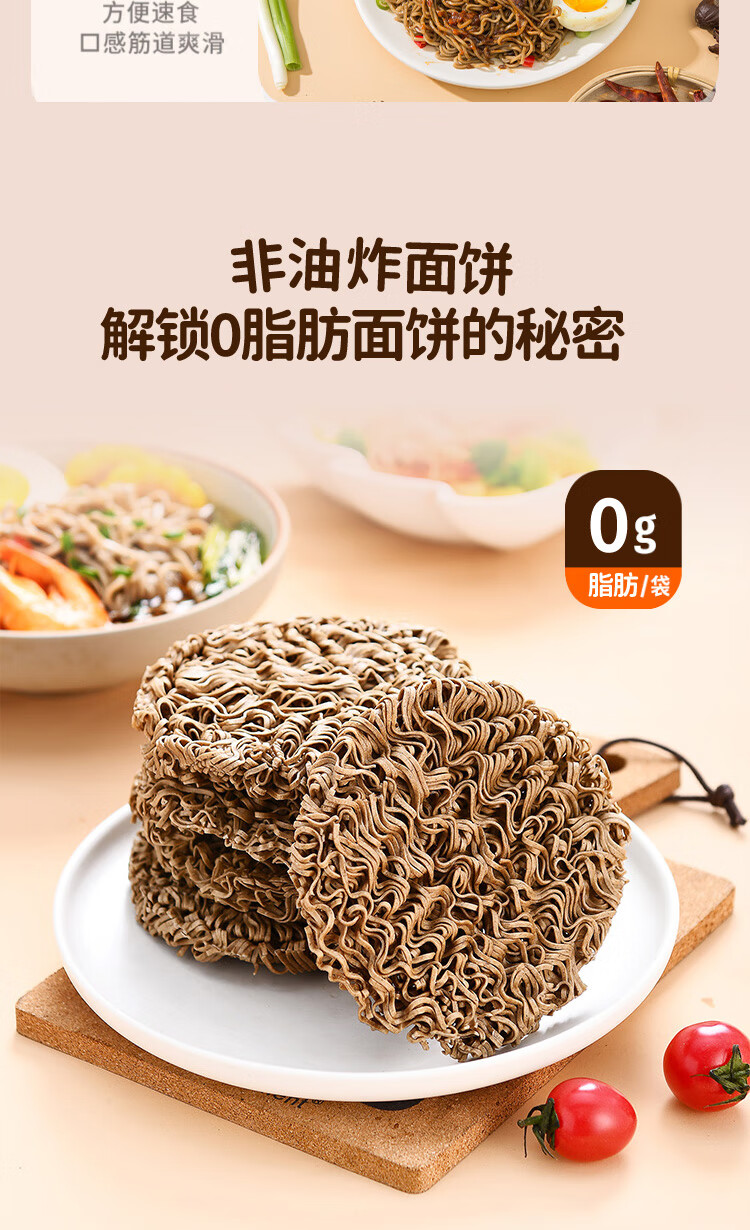 粗粮君0脂肪荞麦方便面带料包60袋*75g泡面葱拌减0粗粮脂肥食品代餐免煮