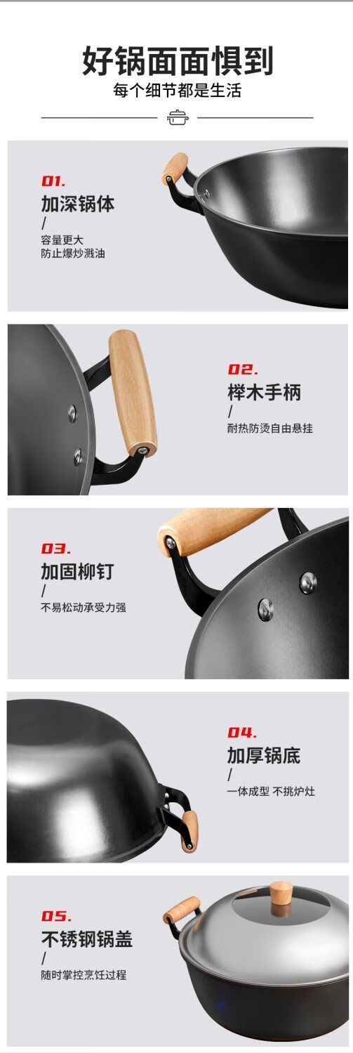 欧品缘正宗铁锅老式无涂层炖锅加深平底锅炒菜锅家用双耳铸铁生铁锅炒锅 32cm单锅 1寸