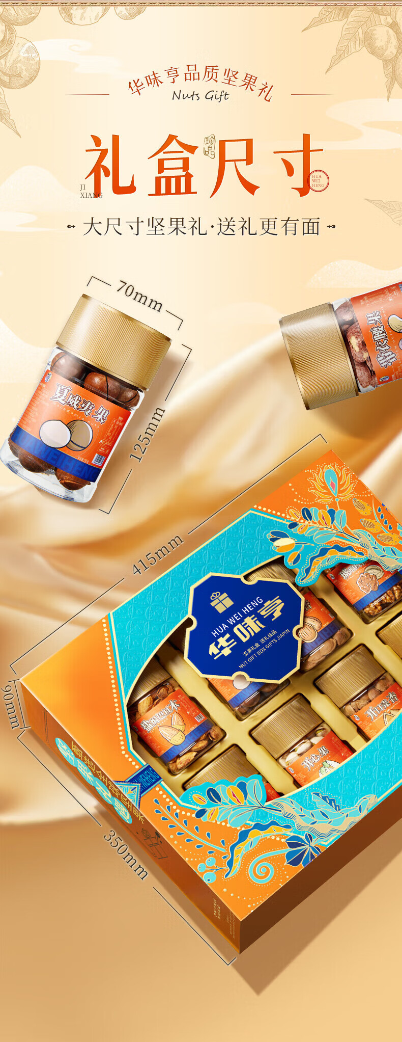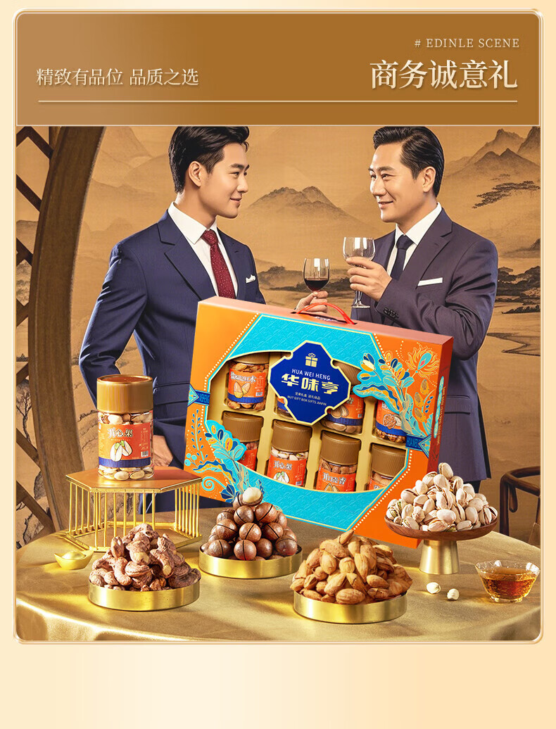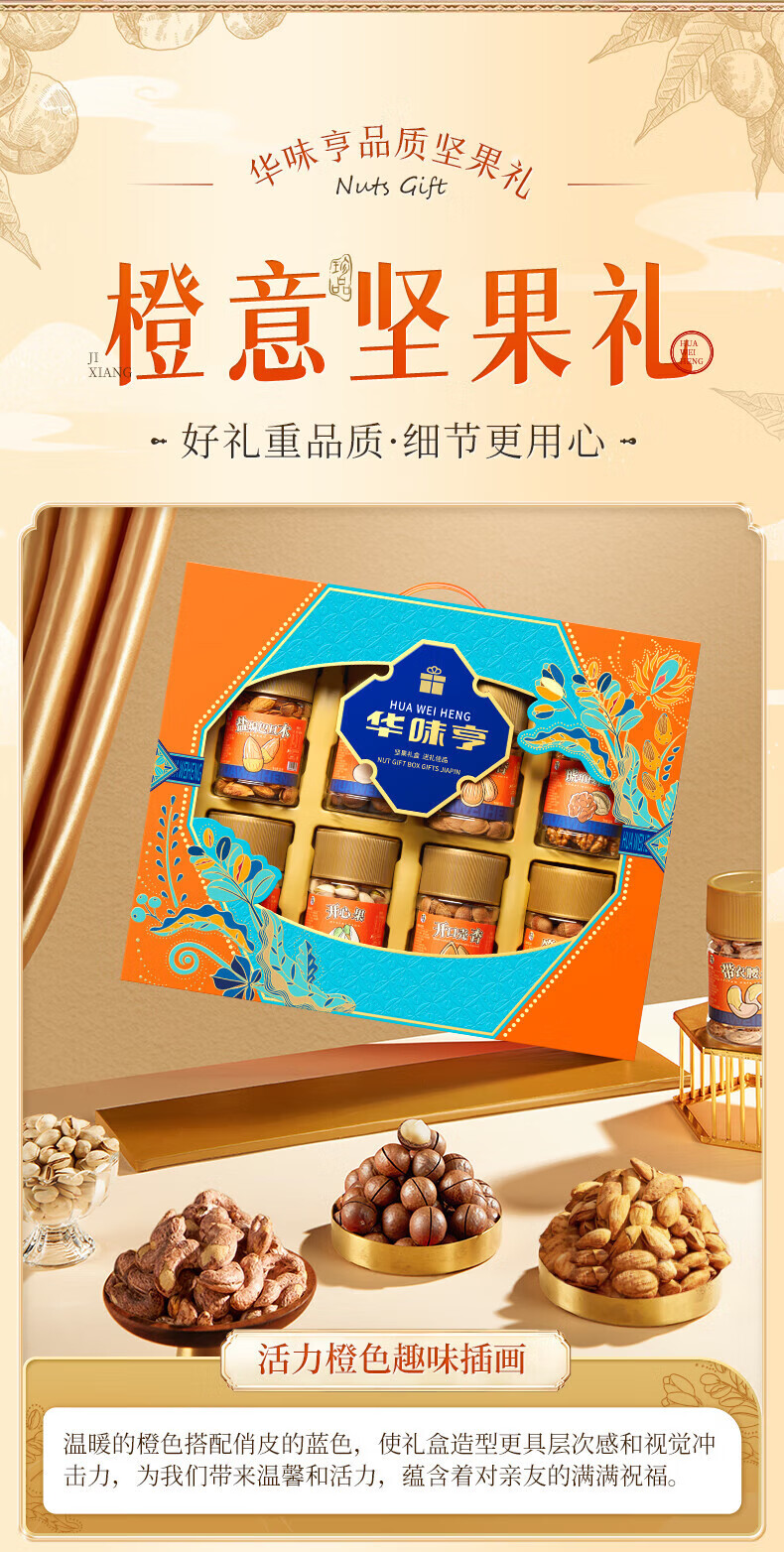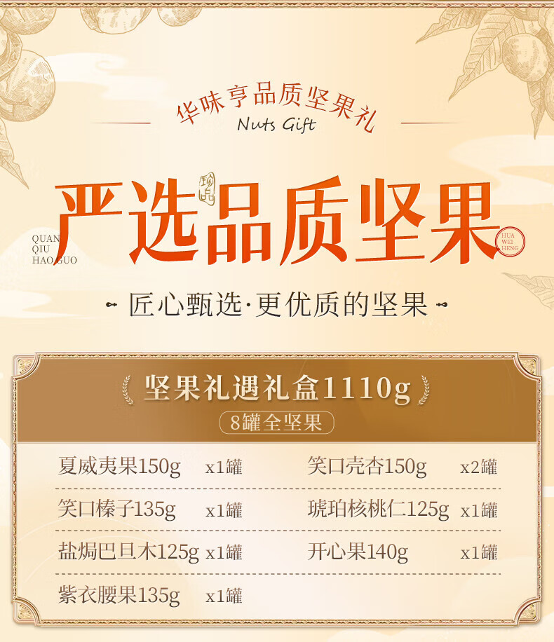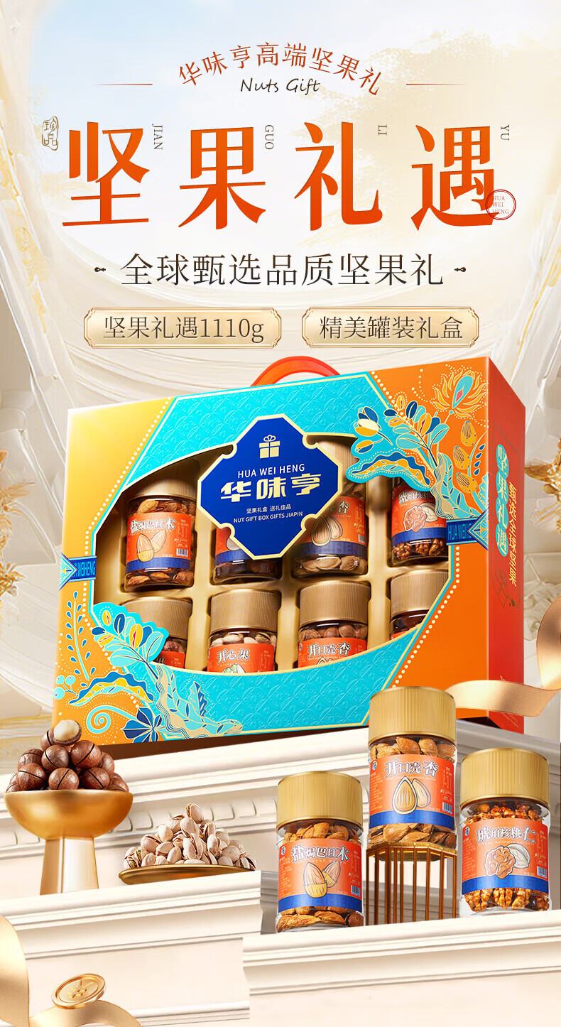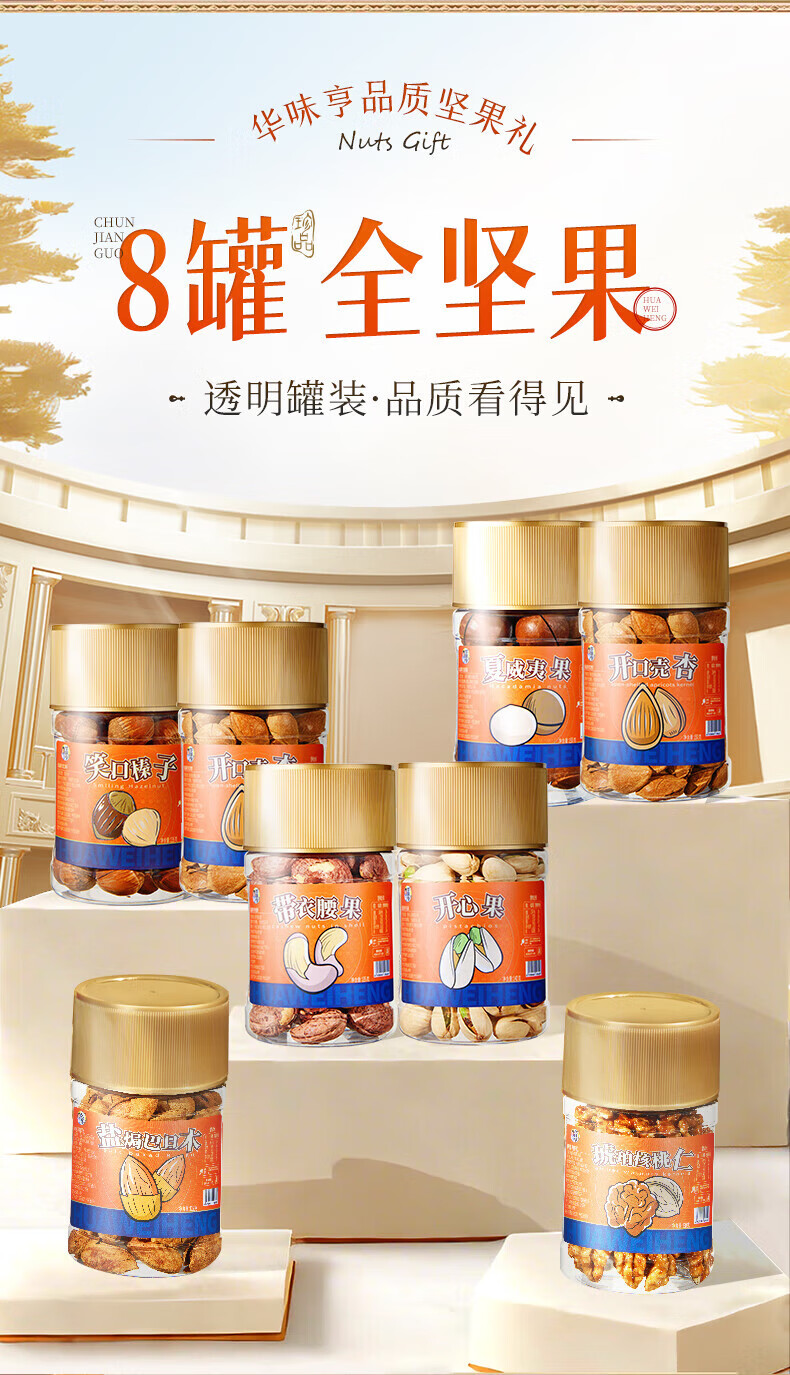 华味亨坚果礼遇坚果礼盒1110g/8罐 纯坚果团购送礼开心果核桃休闲零食 精美罐装坚果礼盒1110g