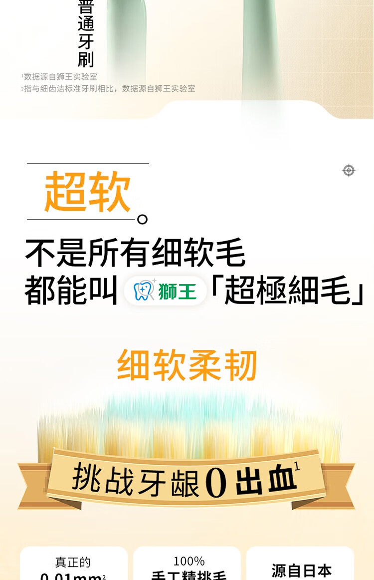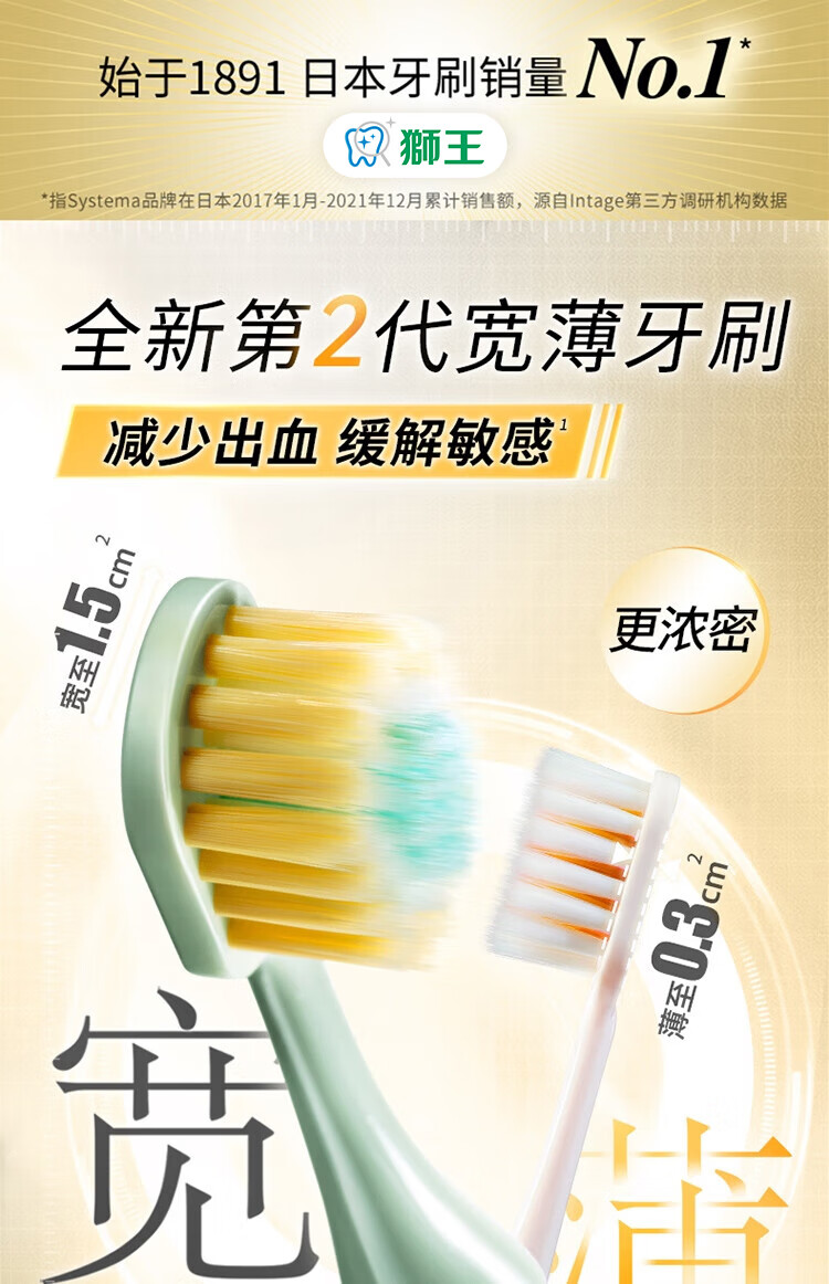 狮王(Lion)细齿洁宽薄茶抗敏牙刷2支软毛成年人缓解敏感减少出血