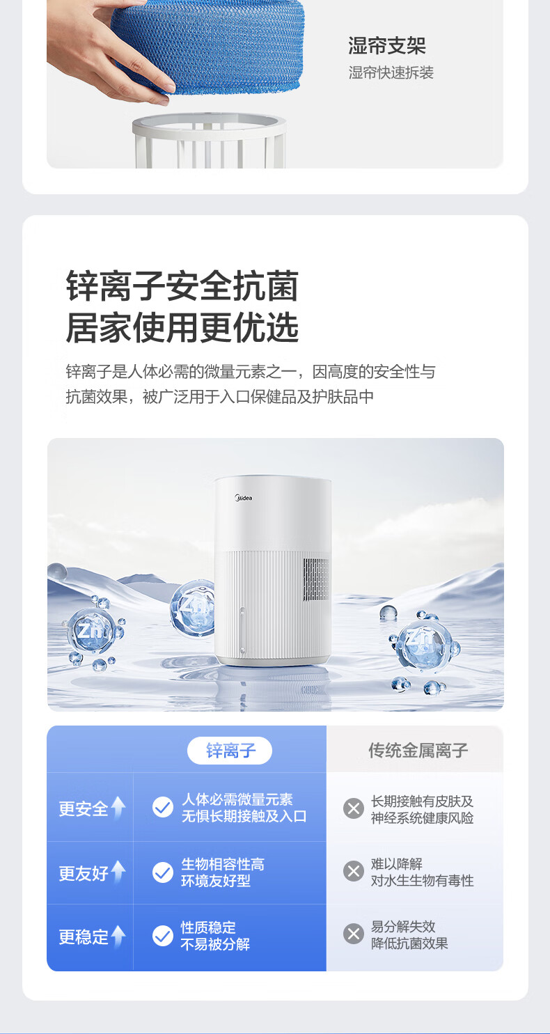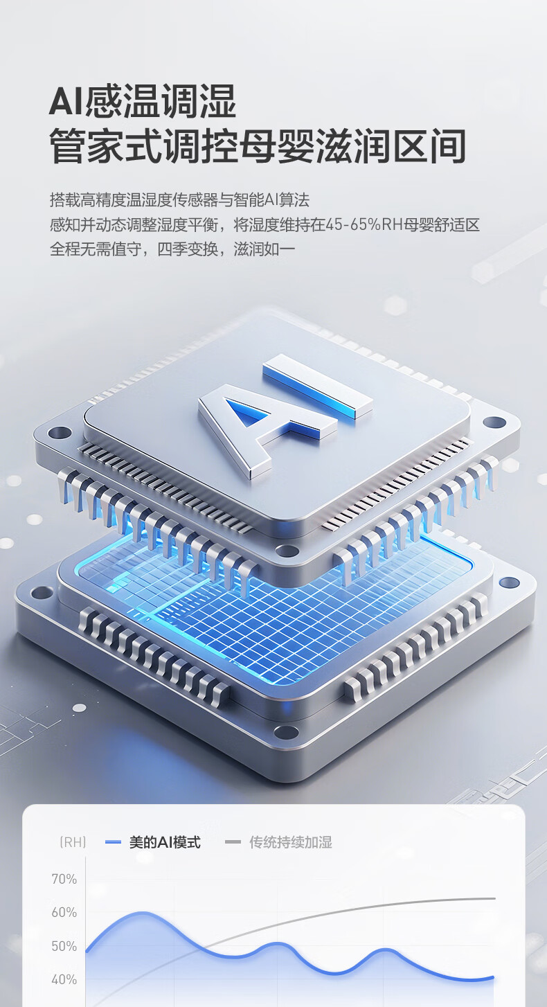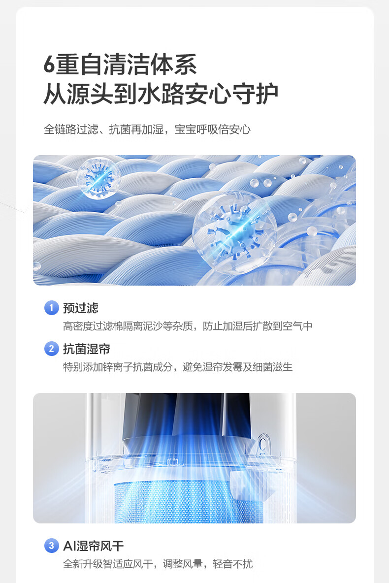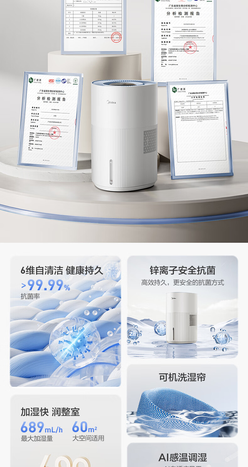 美的(Midea)小蓝鲸700无雾空气加湿器家用卧室大容量客厅孕妇母婴幼儿鼻炎静音抗菌空调取暖补水新年礼物W50