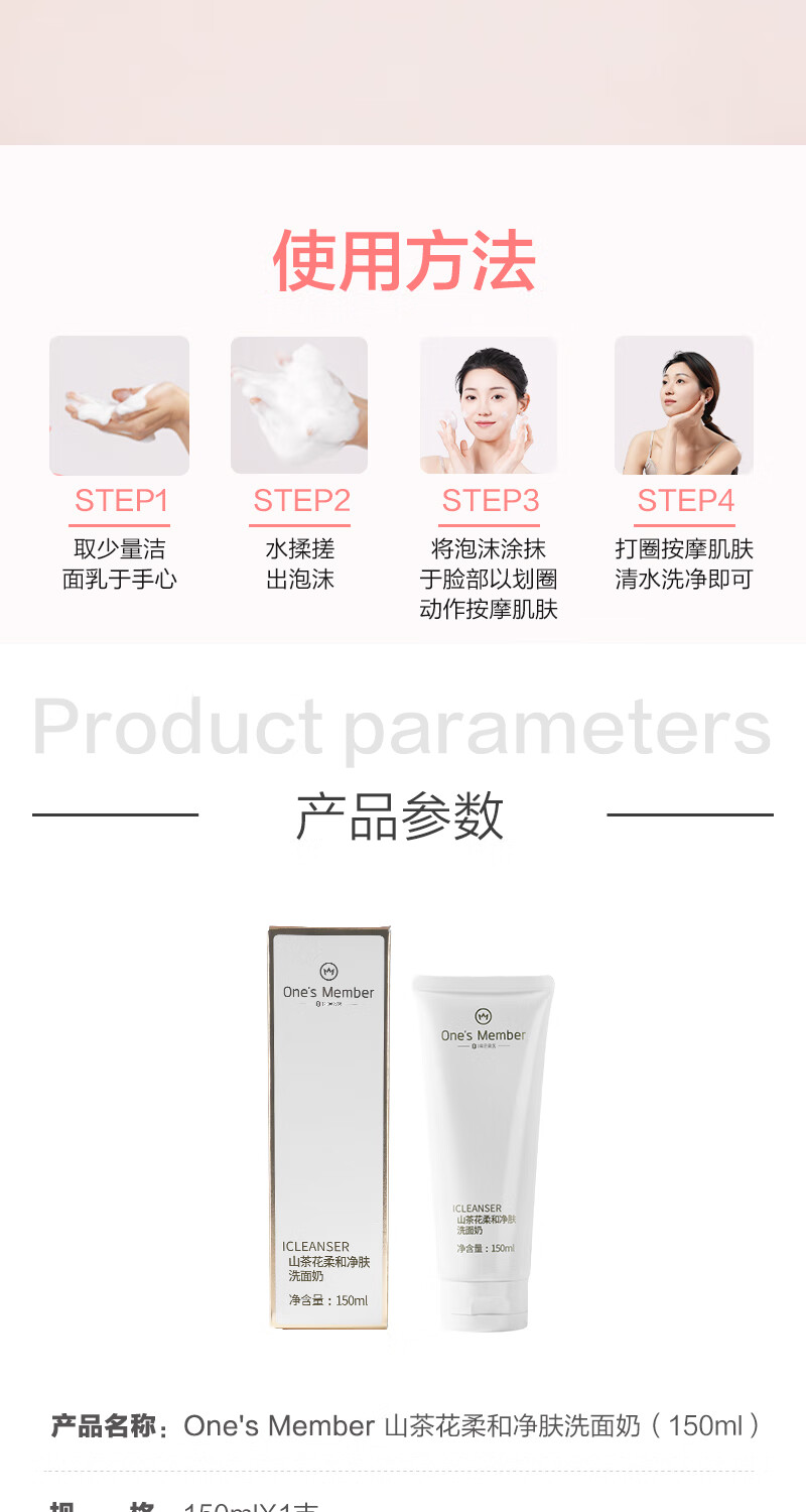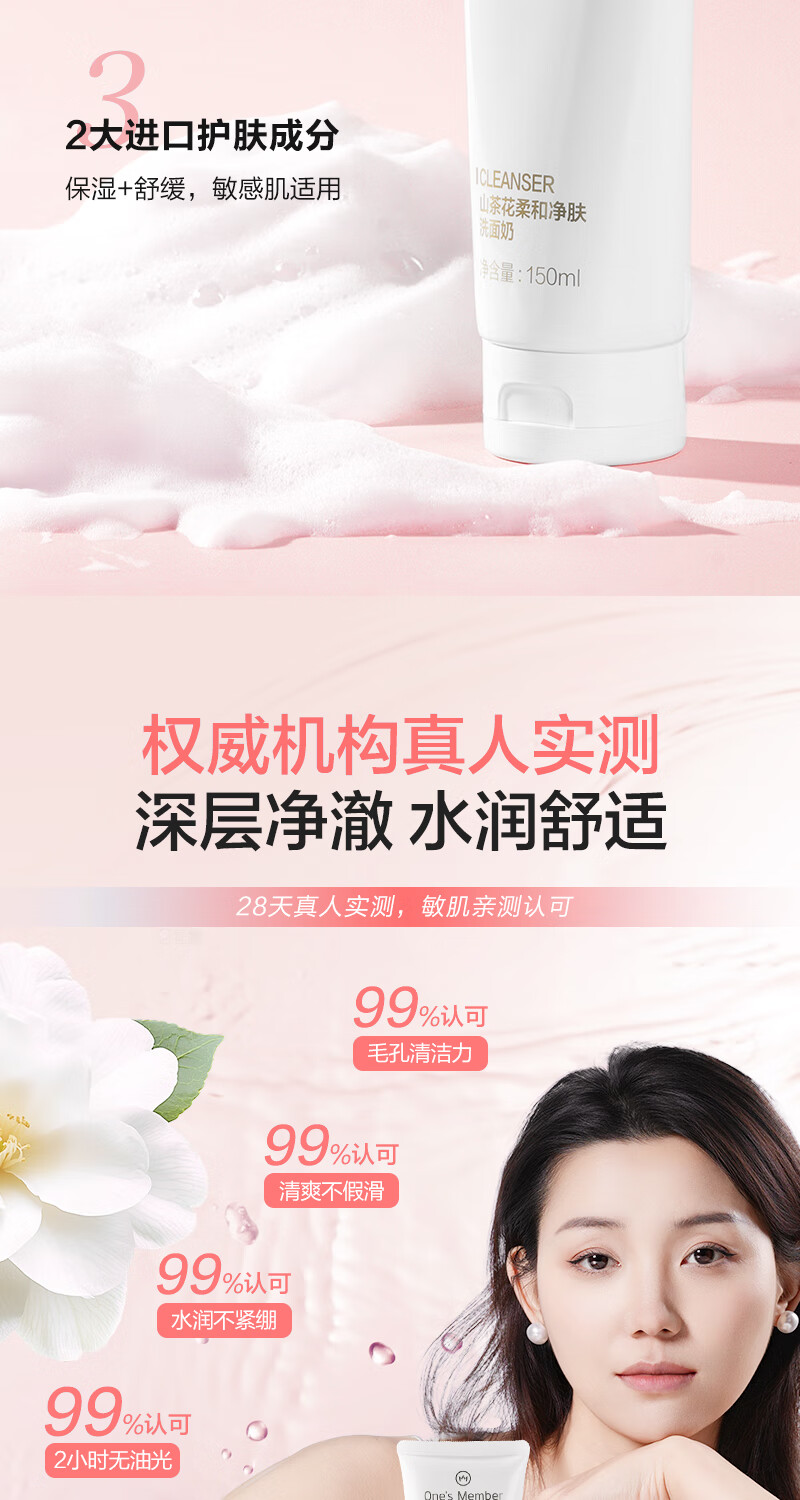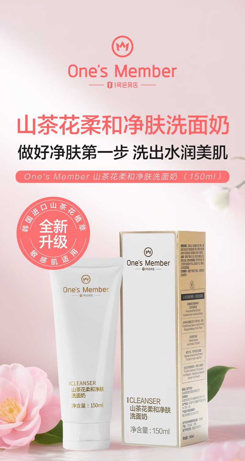 1号会员店(One's Member)京东自有品牌 山茶花柔和净肤洗面奶清洁洁面乳洁面去角质 150ml