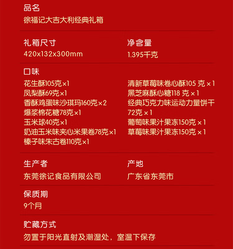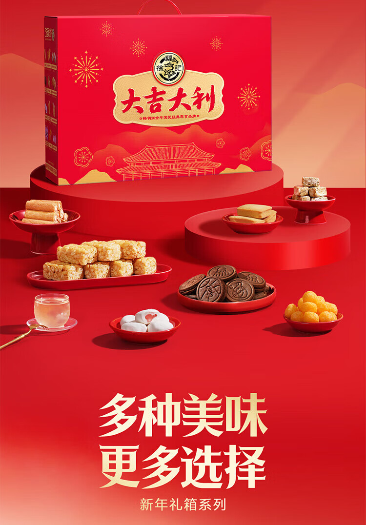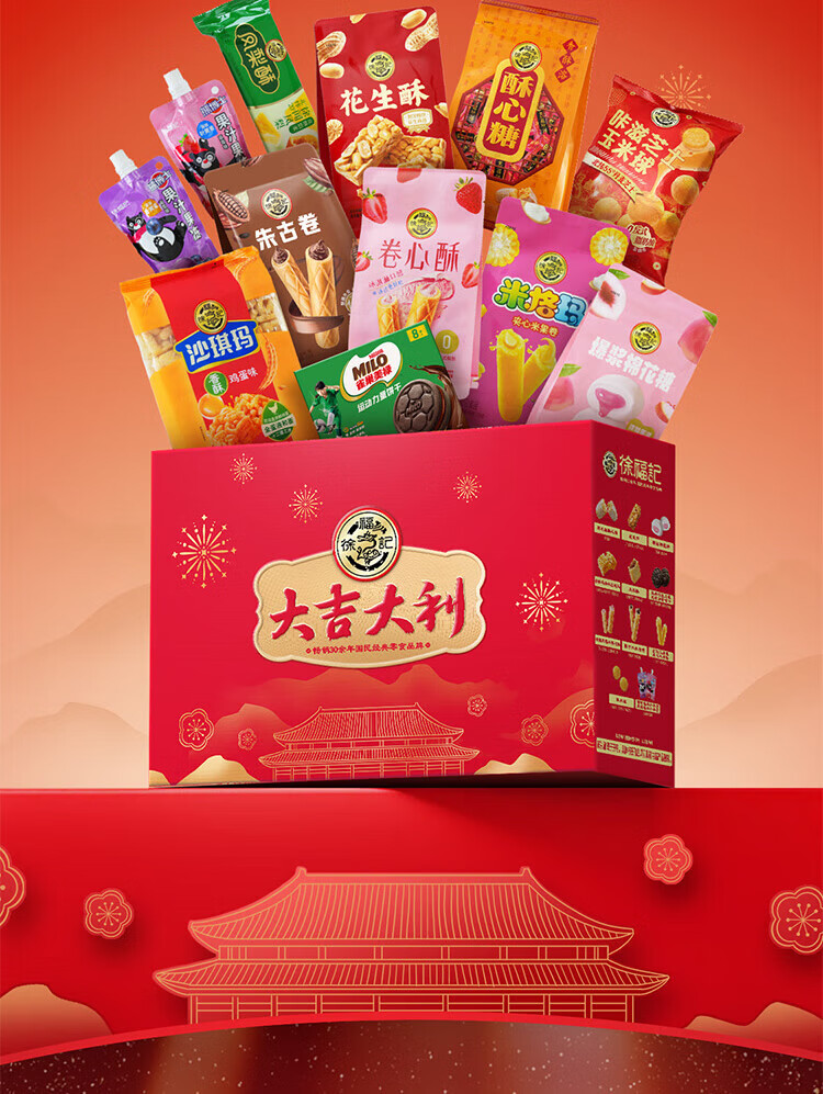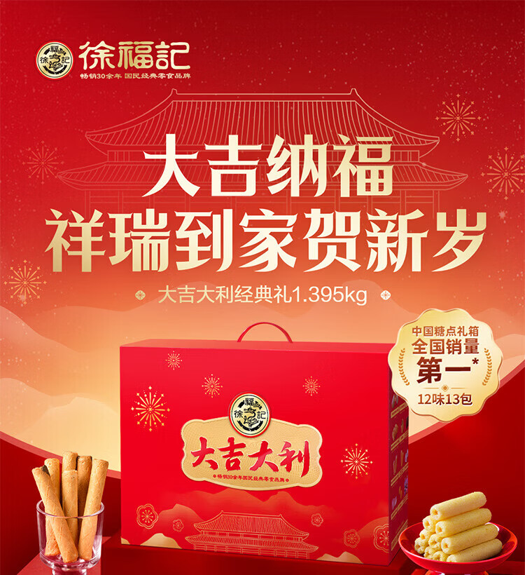 徐福记大吉大利经典礼盒1395g 糕点糖果零食大礼包精美礼盒