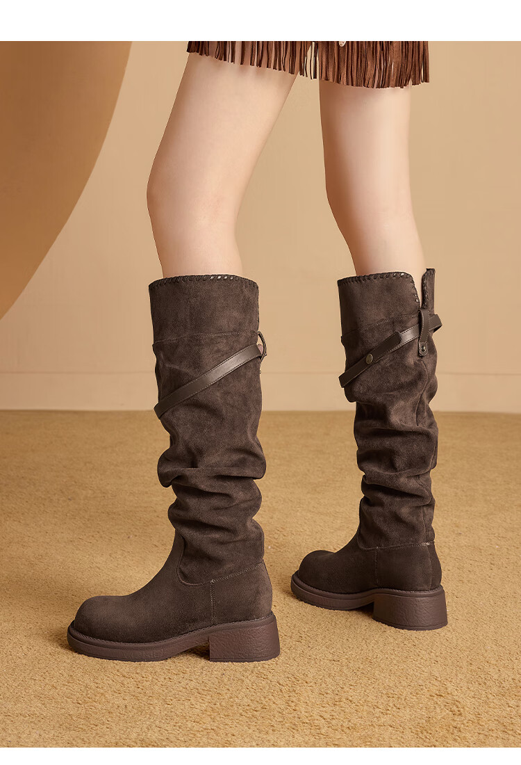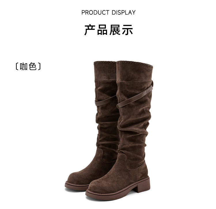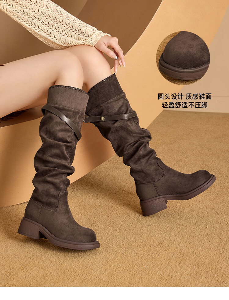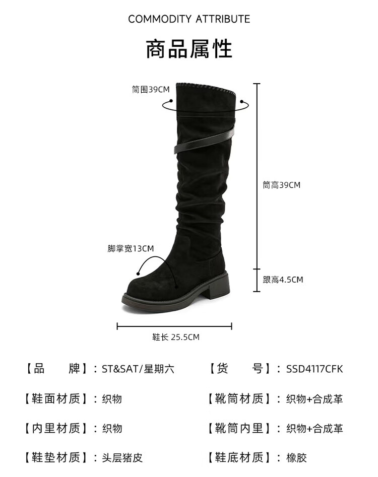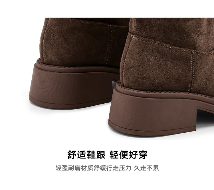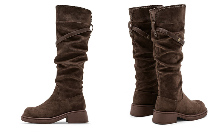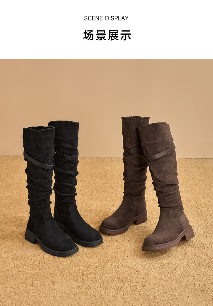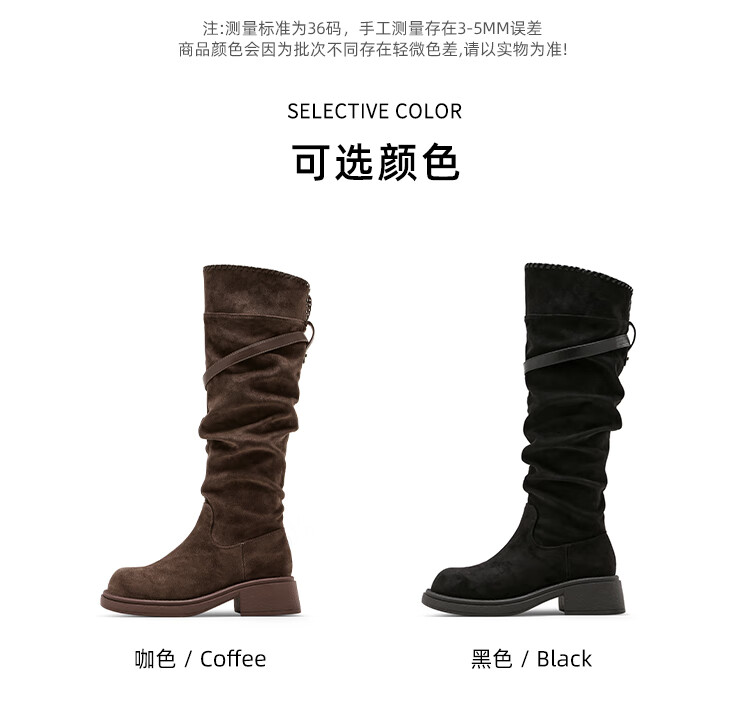 星期六长筒靴女2025新款秋冬美拉德牛仔堆堆靴厚底增高高筒骑士靴子女款 咖色 【厚底增高】 35