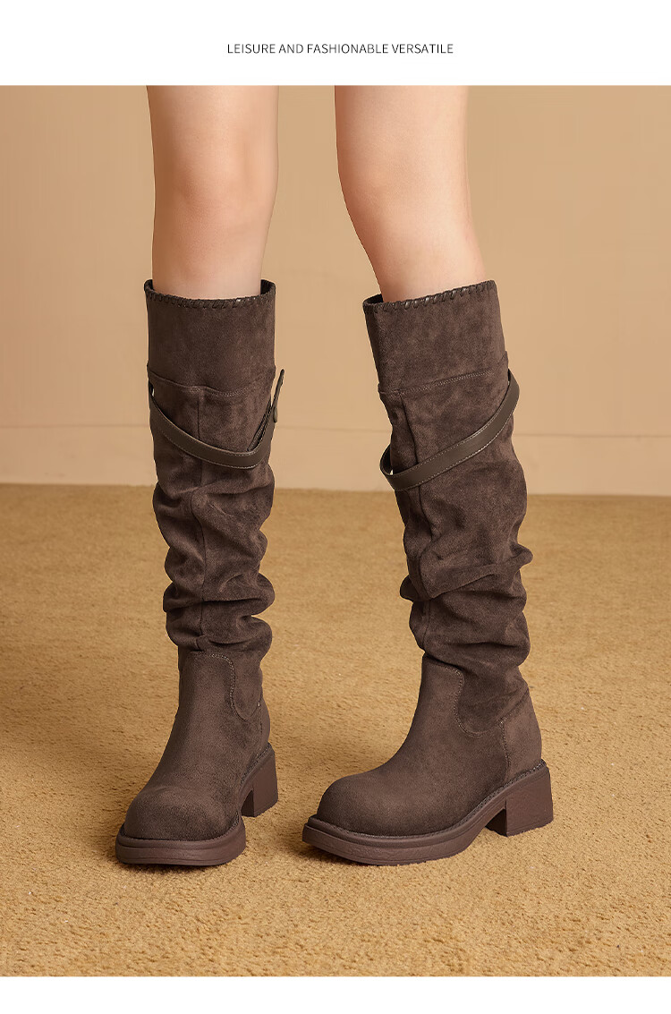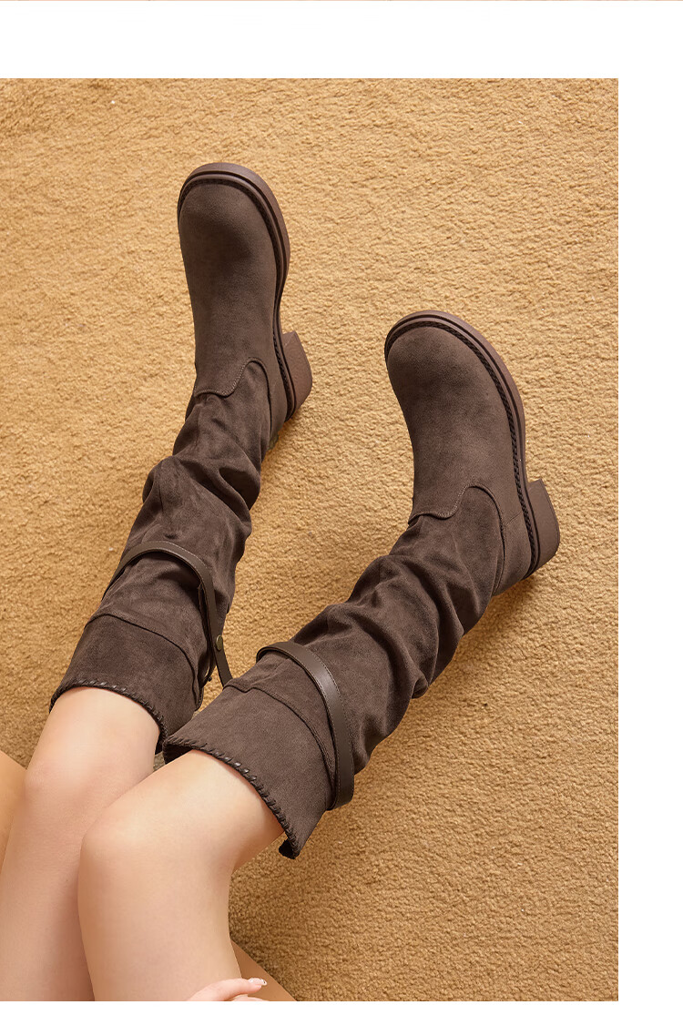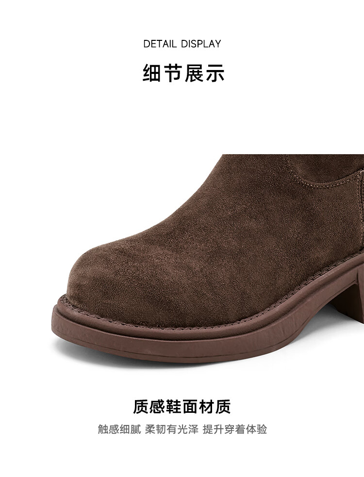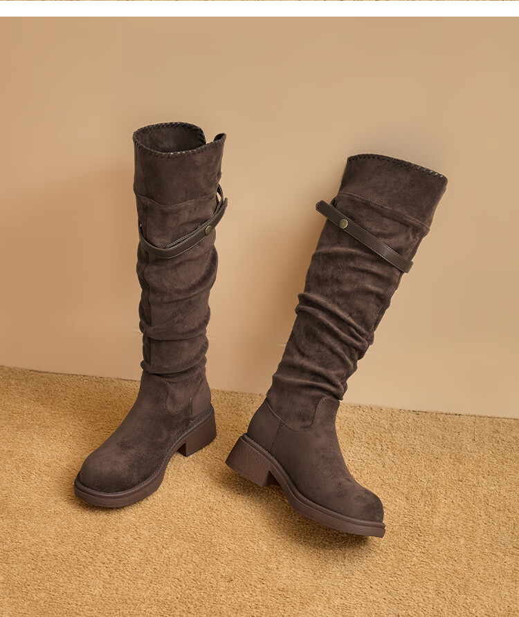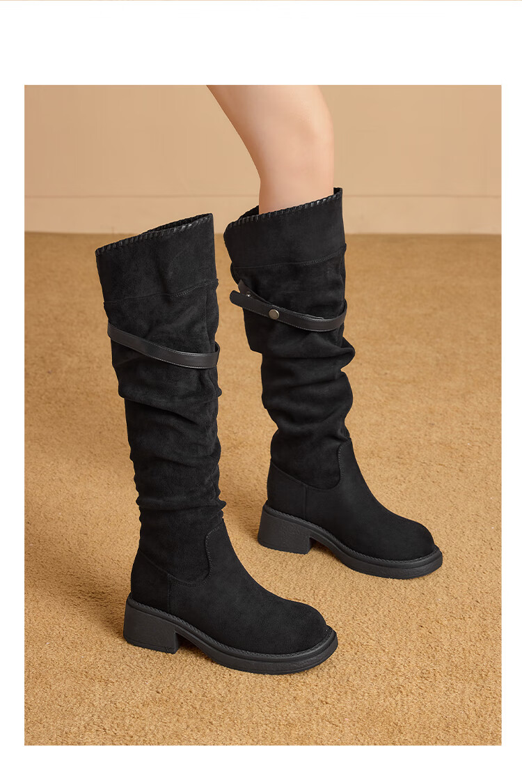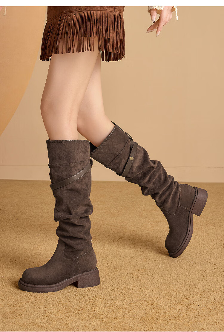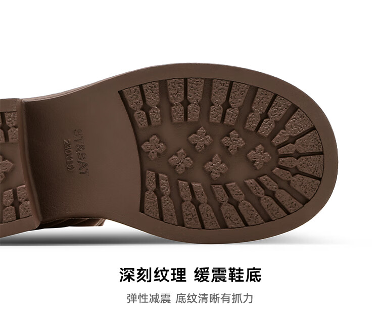 星期六长筒靴女2025新款秋冬美拉德牛仔堆堆靴厚底增高高筒骑士靴子女款 咖色 【厚底增高】 35