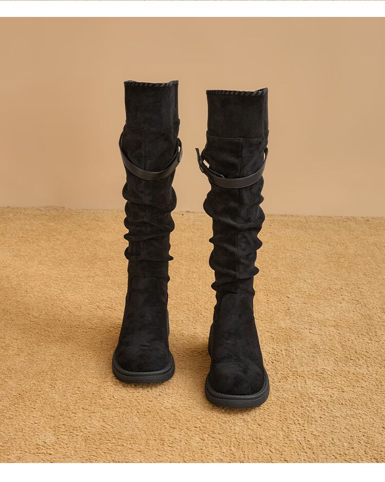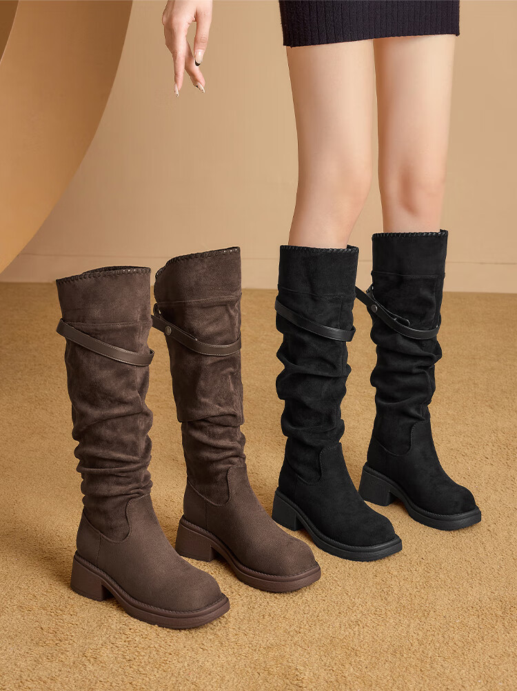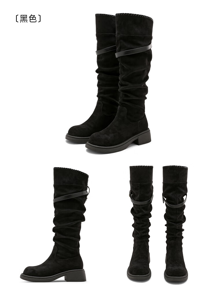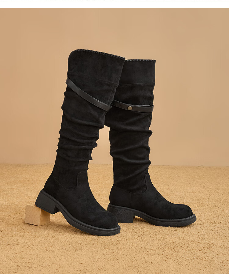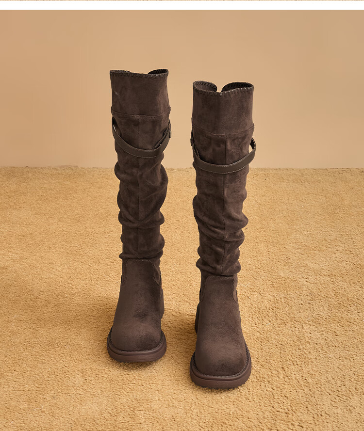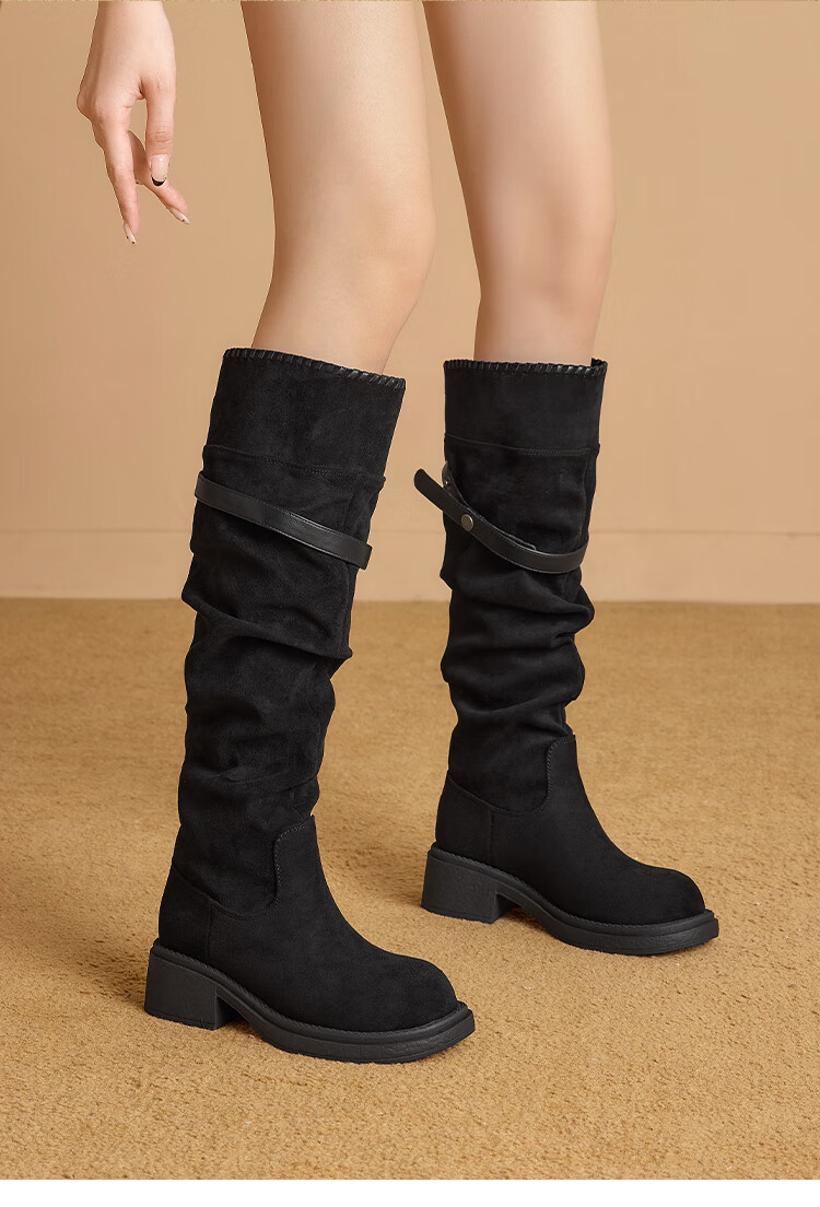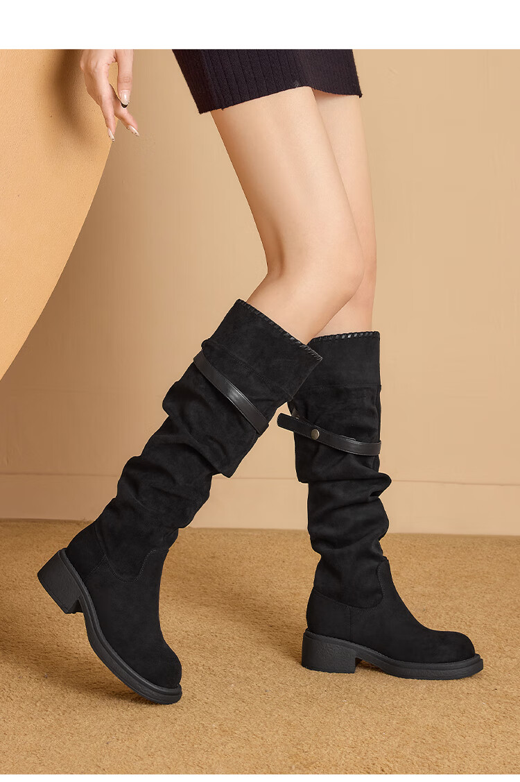 星期六长筒靴女2025新款秋冬美拉德牛仔堆堆靴厚底增高高筒骑士靴子女款 咖色 【厚底增高】 35
