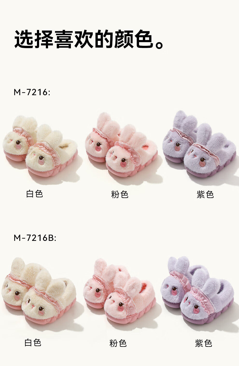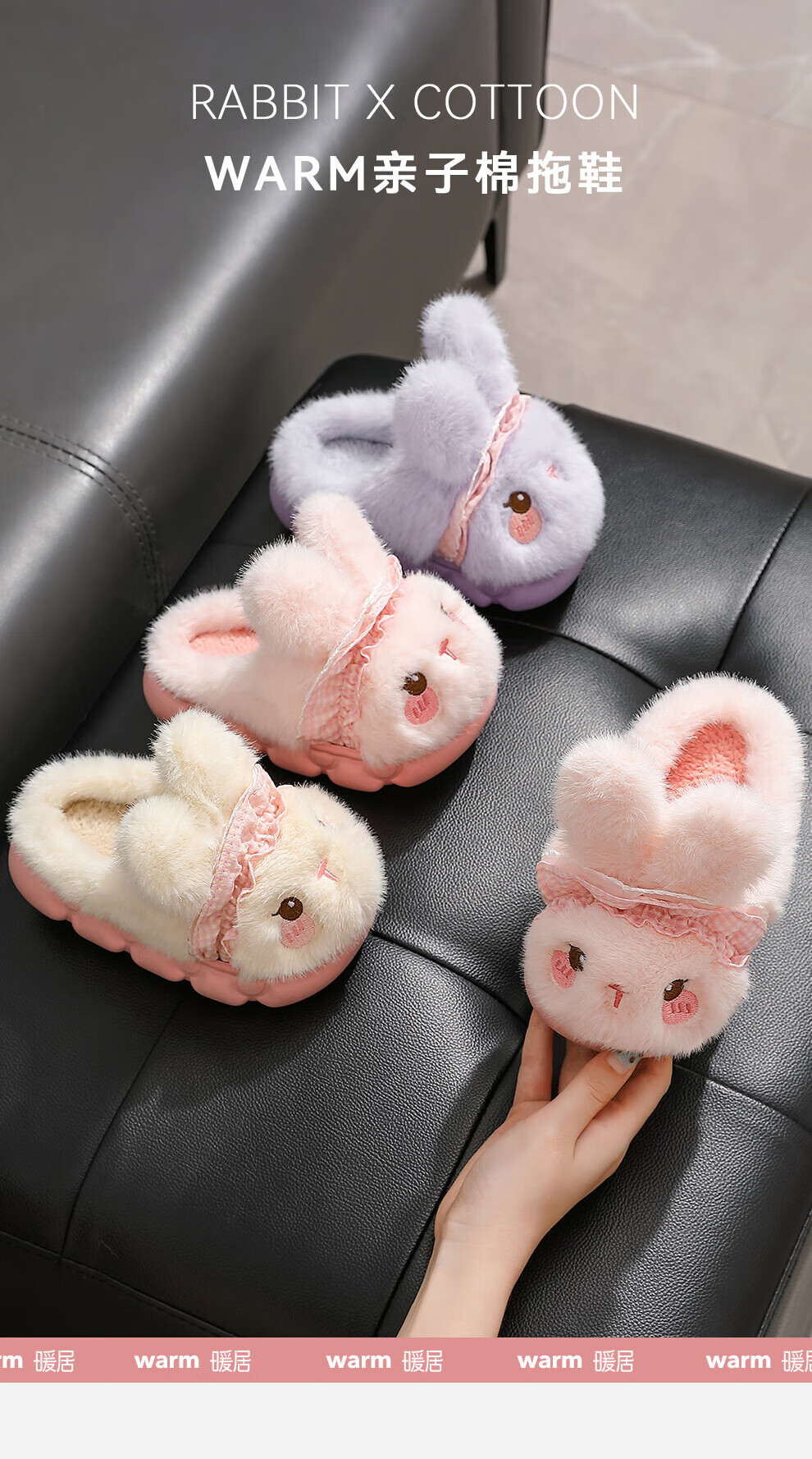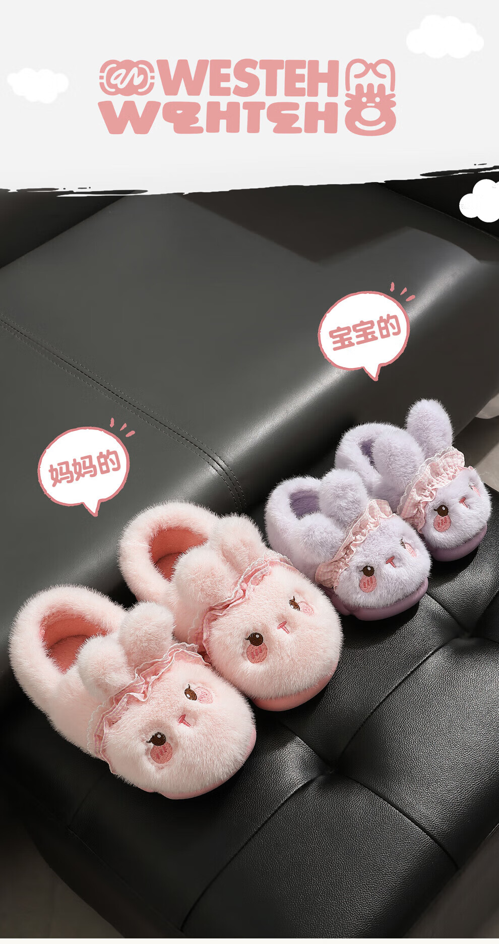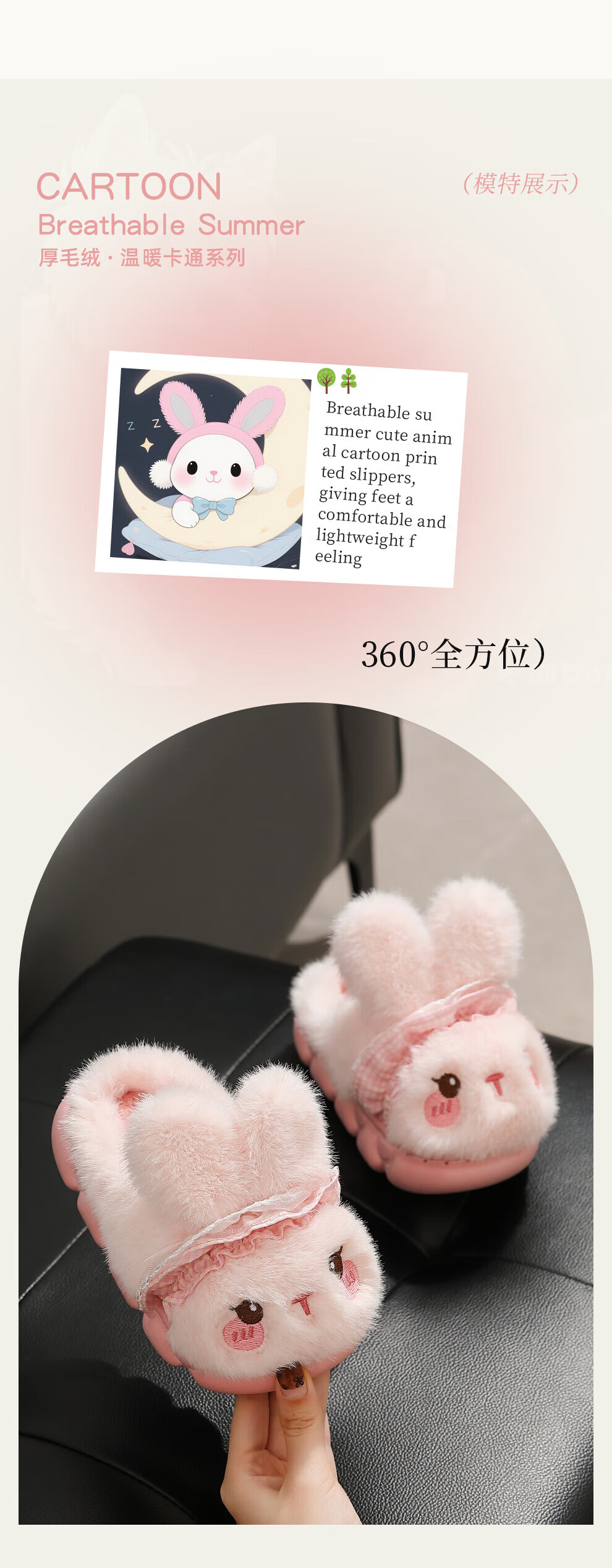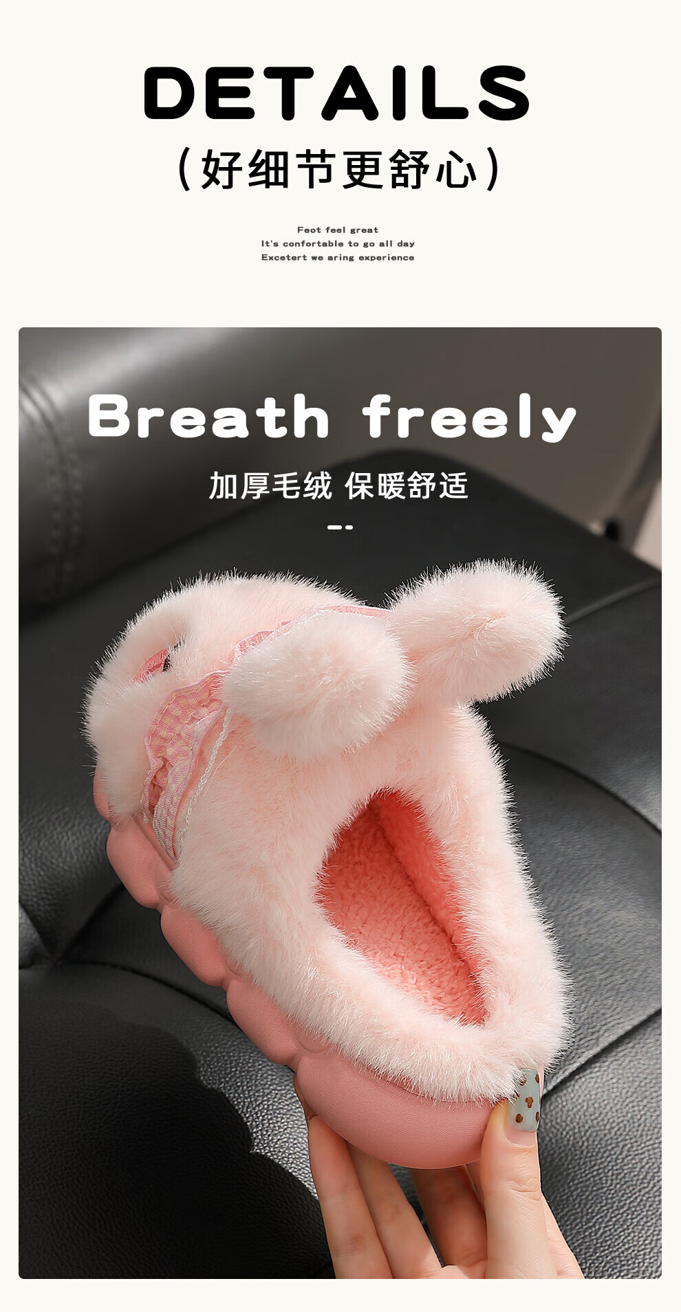 FZT卡通兔子棉拖鞋女2025冬季新款保暖防滑厚底室内居家毛绒棉拖鞋 粉色 36-37 标准码【内长225mm】