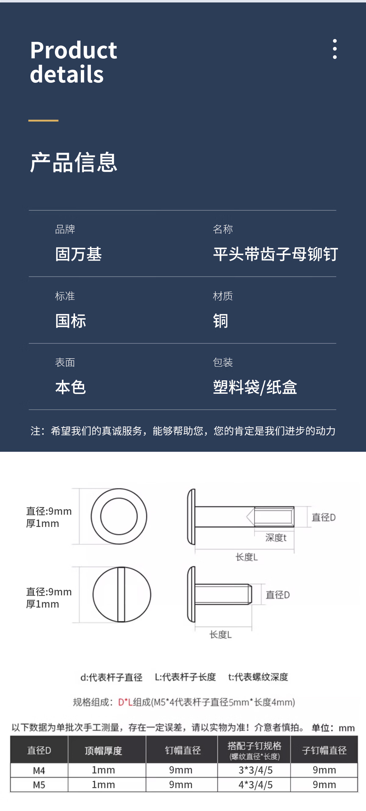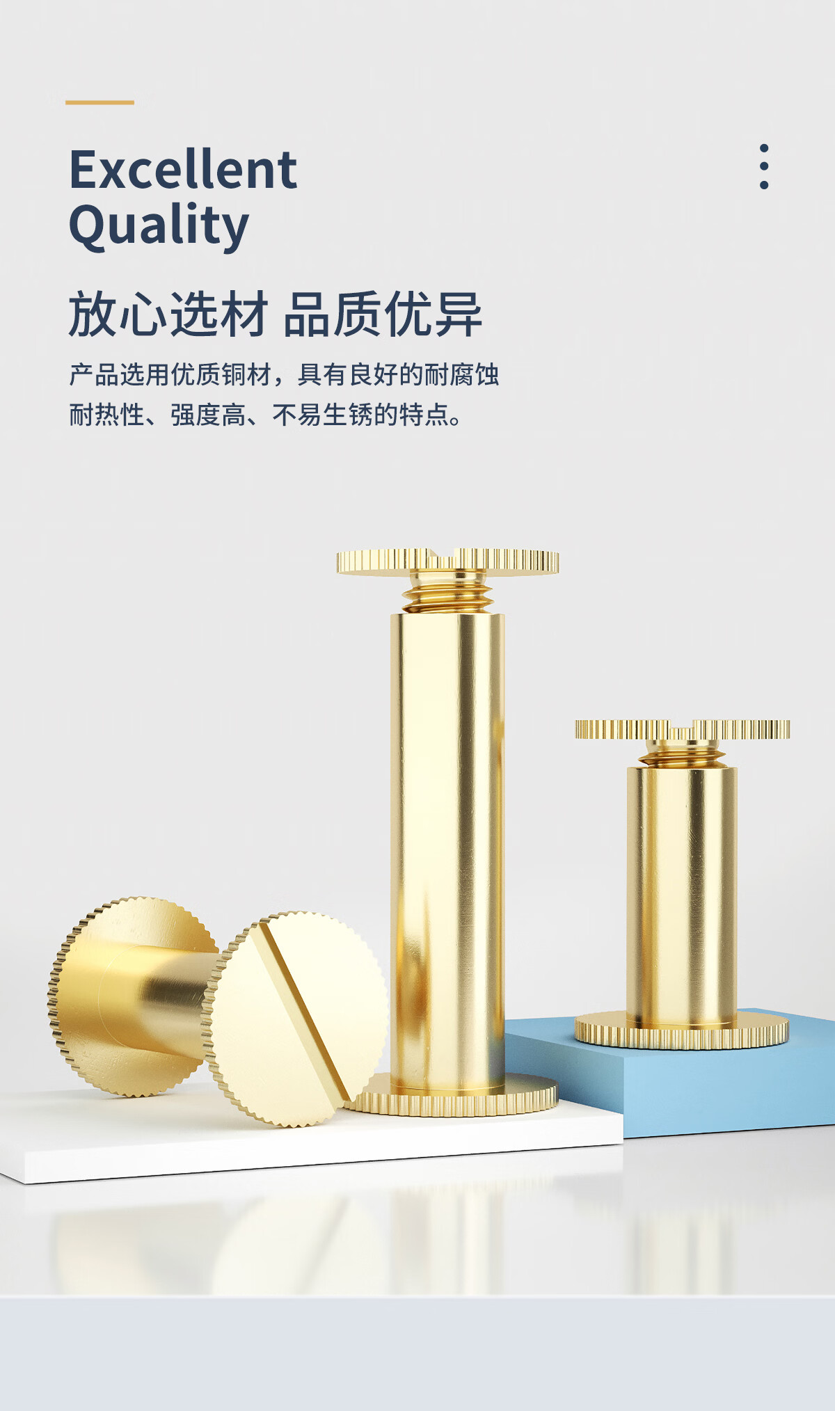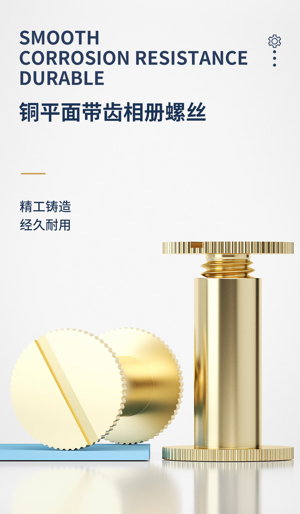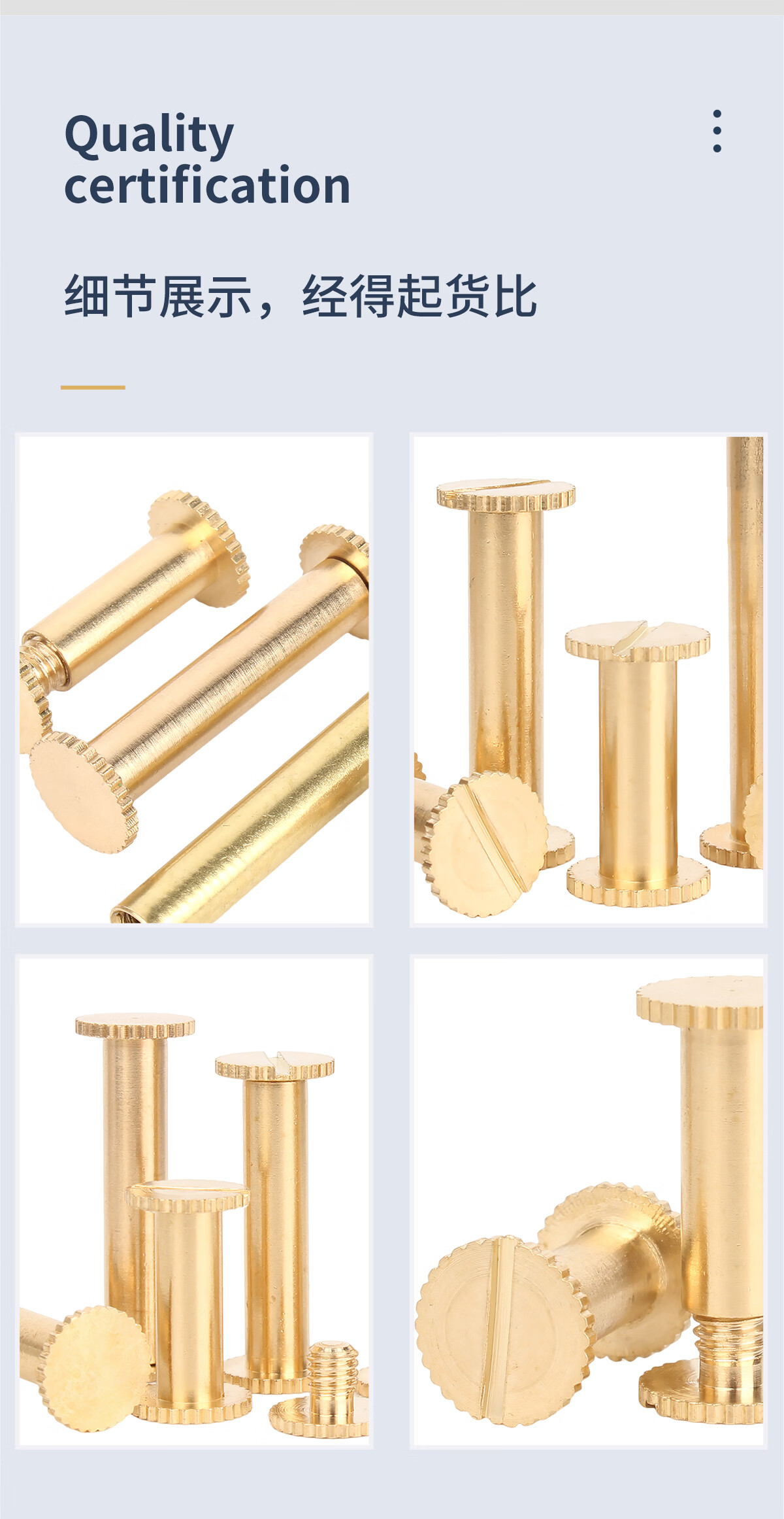 固万基(GUWANJI)黄铜一字平头子母铆钉带齿对锁菜谱相册账本钉螺丝对接螺钉 Φ4x3[20套]