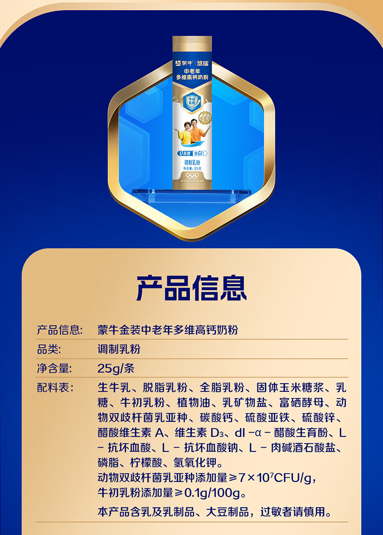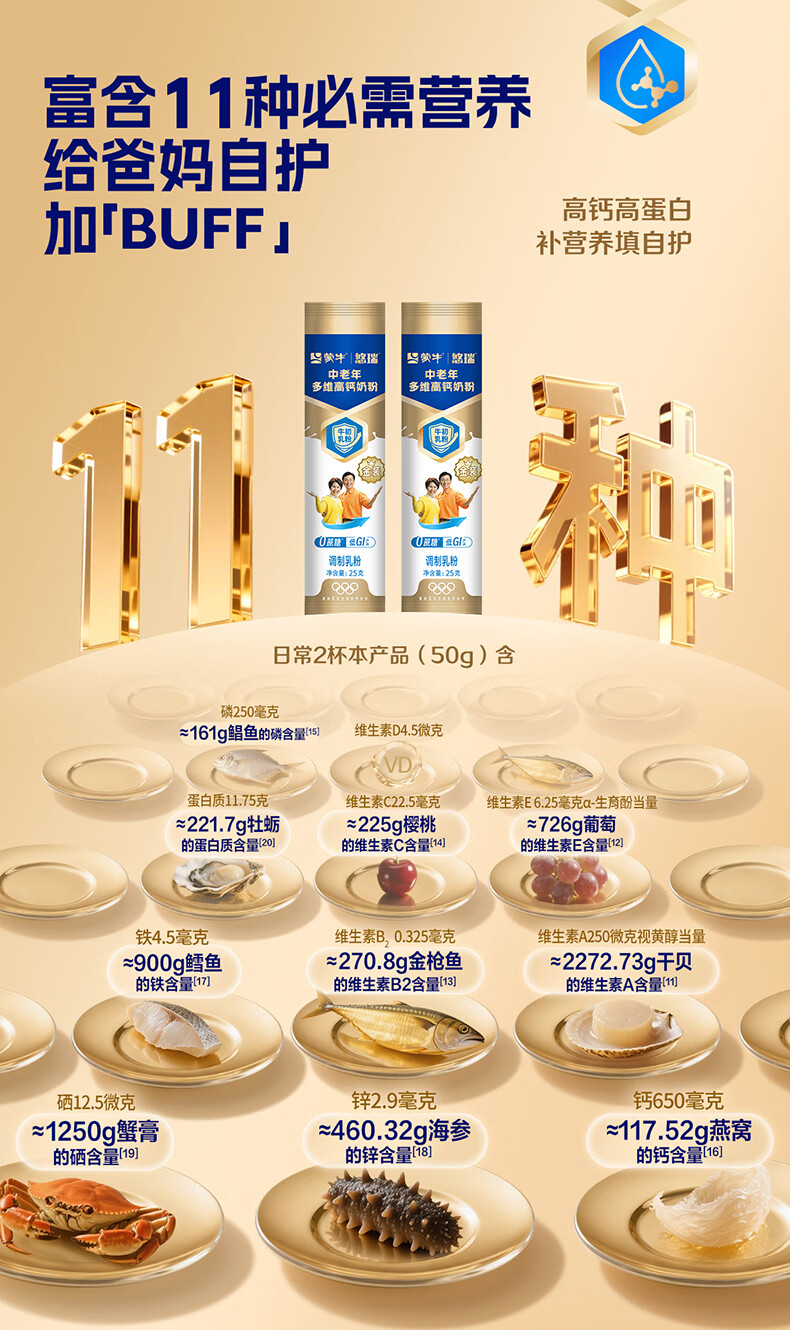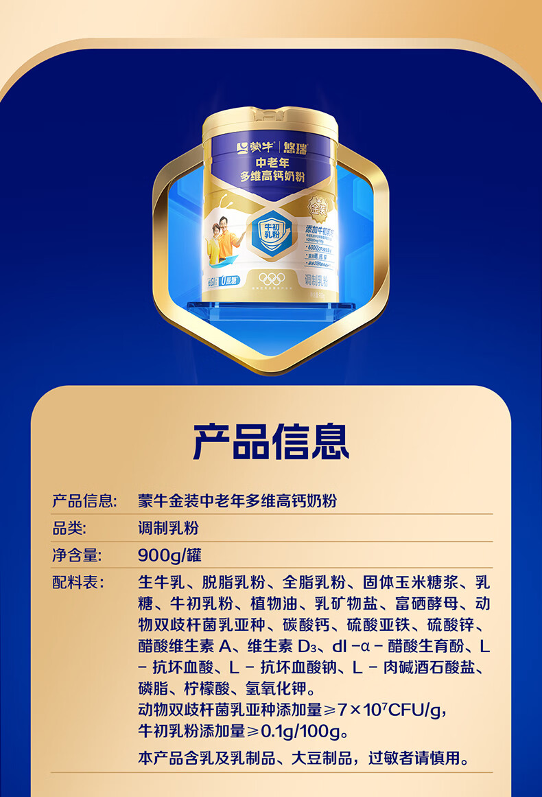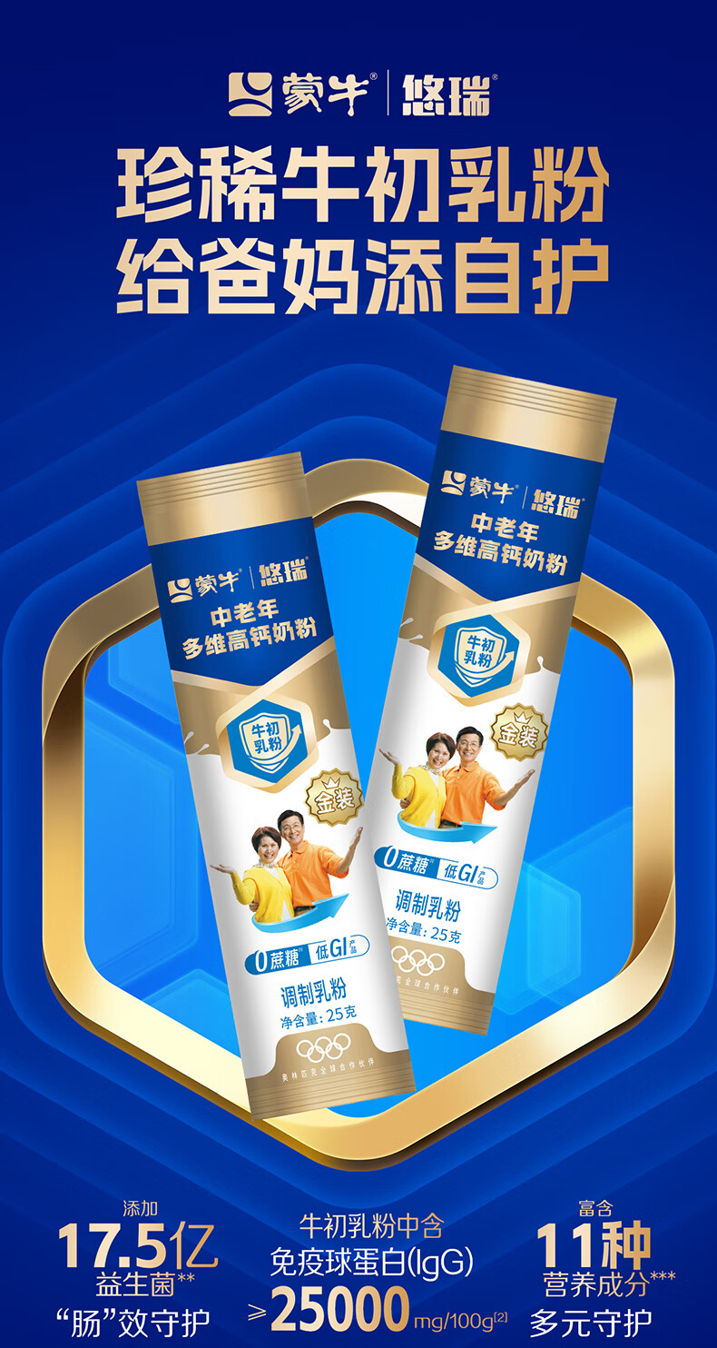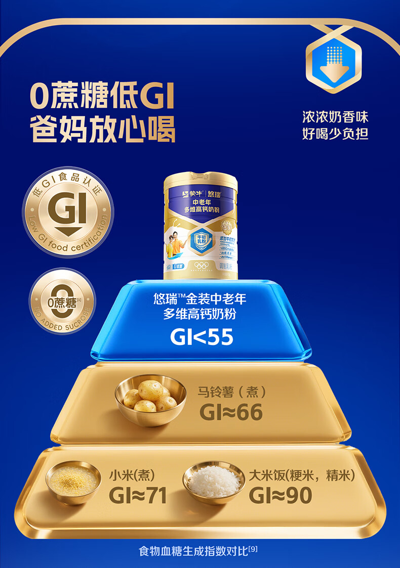 蒙牛悠瑞金装中老年多维高钙奶粉过节礼品年货节送礼送长辈杨紫代言 900g*2罐【赠小条装*2+礼袋+杯子】