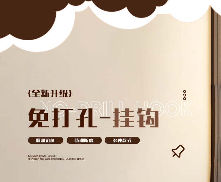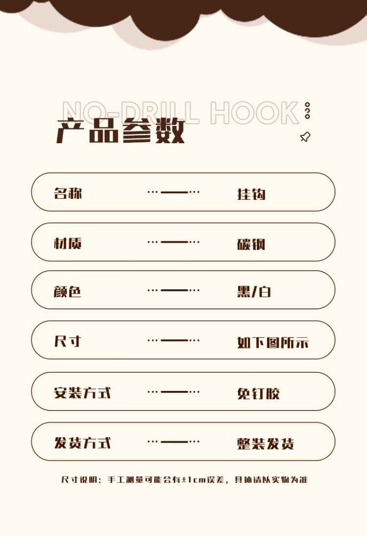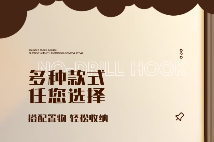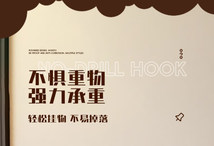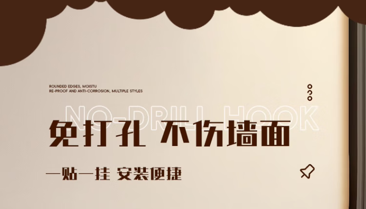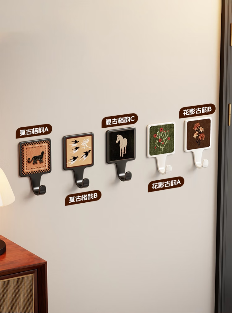 尔思家挂钩超强粘力挂衣服墙上免打孔浴室门口门后无痕卫生间放衣服神器 复古格韵A 黑色一个装