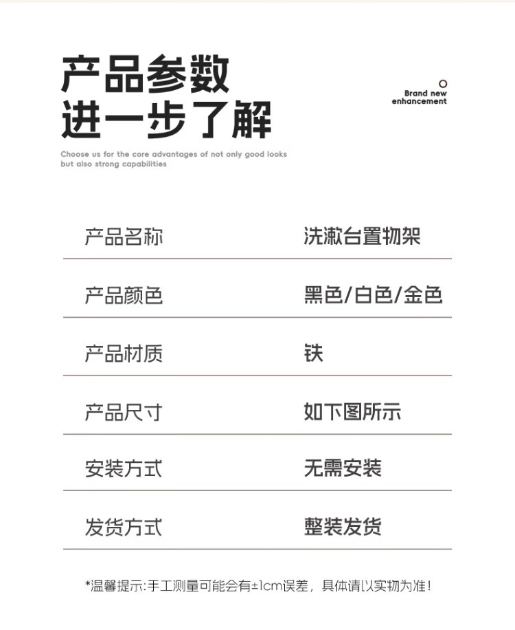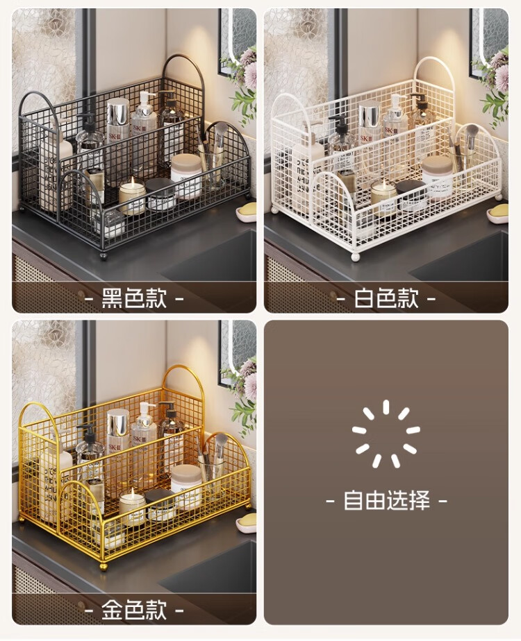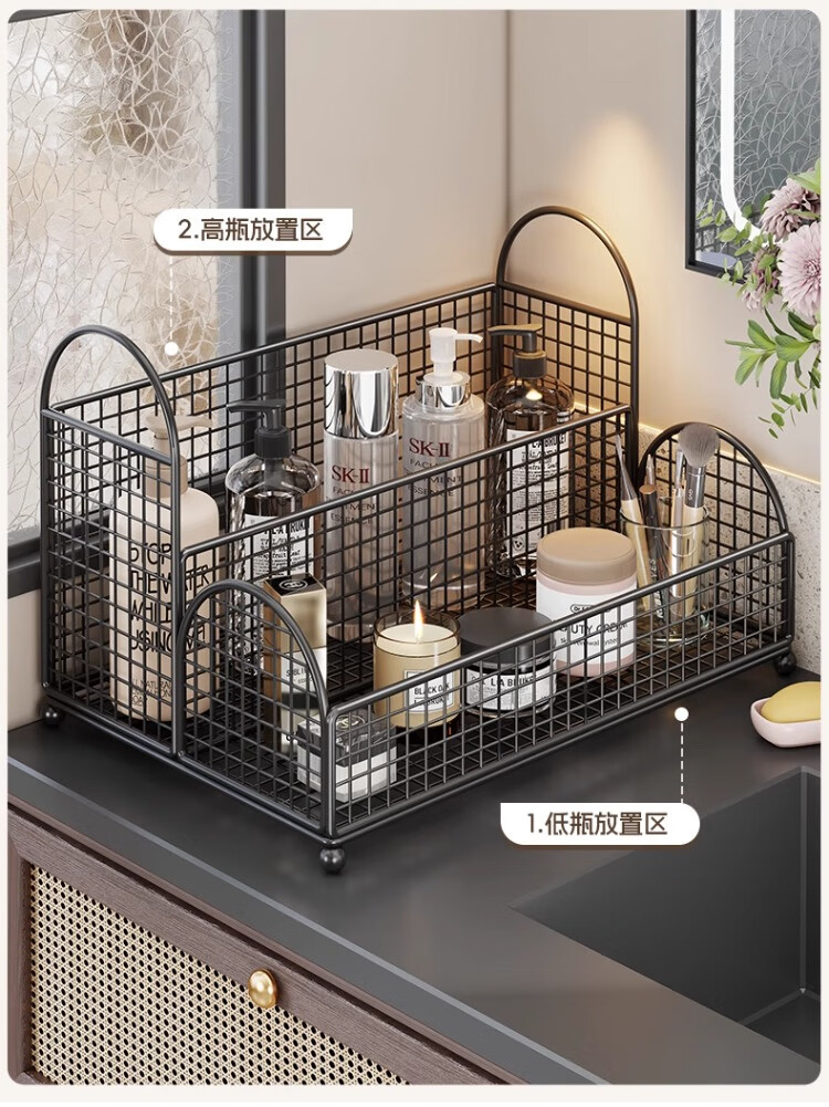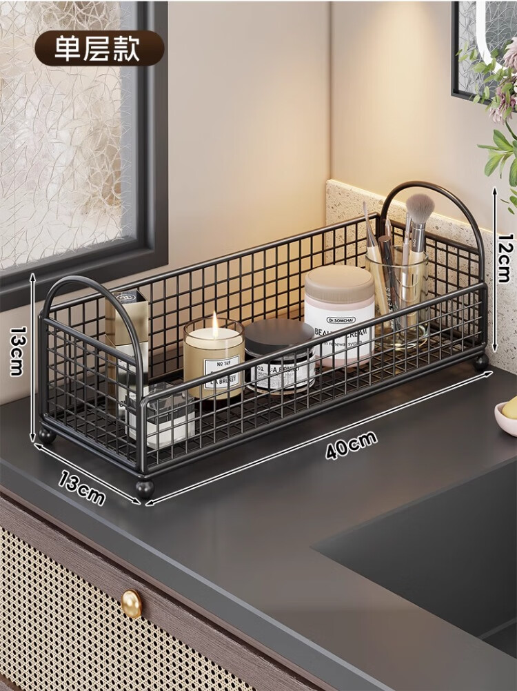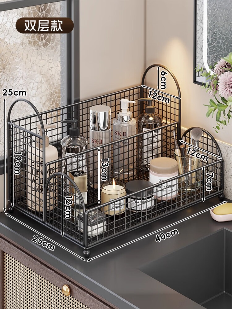 尔思家卫生间置物架洗手台化妆品收纳盒桌面双层大容量洗漱用品整理神器 白色-双层