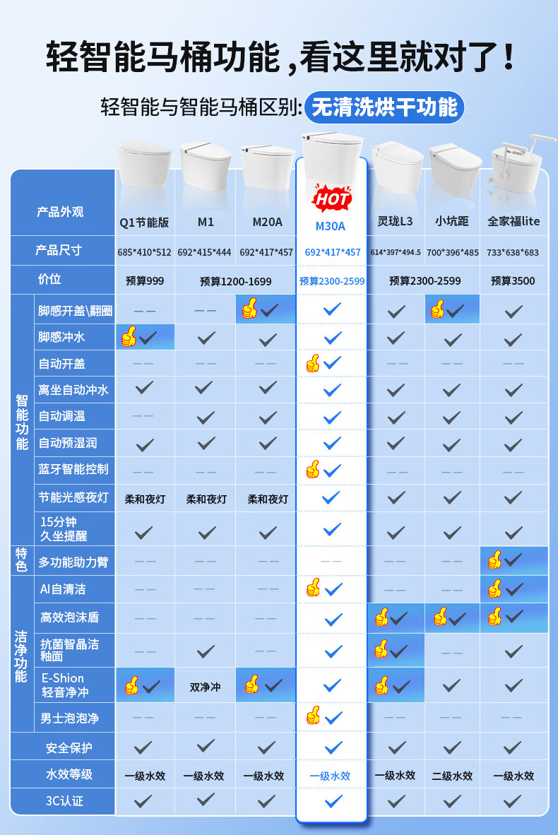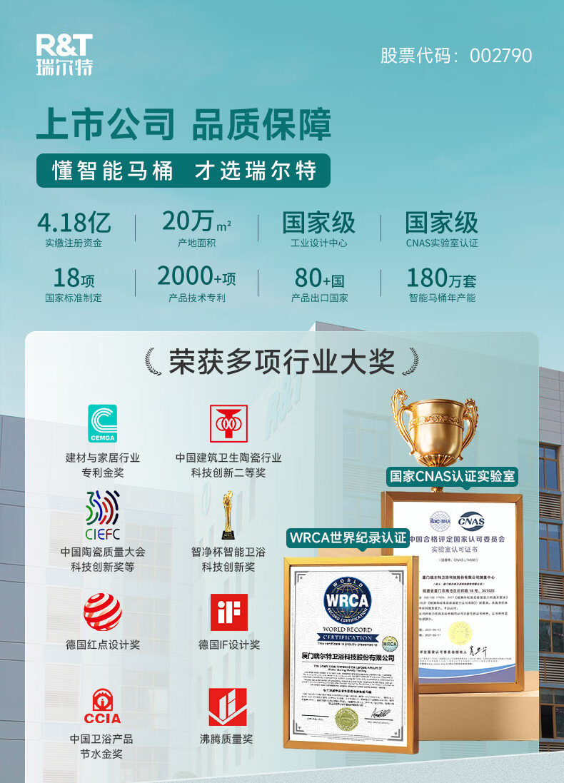 瑞尔特(R&T)轻智能马桶Q1系列脚感冲水预湿润座圈加热离坐自动冲马桶坐便器 Q1节能版 400mm