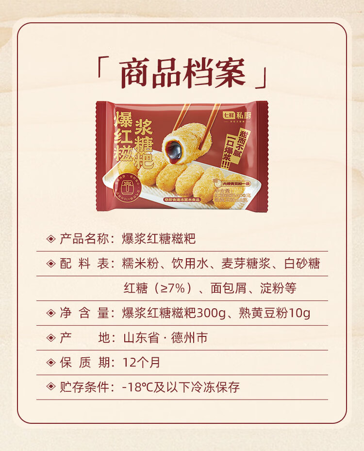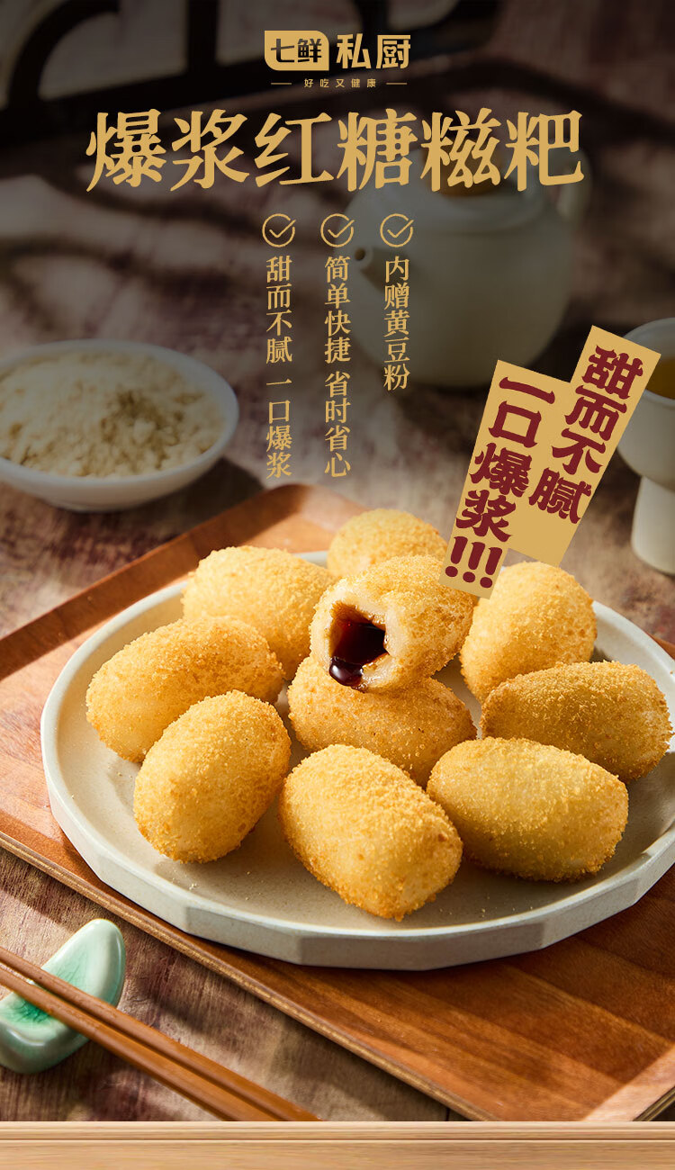 七鲜私厨爆浆红糖糍粑310g(内赠黄豆粉) 火锅食材早餐空气炸锅半成品年糕