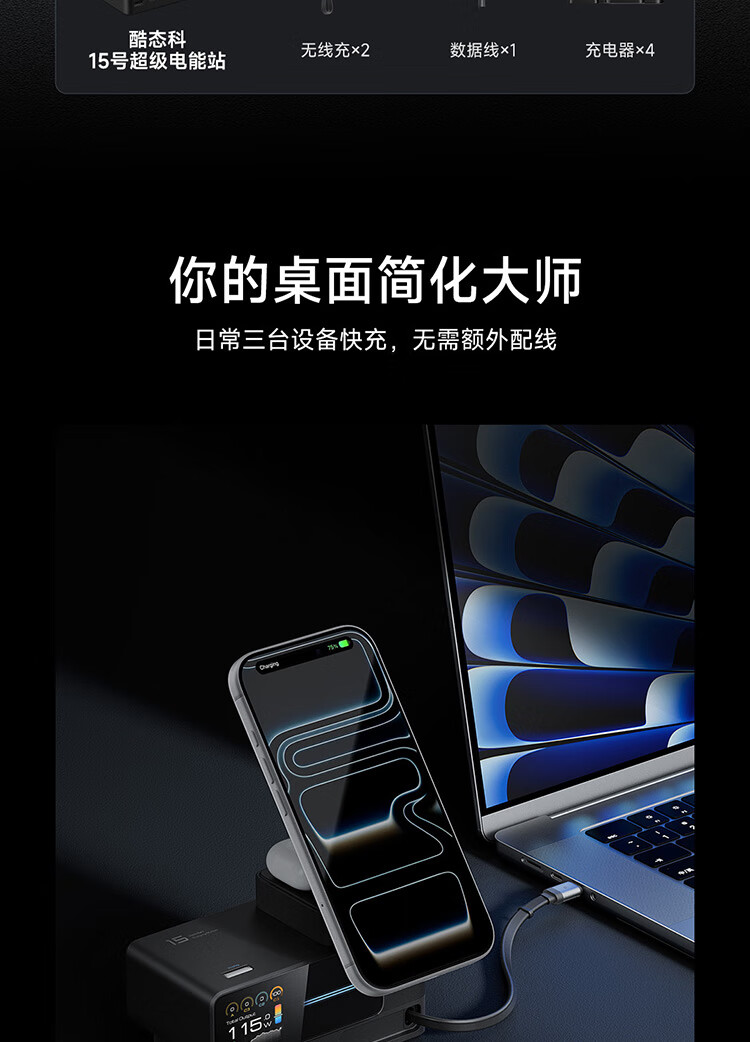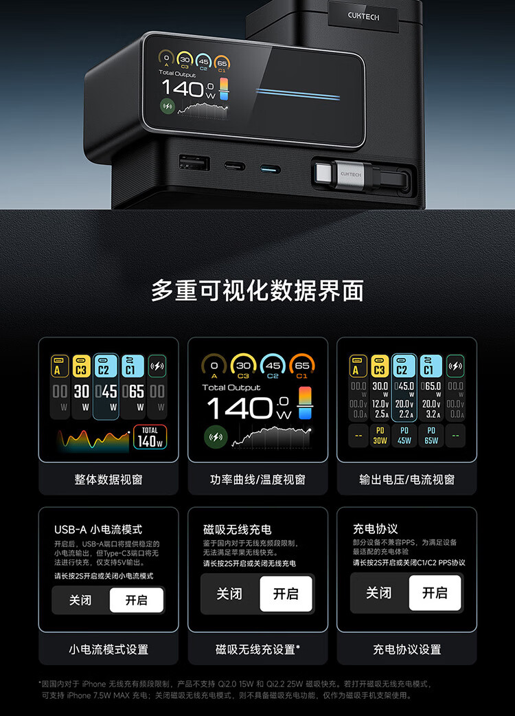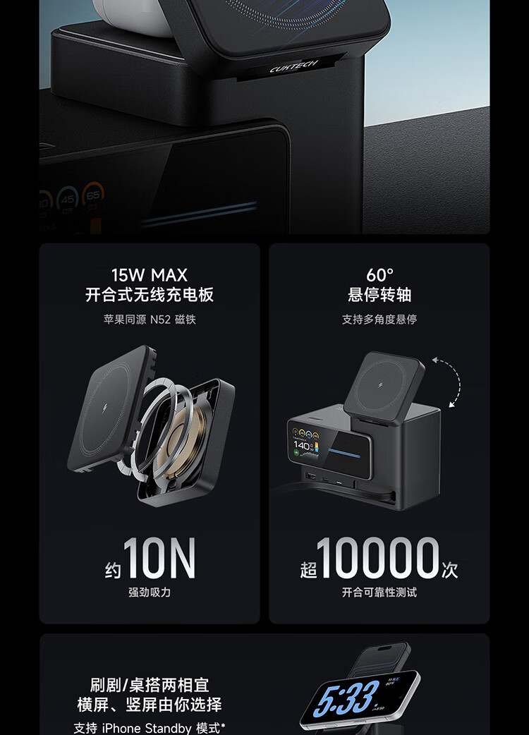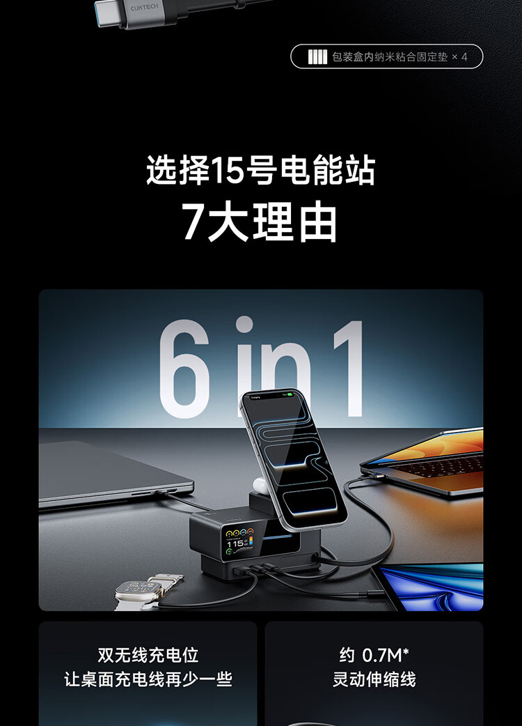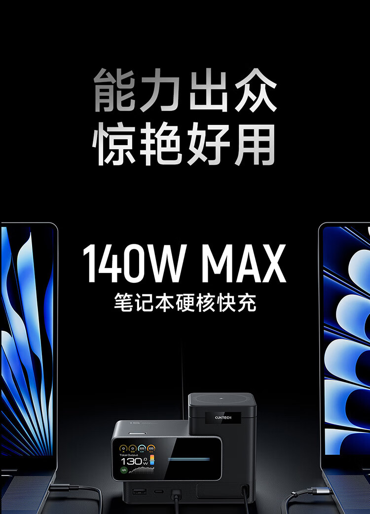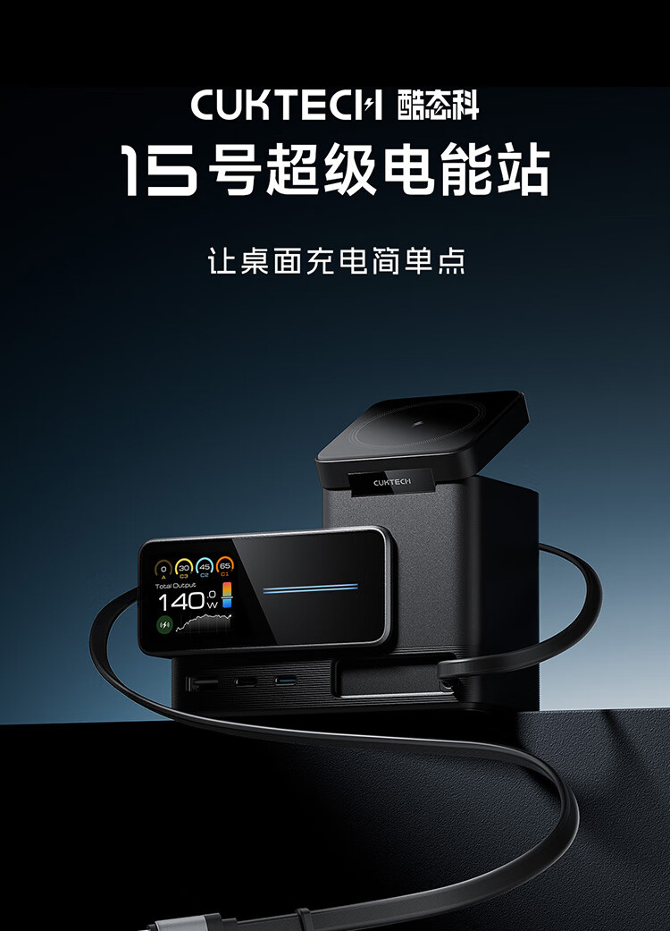 CUKTECH酷态科15号超级电能站6合1桌面充电站140W带伸缩线兼容MagSafe磁吸充电器适用苹果小米手机笔记本