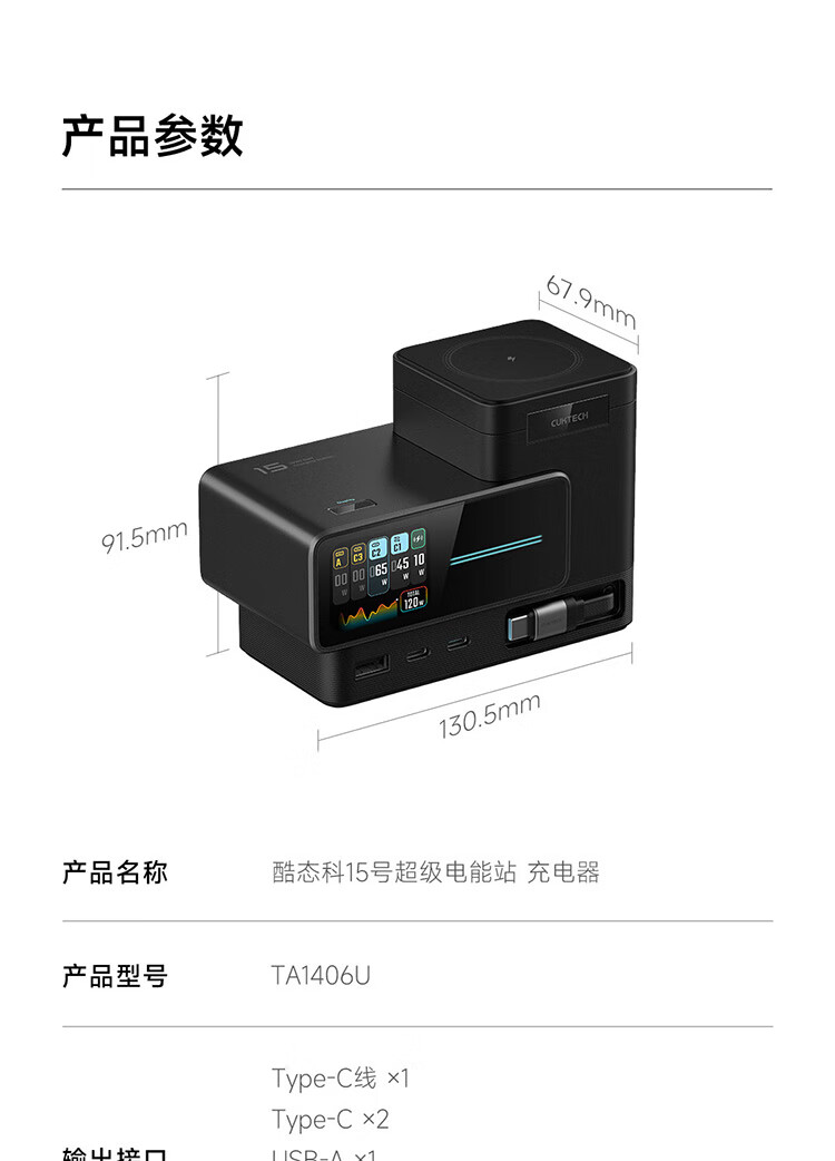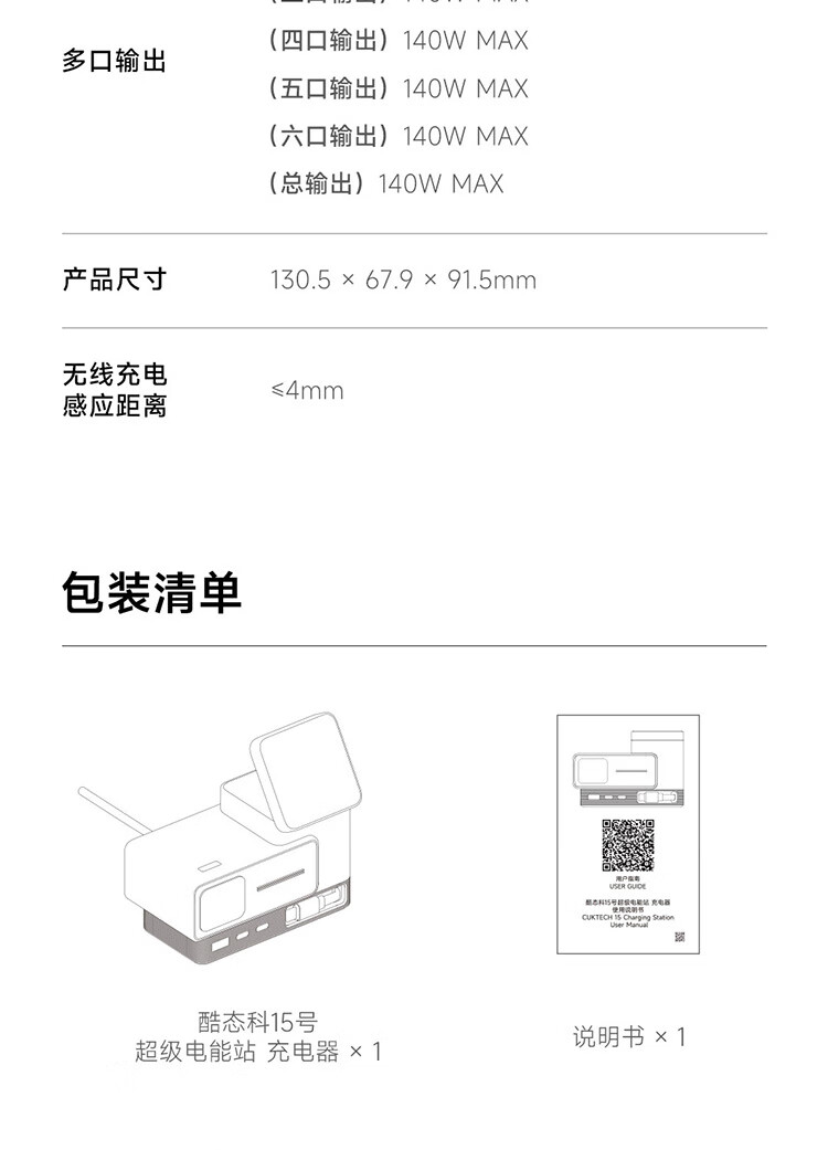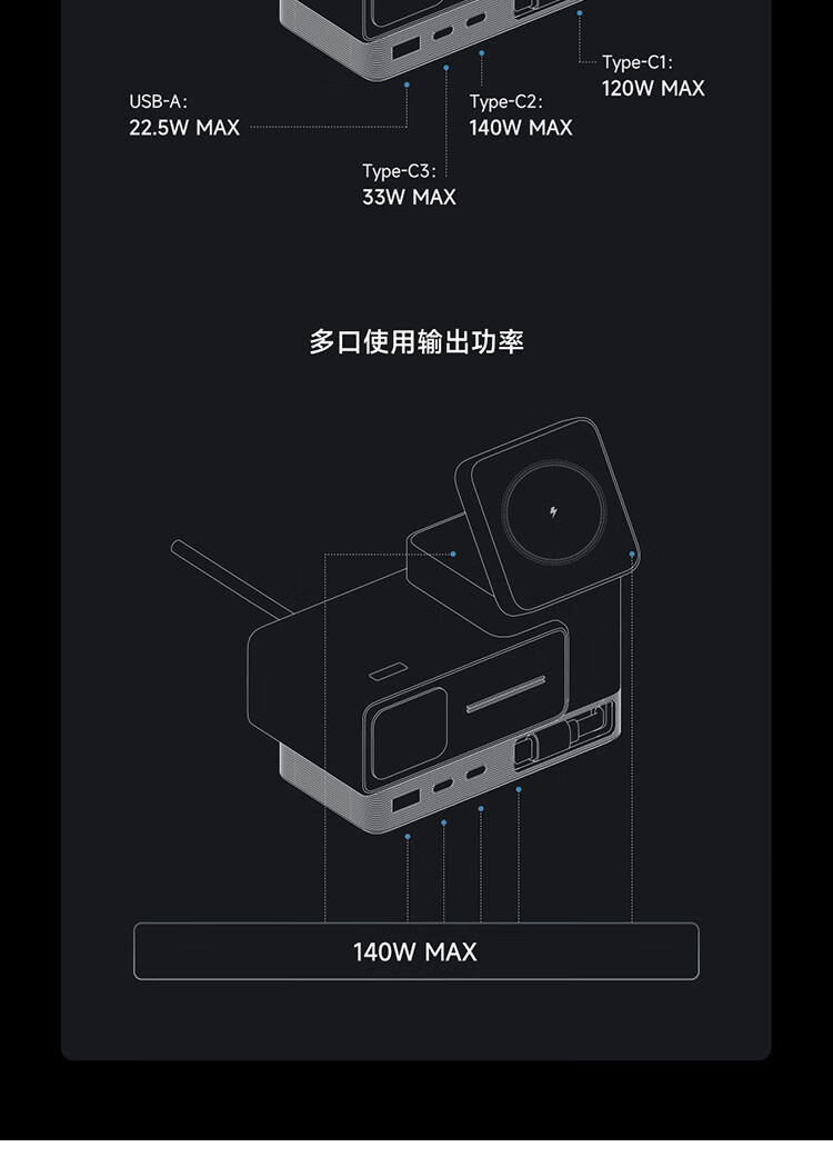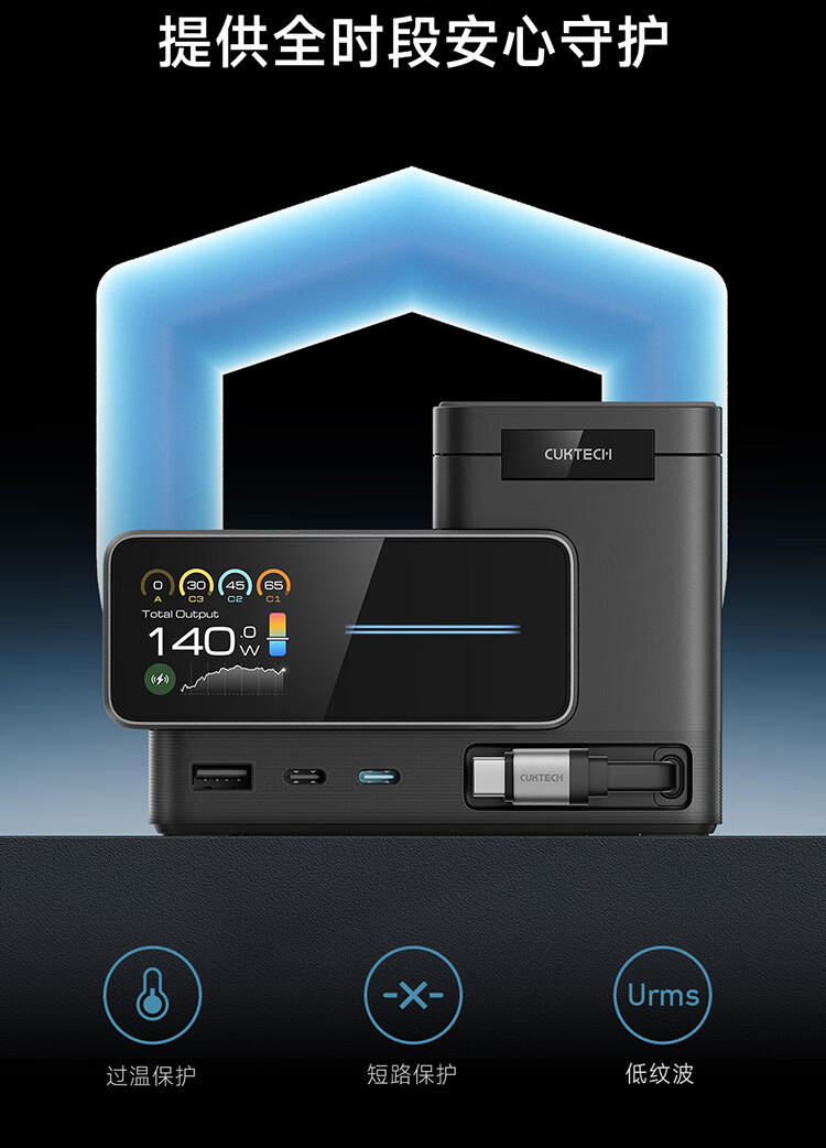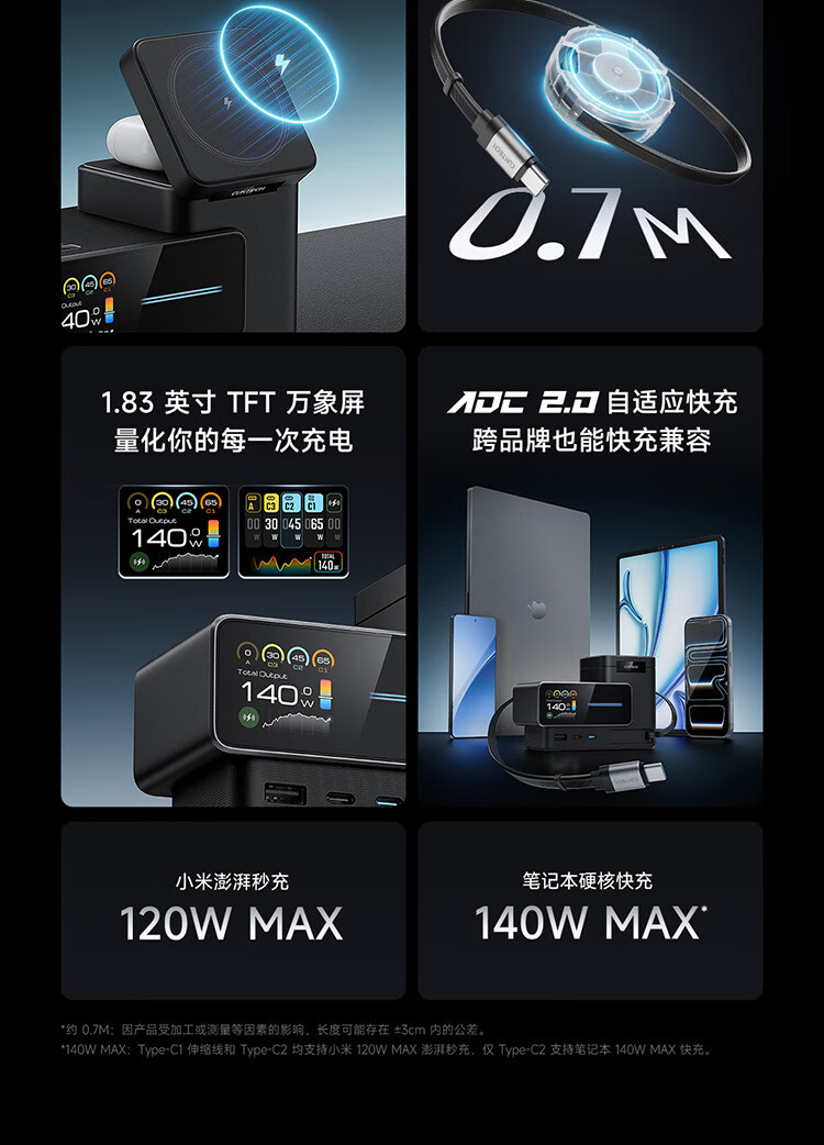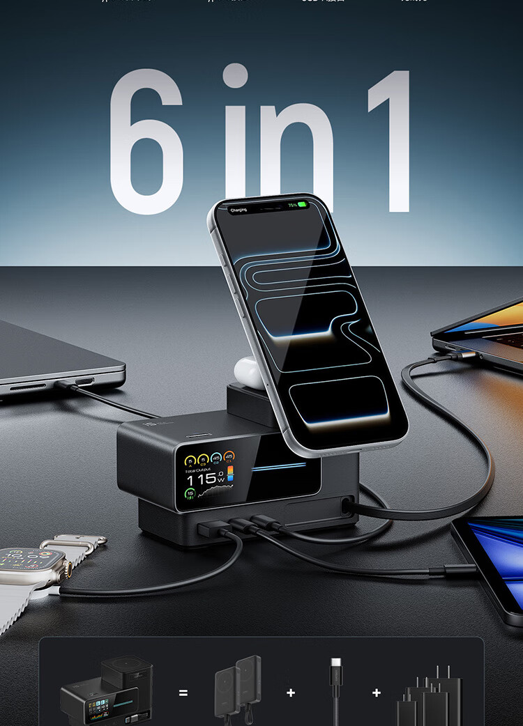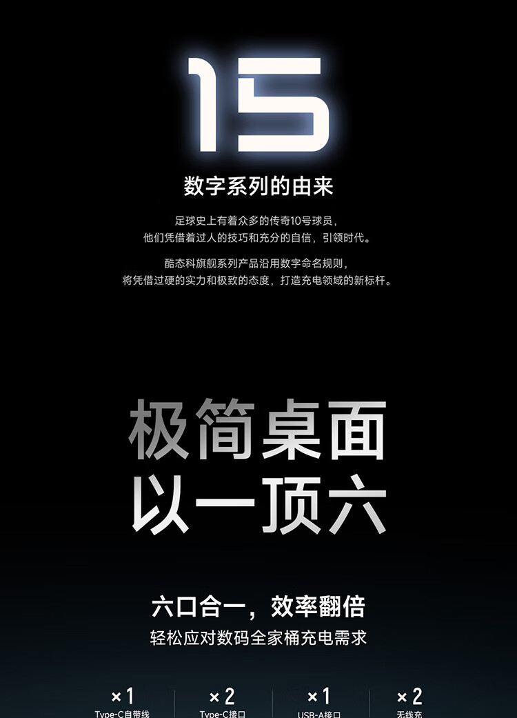 CUKTECH酷态科15号超级电能站6合1桌面充电站140W带伸缩线兼容MagSafe磁吸充电器适用苹果小米手机笔记本