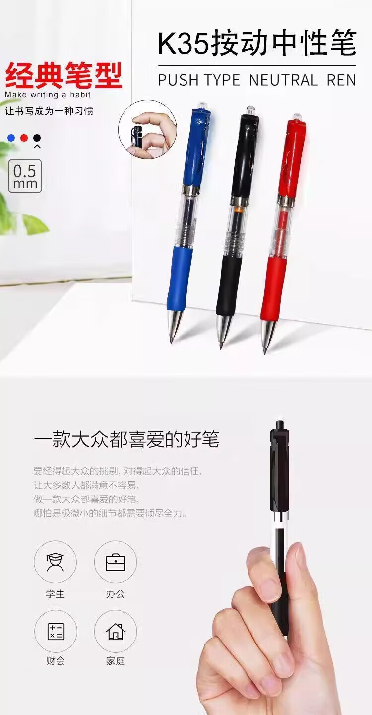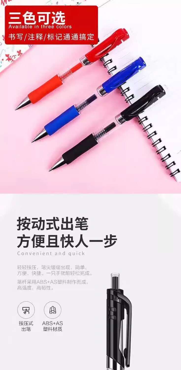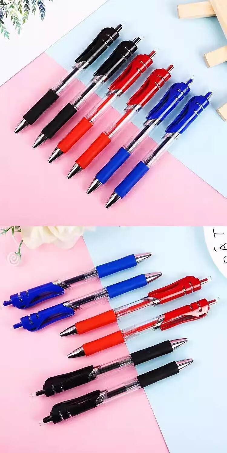 无品牌其他按动中性笔0.5mm笔芯圆珠笔签字笔中性笔黑红蓝学生学习办公用品 0.5mm 按动中性笔-红色-1支