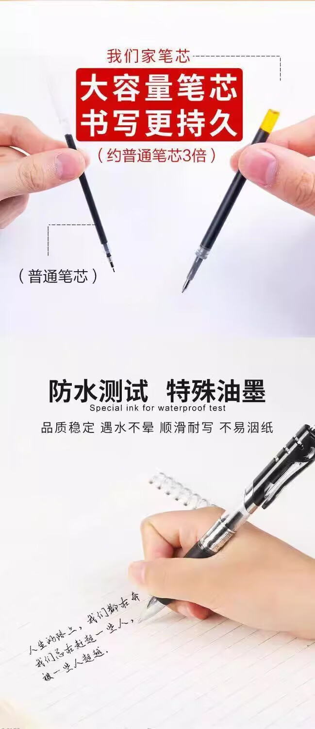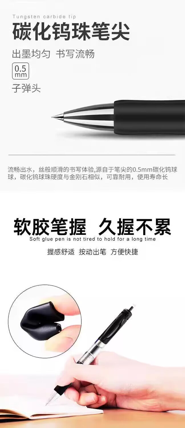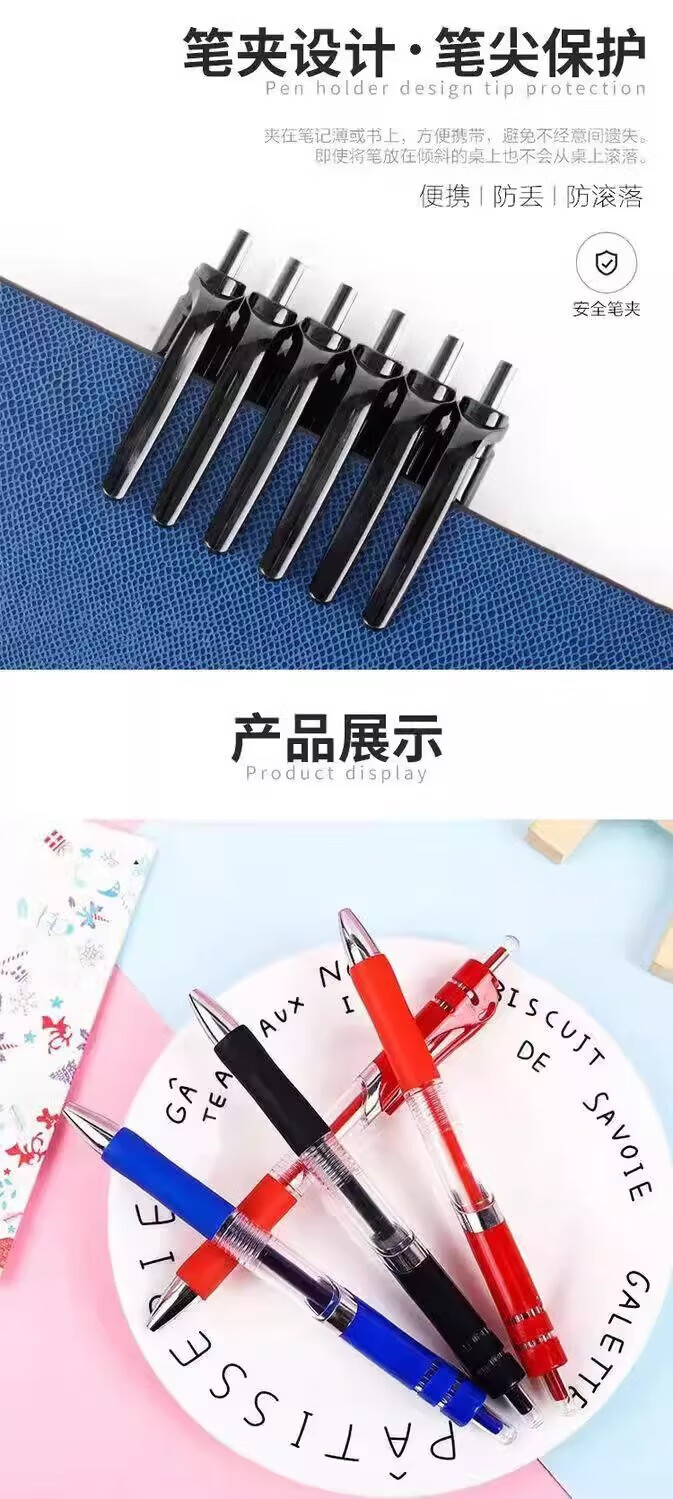无品牌其他按动中性笔0.5mm笔芯圆珠笔签字笔中性笔黑红蓝学生学习办公用品 0.5mm 按动中性笔-红色-1支
