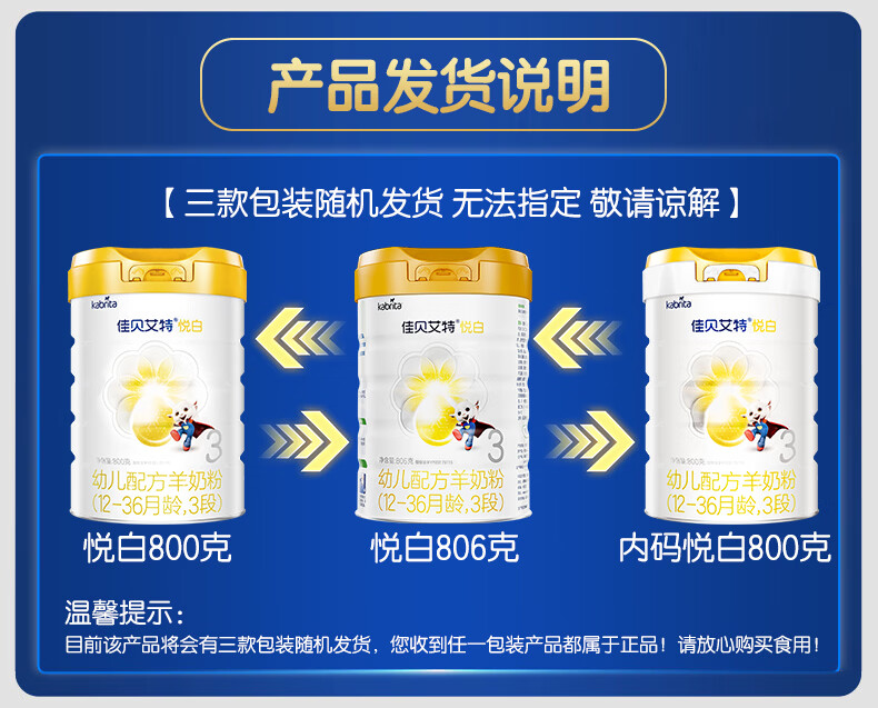 佳贝艾特(Kabrita)悦白婴幼儿配方羊奶粉 3段(1-3岁)806g 天然A2蛋白