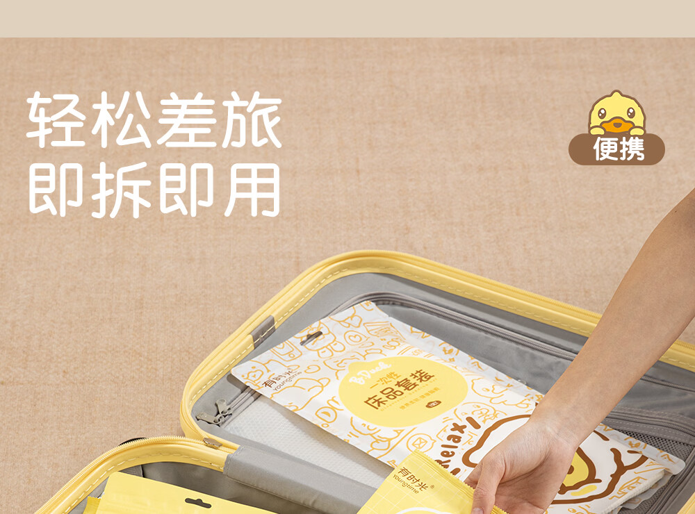 有时光一次性四件套床单被罩隔脏旅行必备一次性酒店用品双人款1套