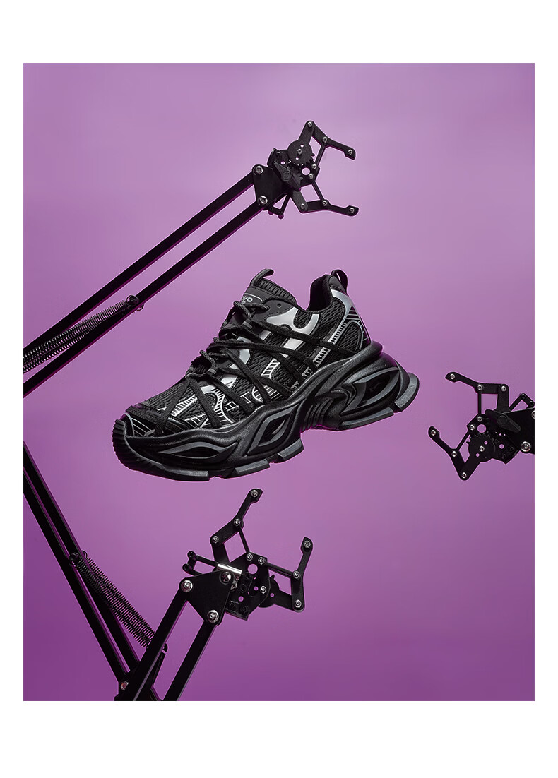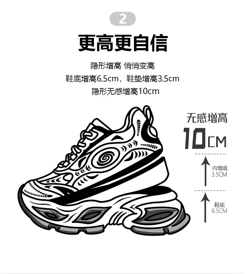 DVO10cm隐形内增高鞋子男款冬季巨好看绑带老爹鞋潮流厚底休闲鞋女 黑色 41 男码