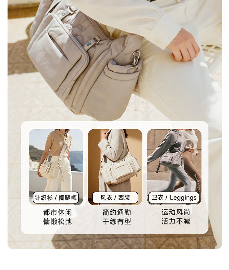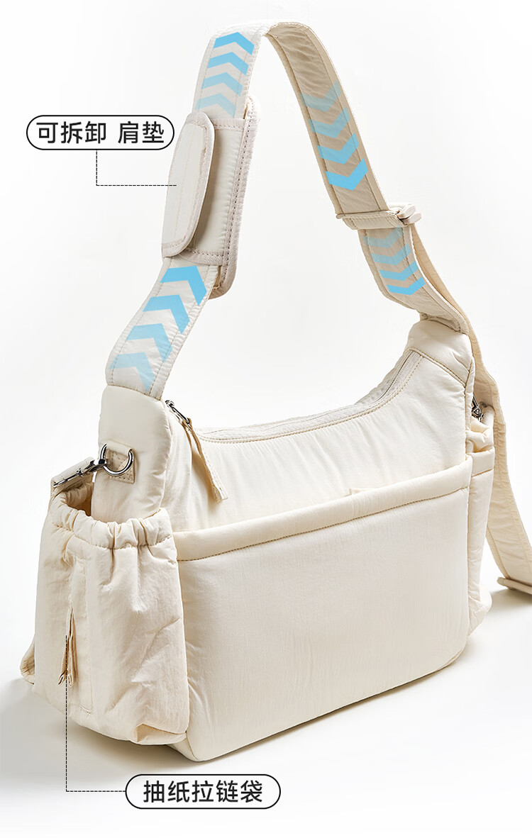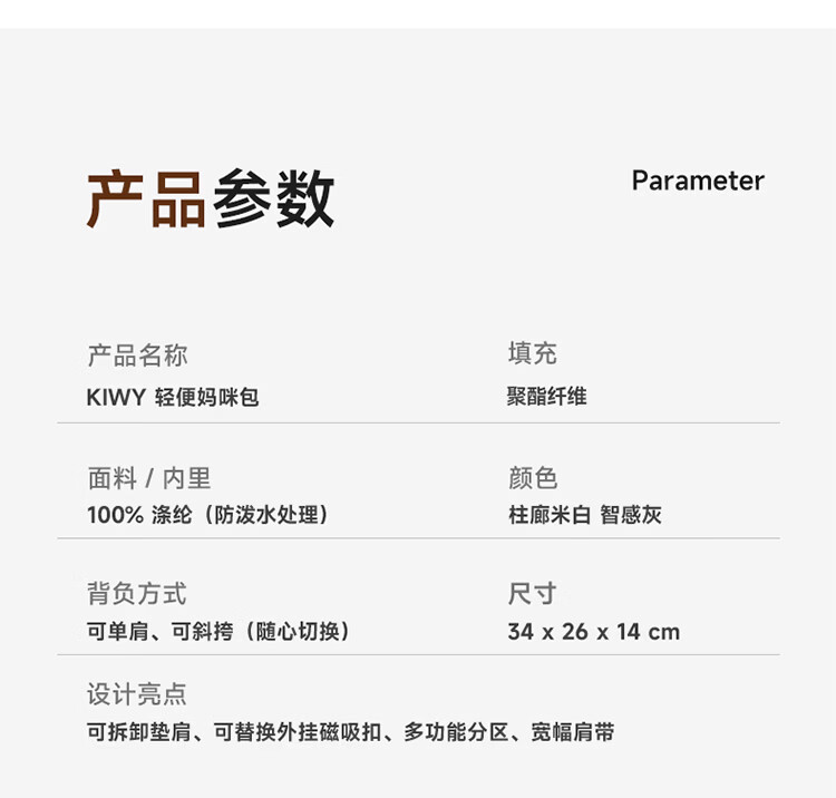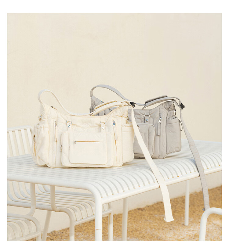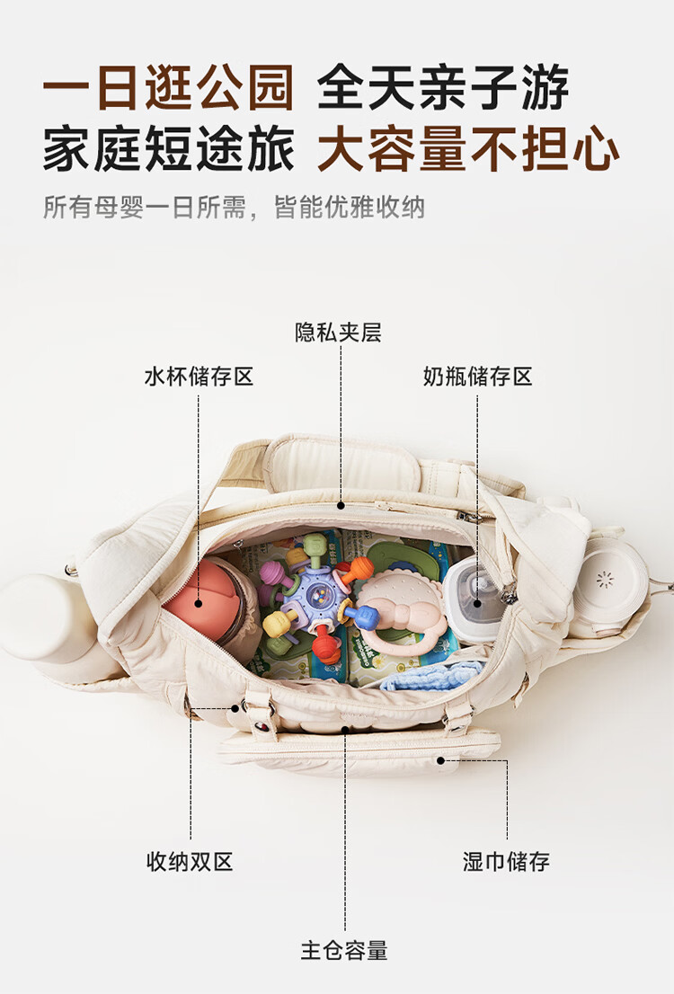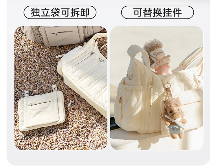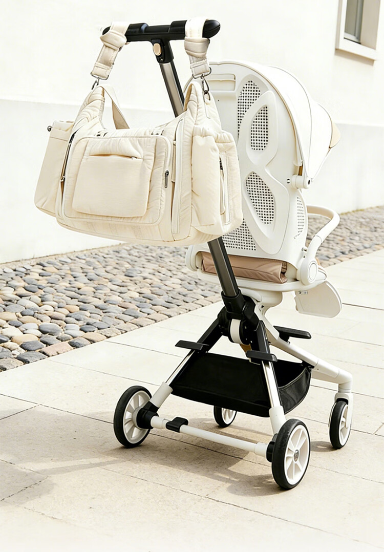kiwy妈咪包轻便多功能大容量母婴包外出旅行奶爸宝妈遛娃高颜值妈妈包 城市运动系列 防泼水面料 可拆卸婴儿车挂带 柱廊米白