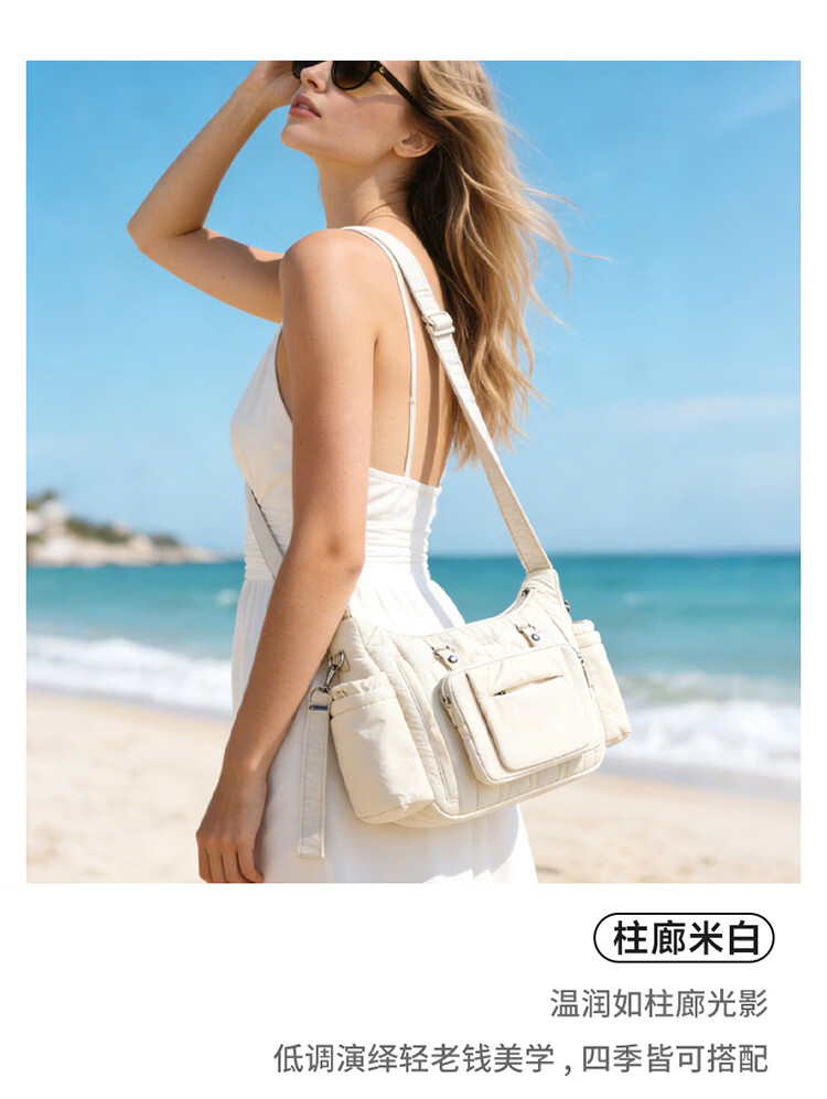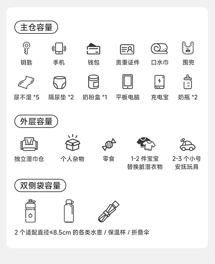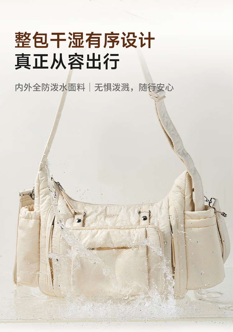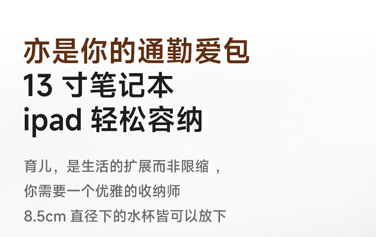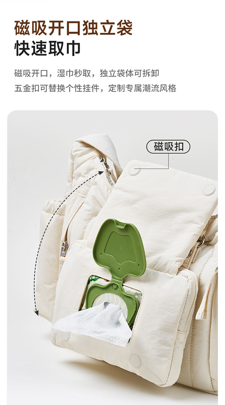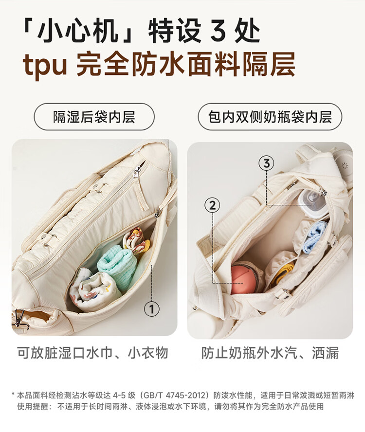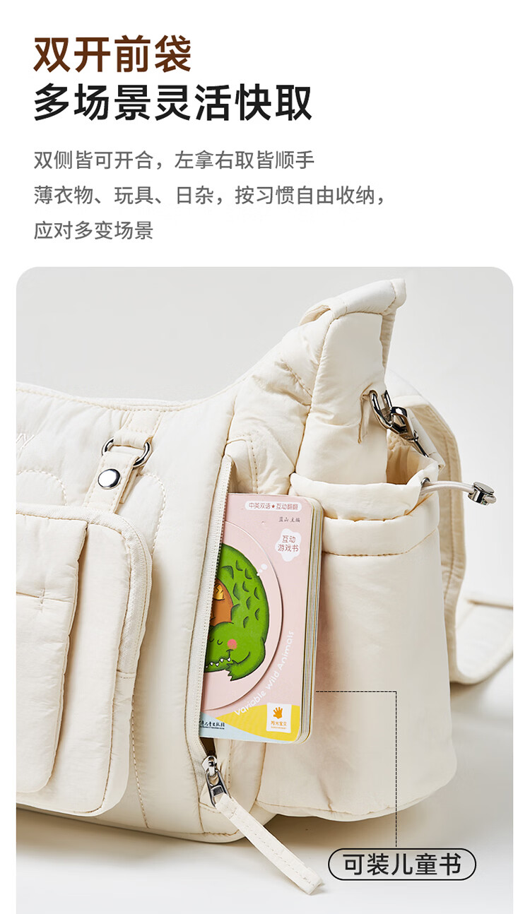kiwy妈咪包轻便多功能大容量母婴包外出旅行奶爸宝妈遛娃高颜值妈妈包 城市运动系列 防泼水面料 可拆卸婴儿车挂带 柱廊米白