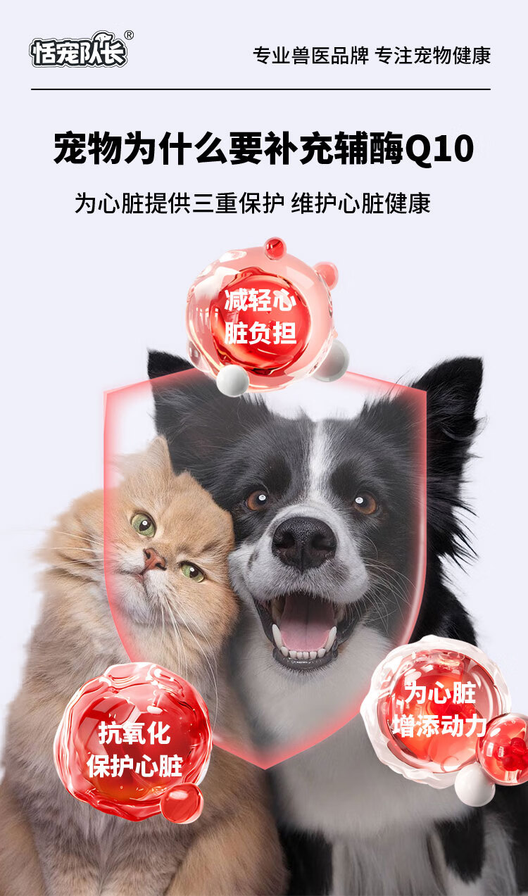 恬宠队长宠物辅酶Q10狗狗猫咪保护调理心脏老龄养护健康辅助犬猫力衰竭 护关节鲨鱼软骨素【300片】+辅酶Q10片【300片】
