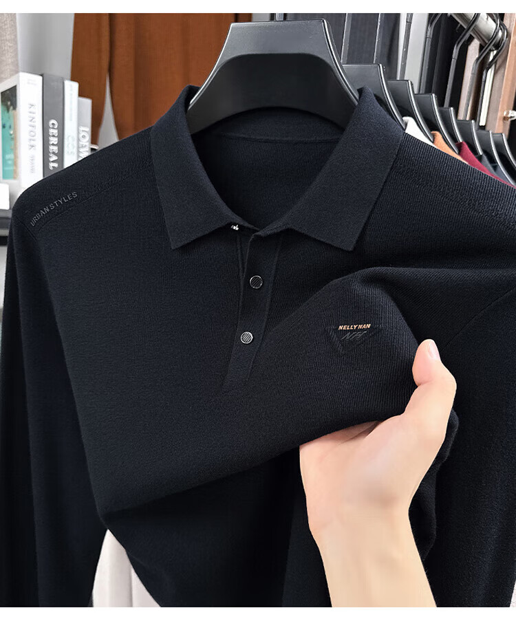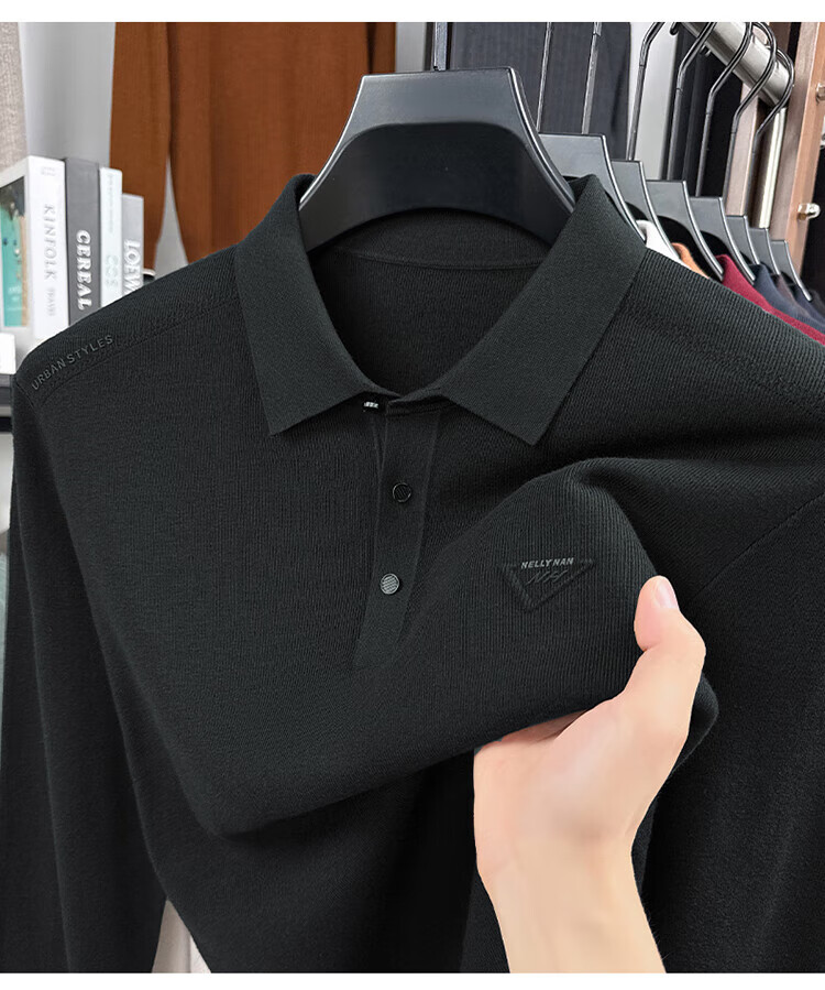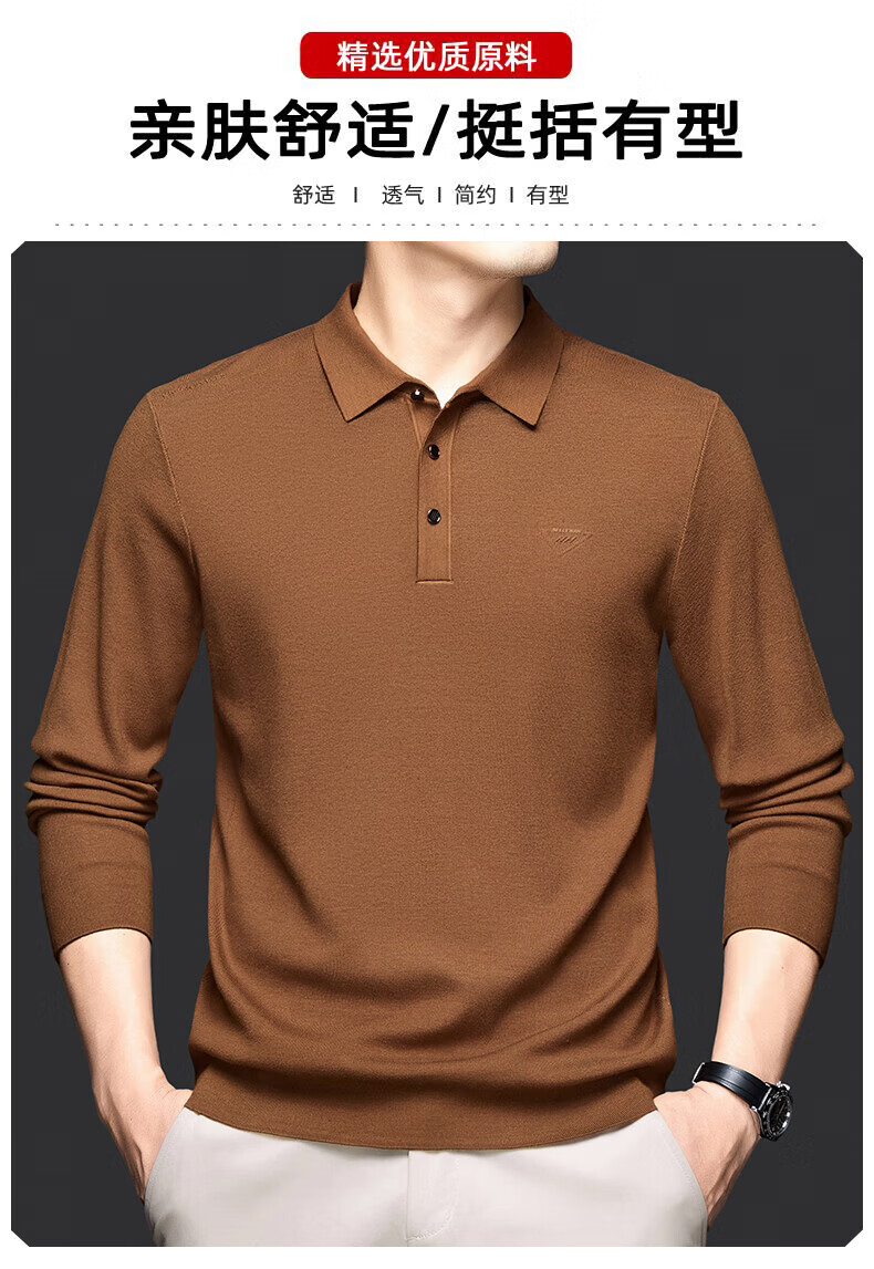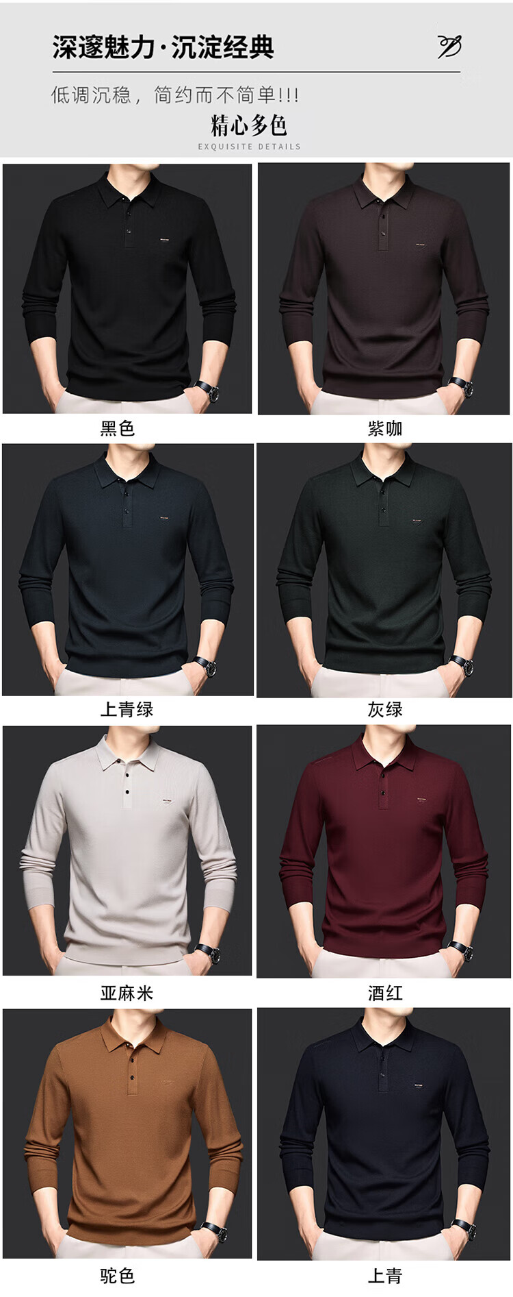 鄂尔多市斯可机洗精纺纯羊绒衫男新款翻领中年商务打底羊毛polo 上青 5XL 195