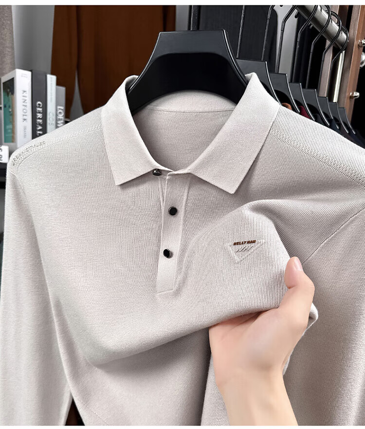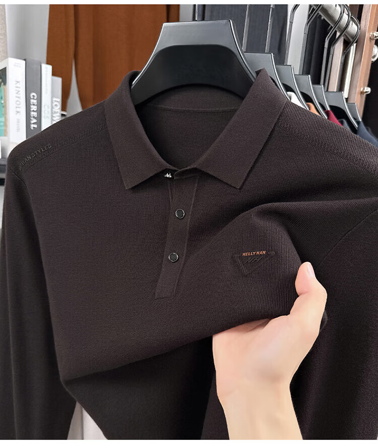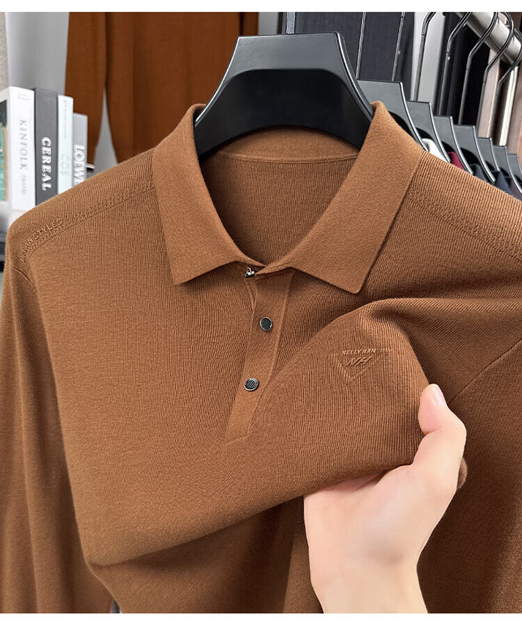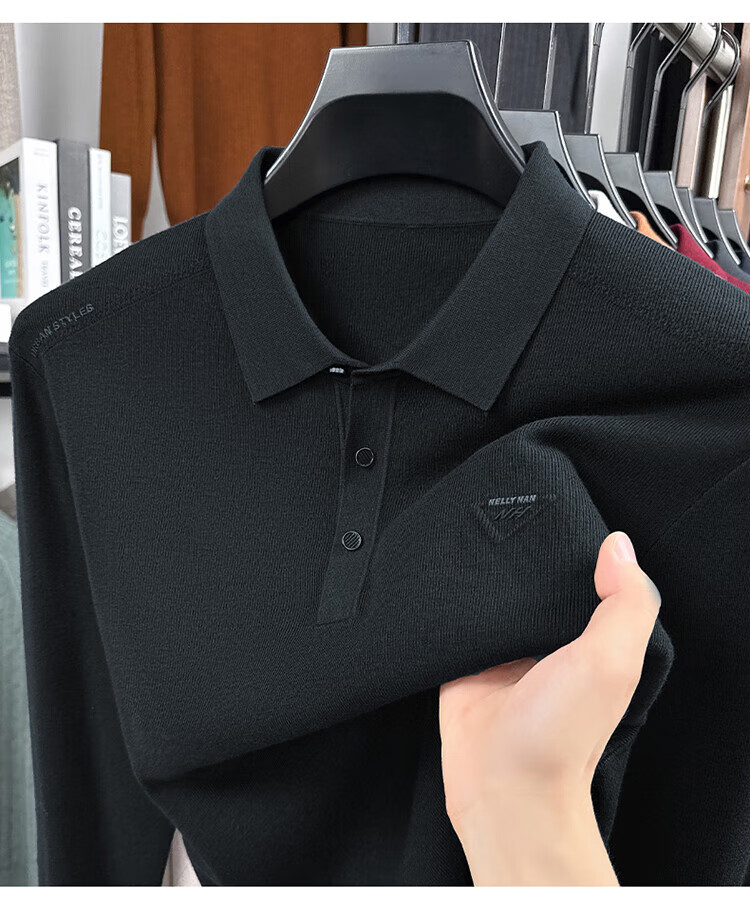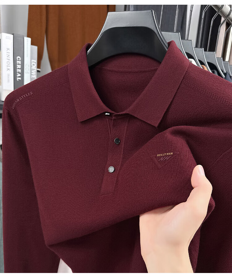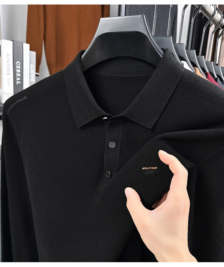 鄂尔多市斯可机洗精纺纯羊绒衫男新款翻领中年商务打底羊毛polo 上青 5XL 195