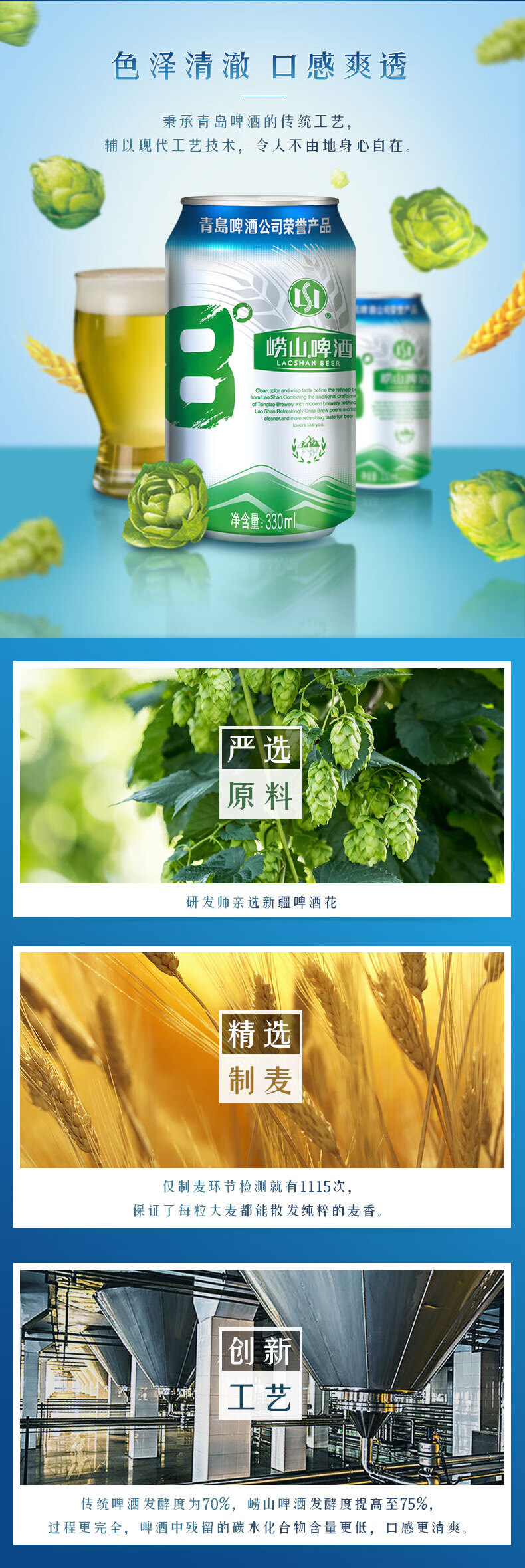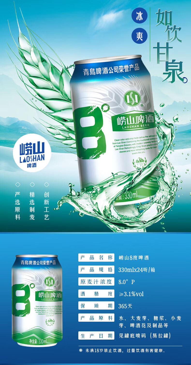 青岛啤酒崂山啤酒 330ml*24听整箱 新老包装随机发 330mL 24罐